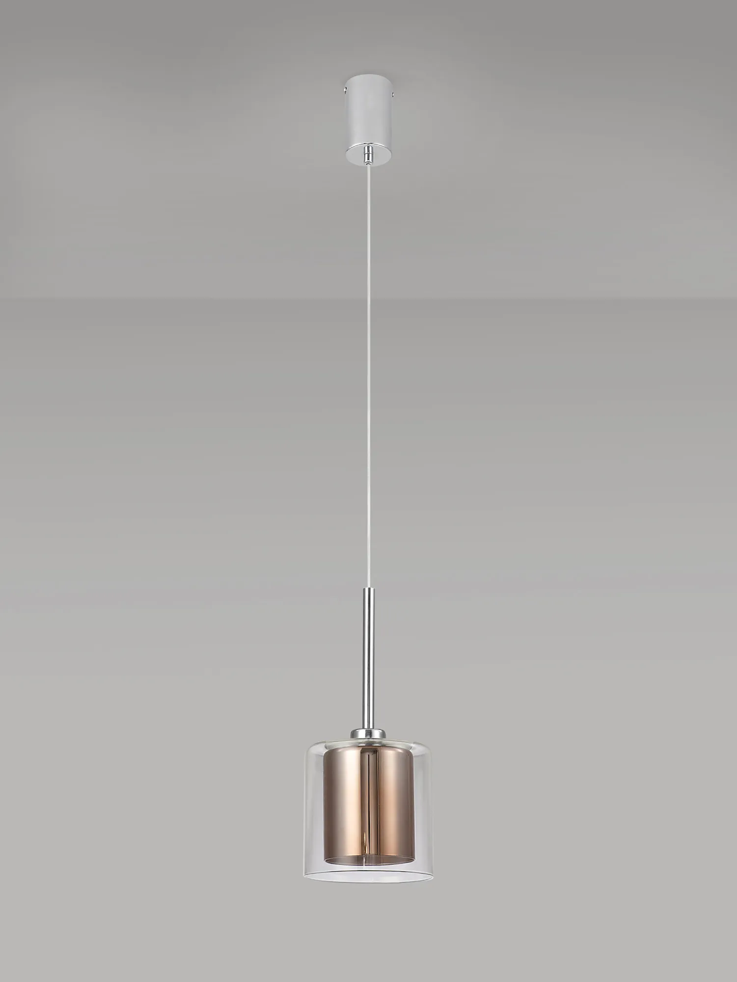 Kiwitea Single Pendant 2m, 1 x G9, Polished Chrome/Frosted/Clear Type H Shade