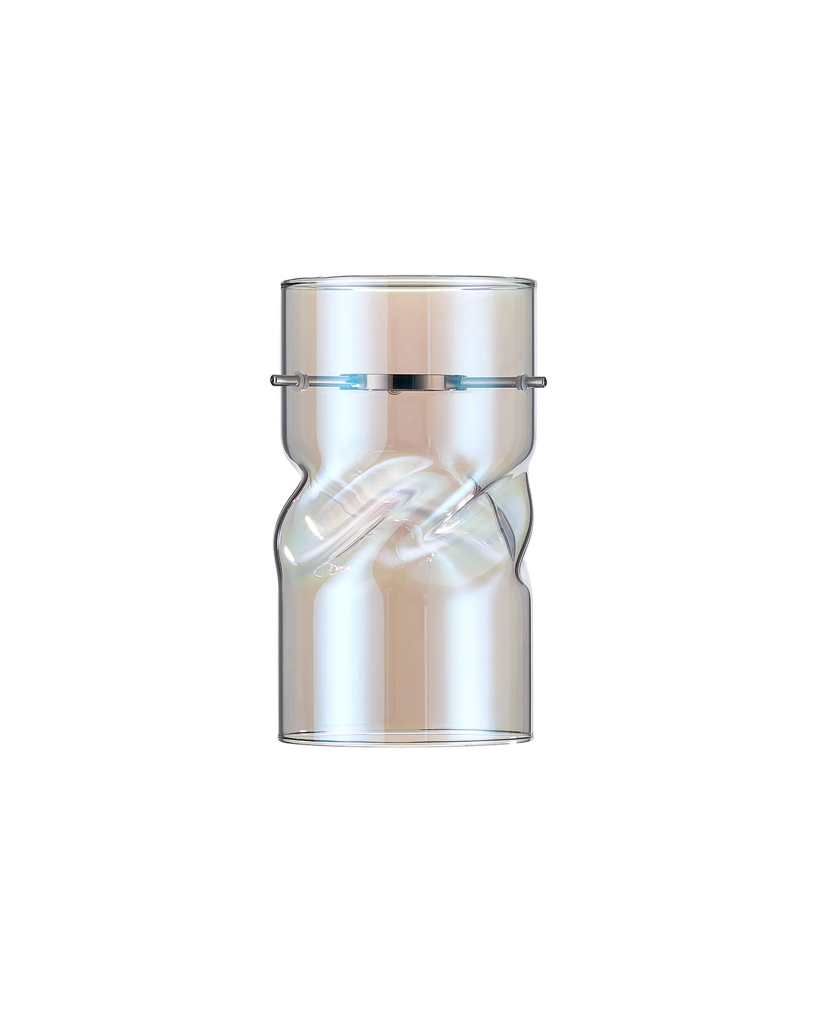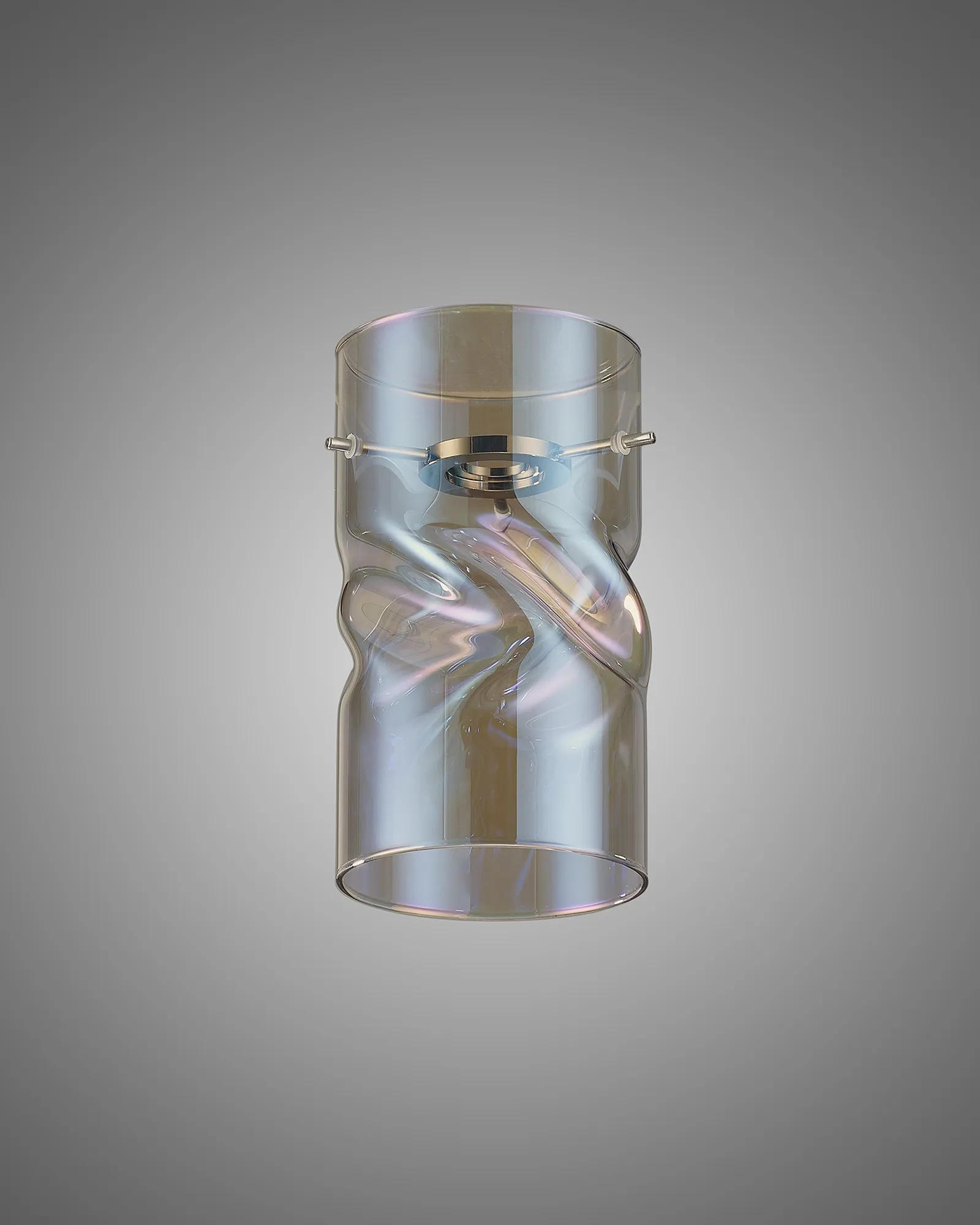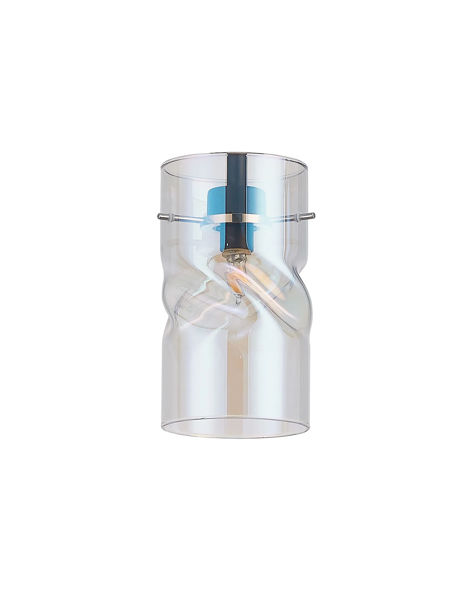 Kiwitea 12x15cm Twisted Cylinder (V) Deep Iridescent Glass Shade c/w Polished Chrome 3 Rod Suspension Plate (NOT SUITABLE FOR ALL FRAMES)