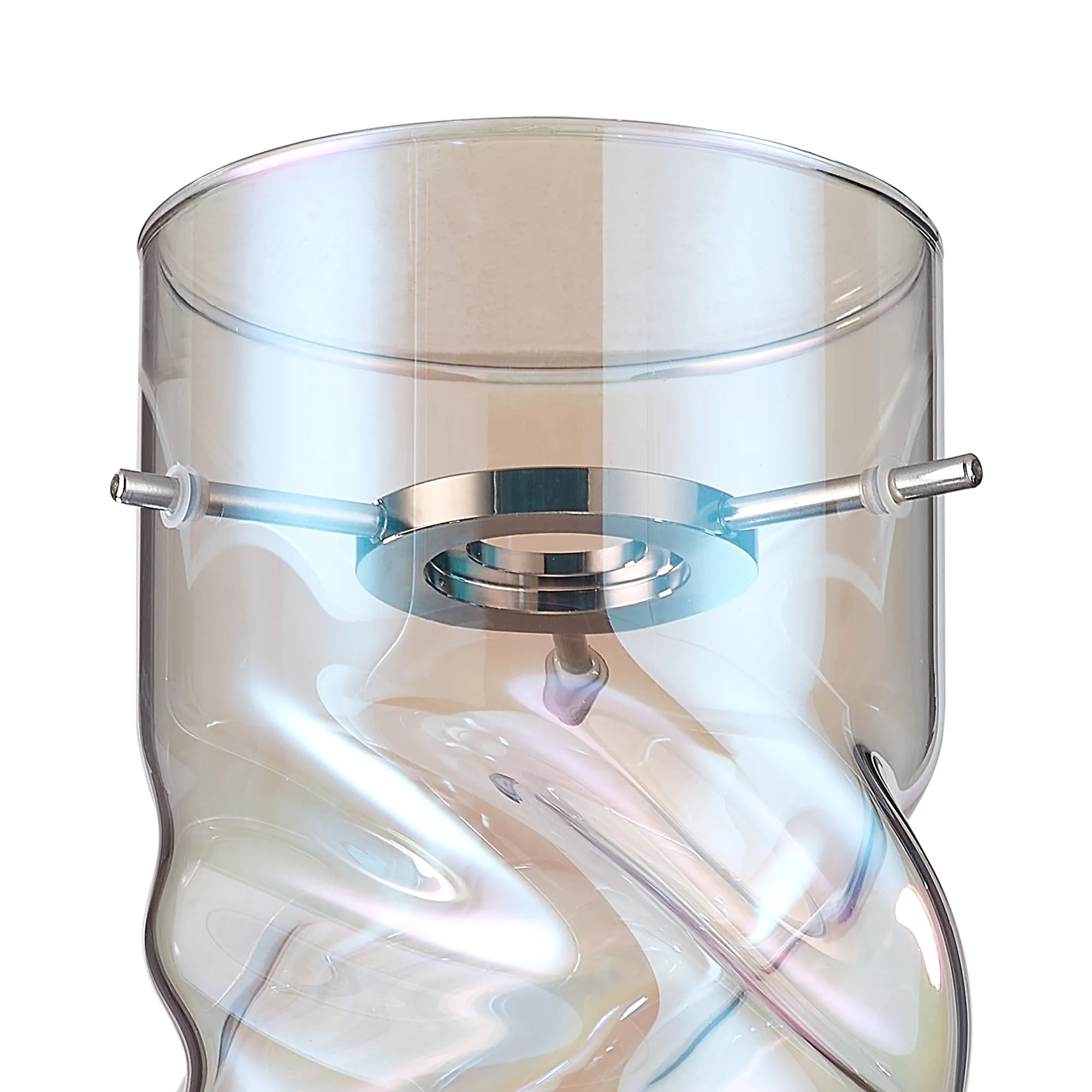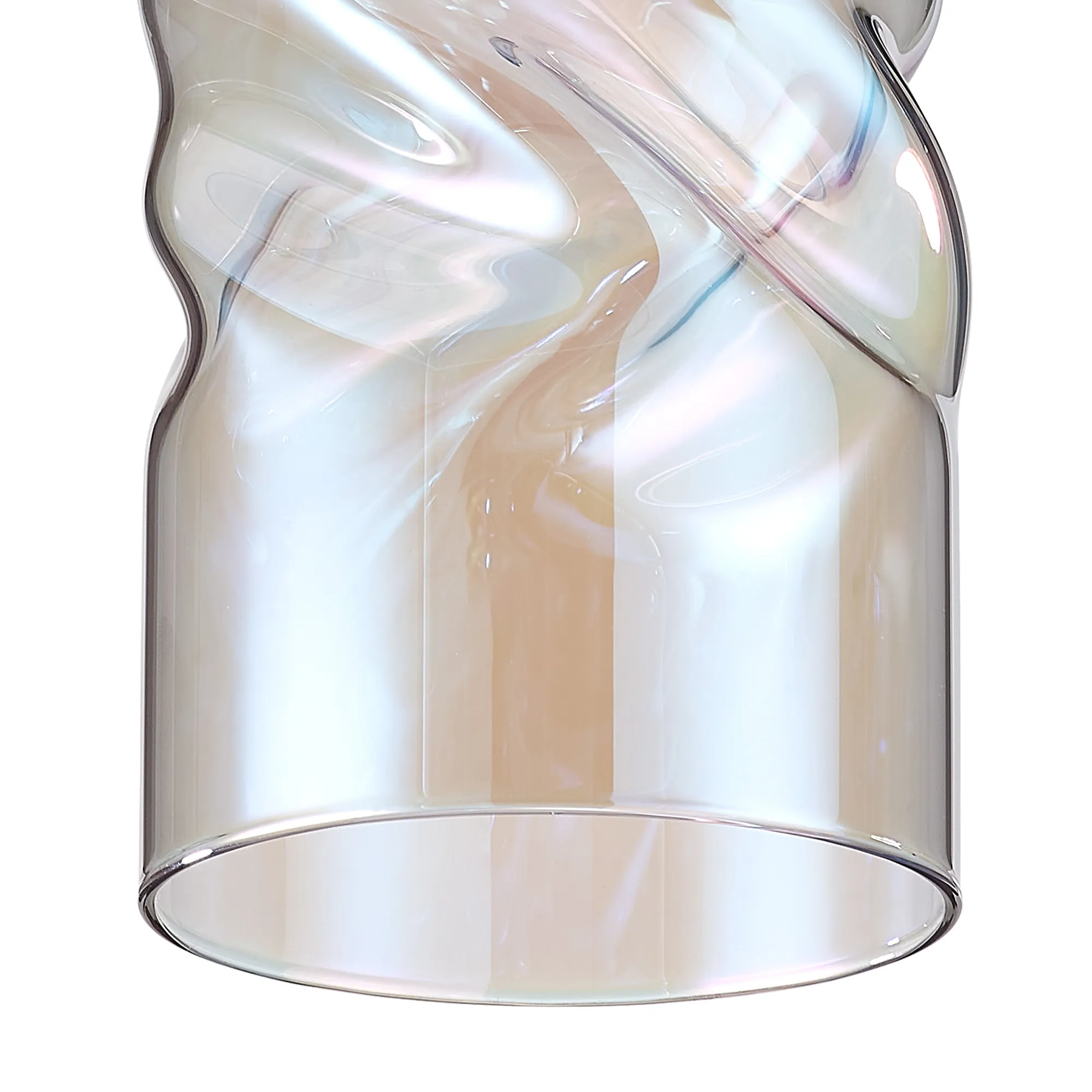 Kiwitea 12x15cm Twisted Cylinder (V) Deep Iridescent Glass Shade c/w Polished Chrome 3 Rod Suspension Plate