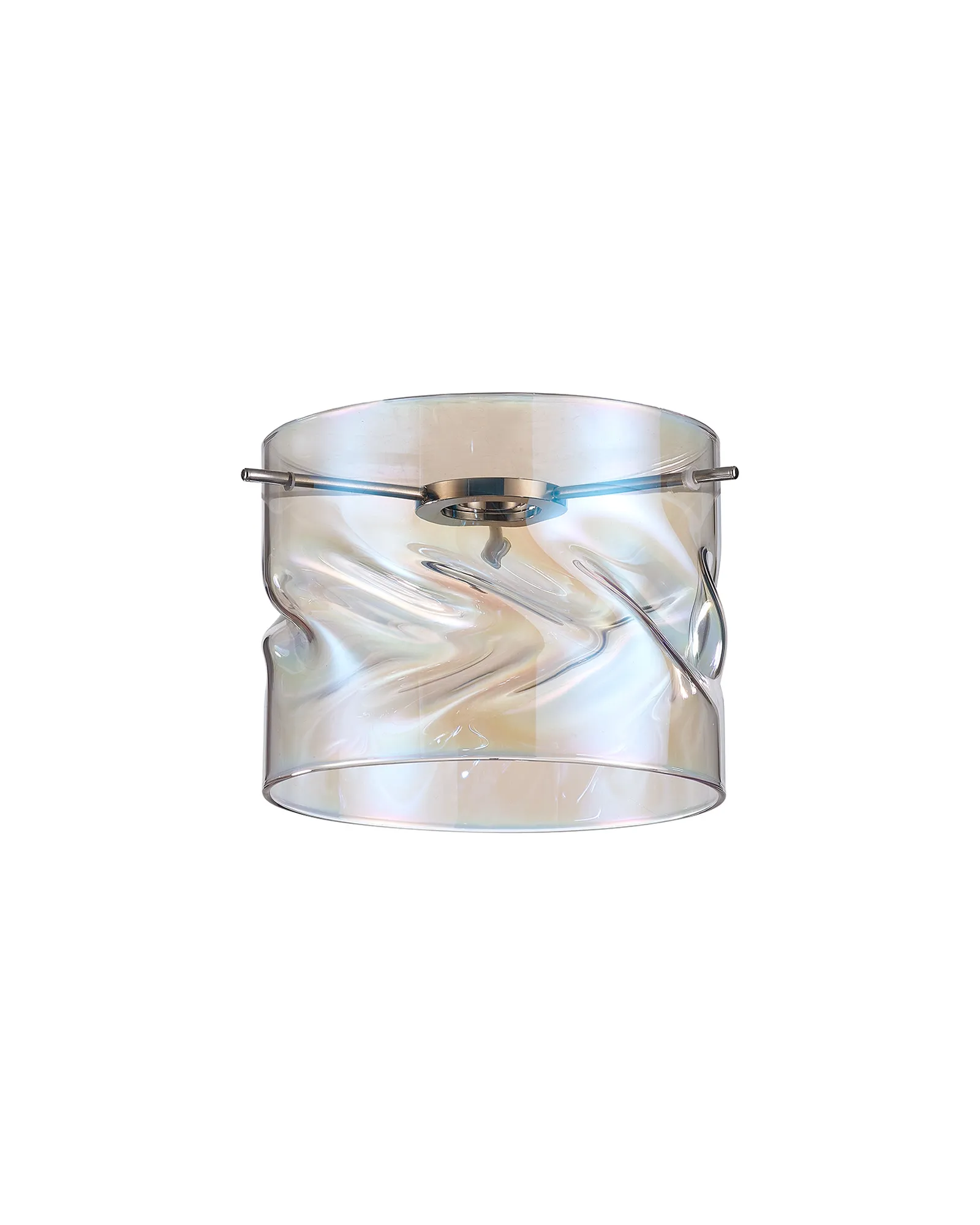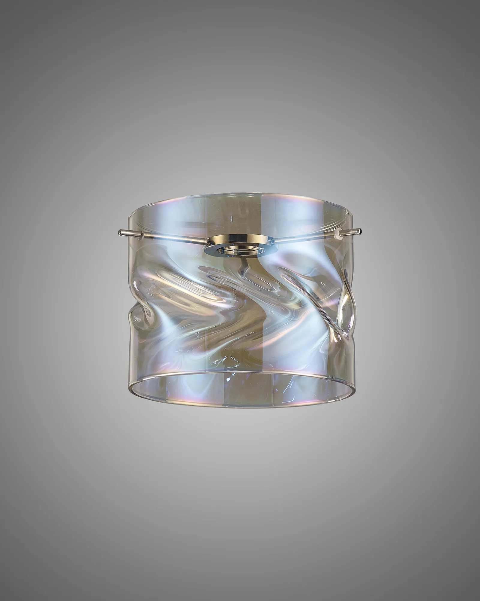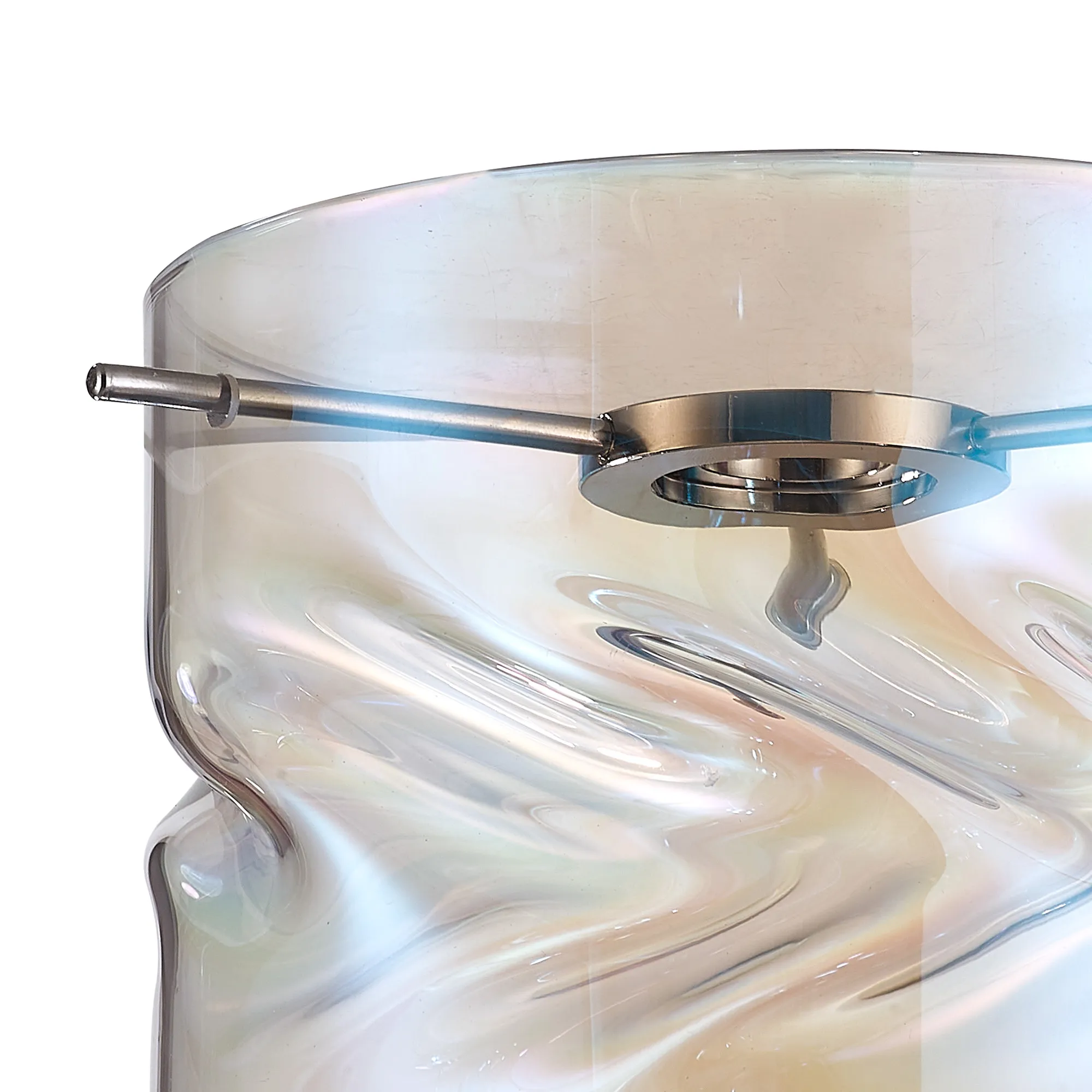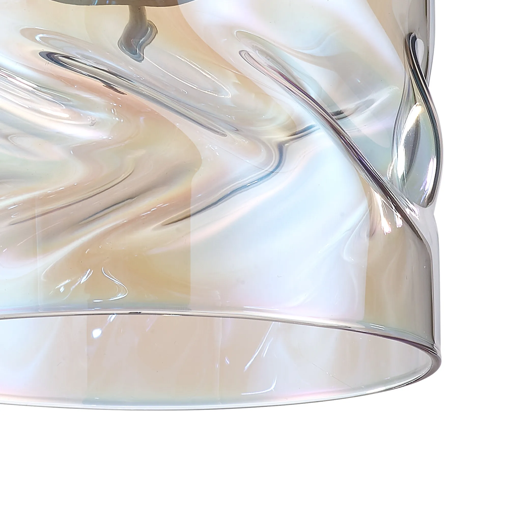 Kiwitea 10x18cm Twisted Cylinder (V) Deep Iridescent Glass Shade c/w Polished Chrome 3 Rod Suspension Plate