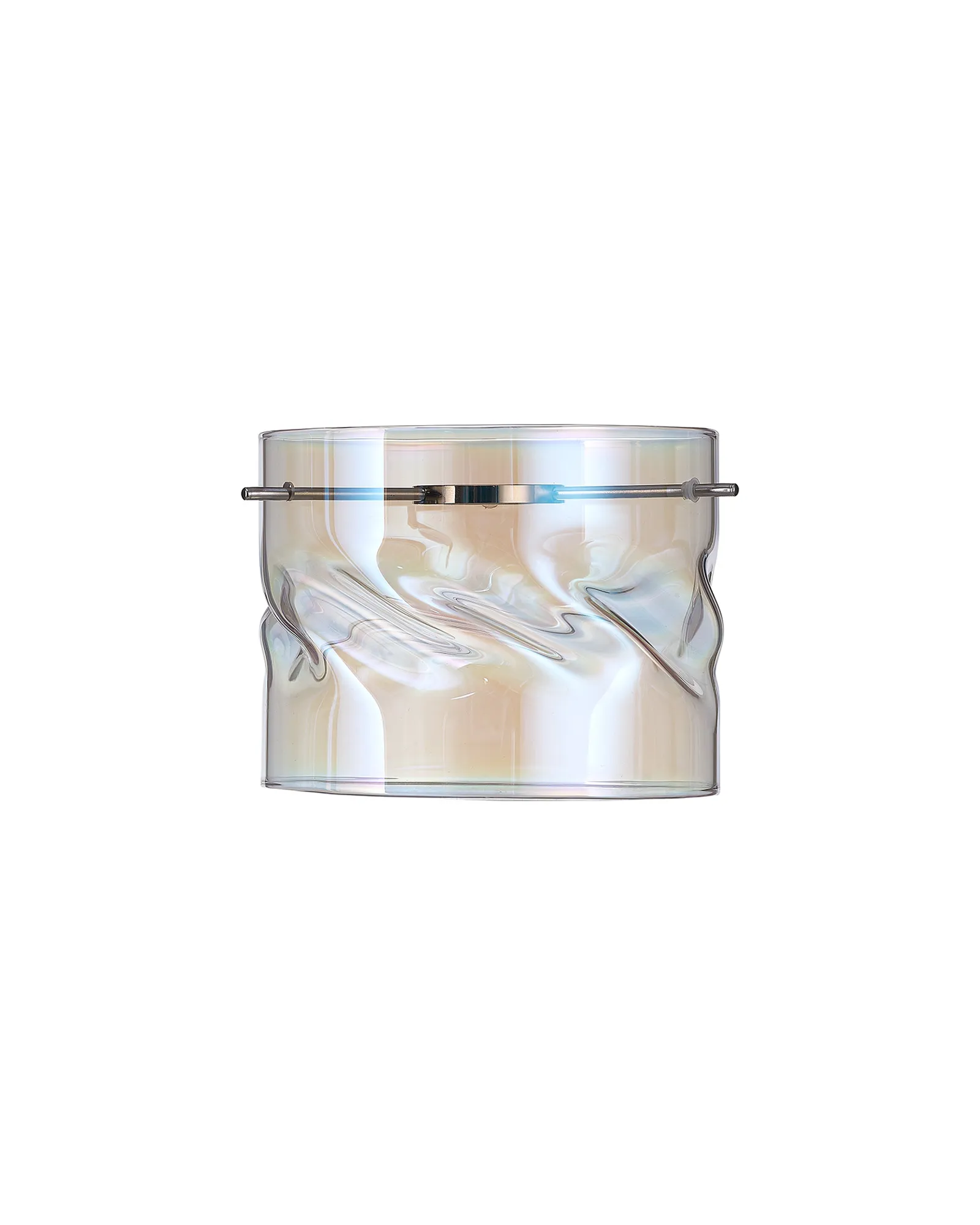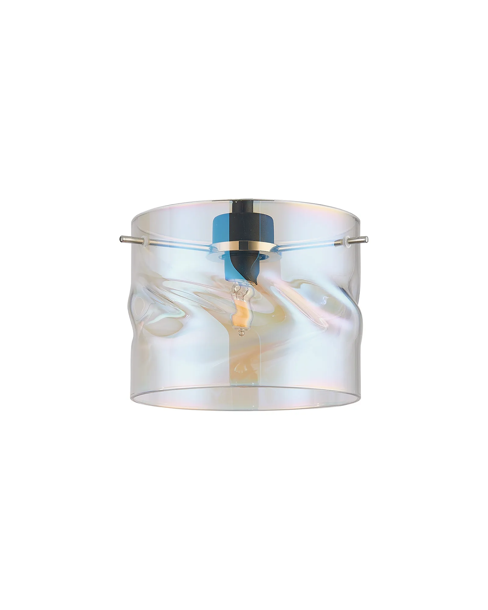 Kiwitea 10x18cm Twisted Cylinder (V) Deep Iridescent Glass Shade c/w Polished Chrome 3 Rod Suspension Plate (NOT SUITABLE FOR ALL FRAMES)