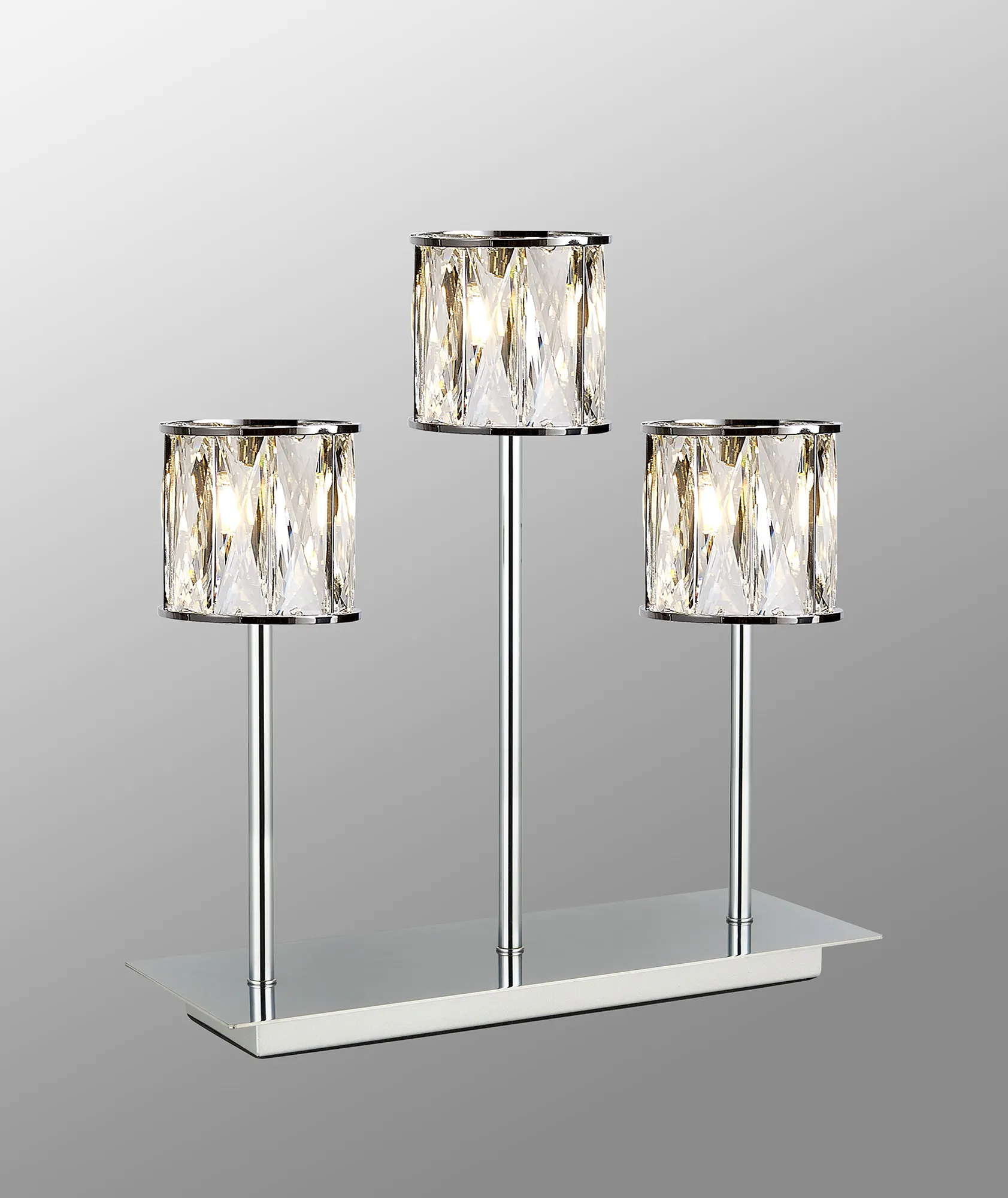 Kiwitea Polished Chrome 3 Light G9 Rectangular Touch Switch Table Lamp Without Shade, For A Vast Range Of Glass Shades