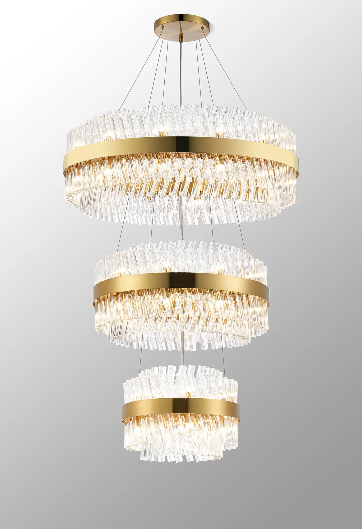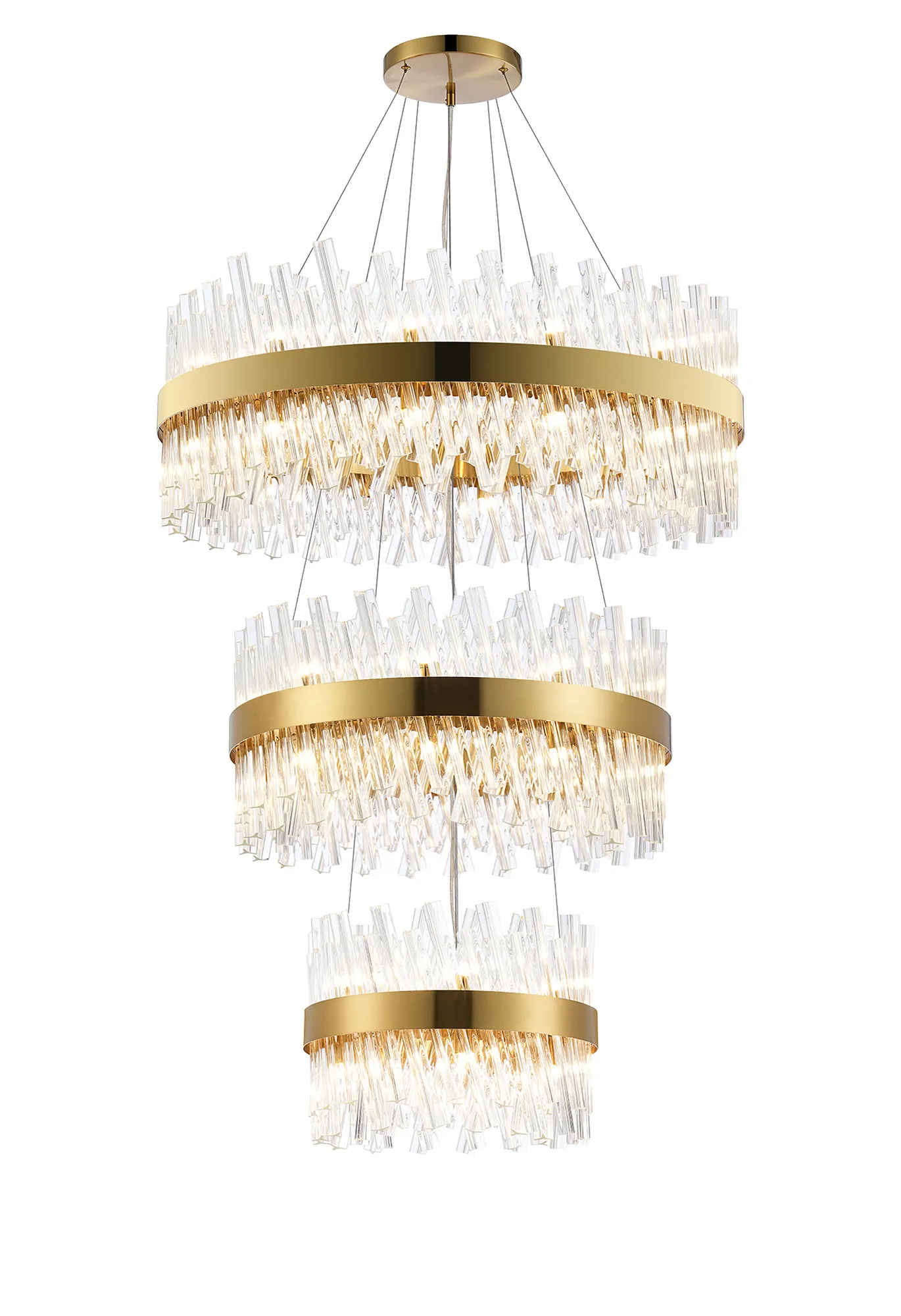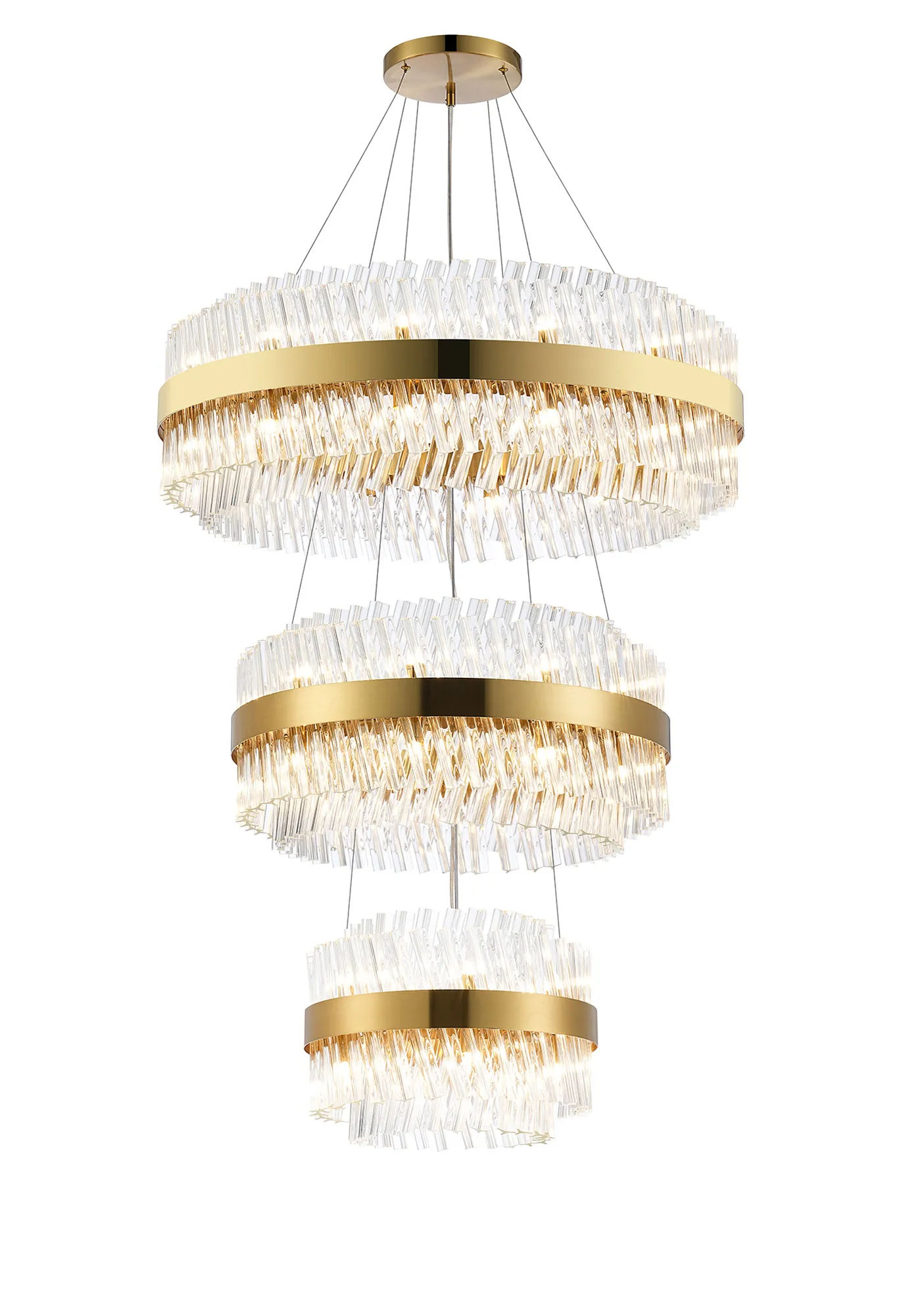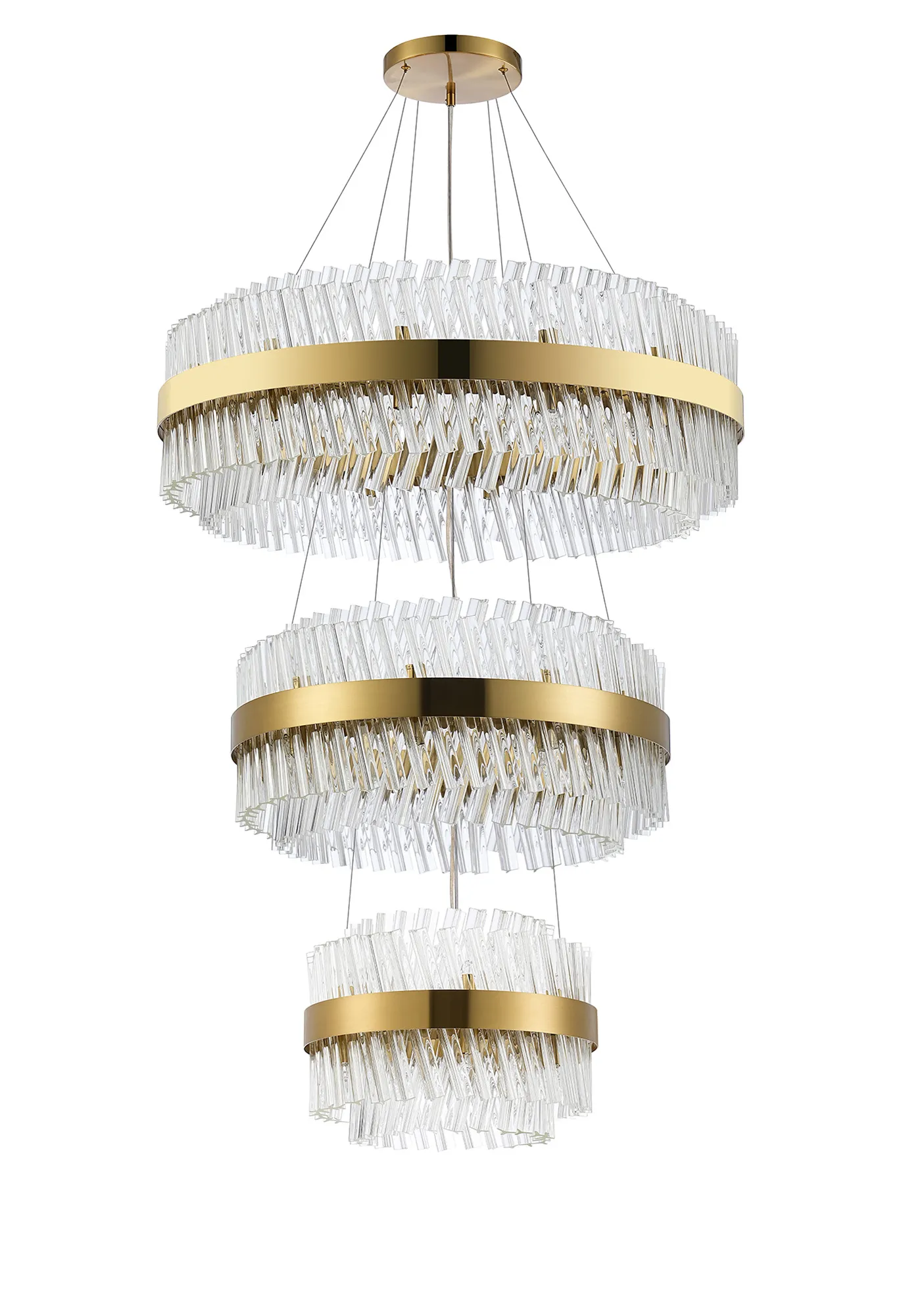 Brant 5 Tier 25cm + 40cm + 60cm + 80cm + 1m Pendant, 6 + 10 + 18 + 24 + 32 Light G9, Brass/Clear, Item Weight: 86kg