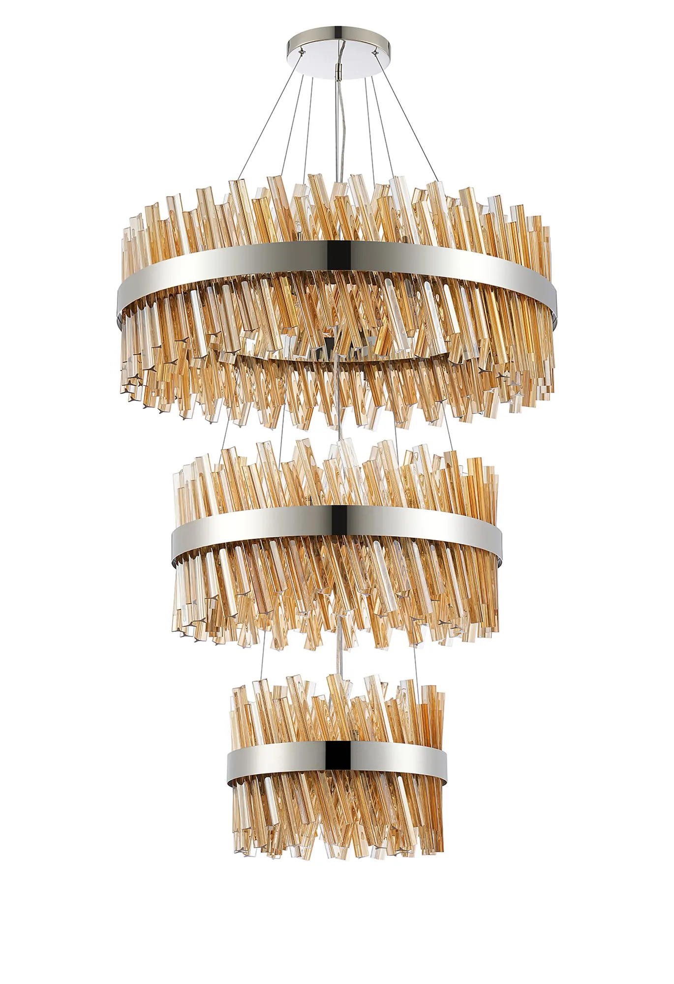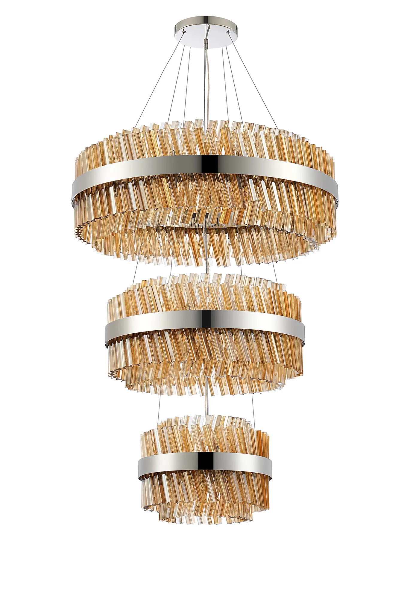 OTHER Brant 3 Tier 40cm + 60cm + 80cm Pendant, 10 + 18 + 24 Light G9, Polished Nickel/Amber