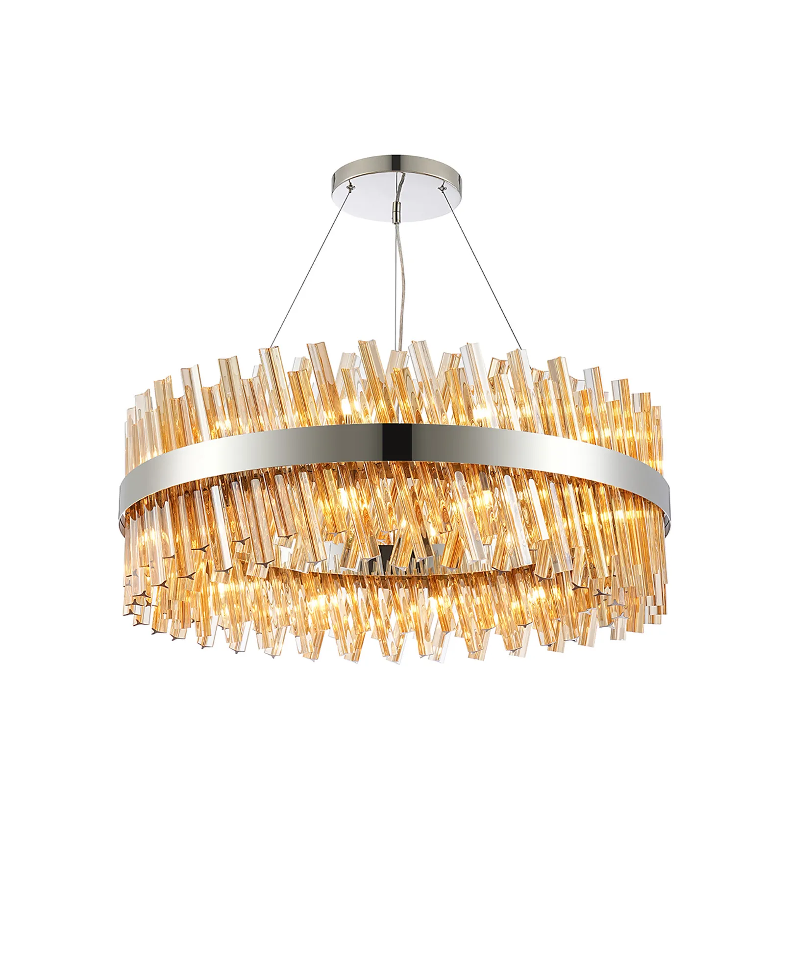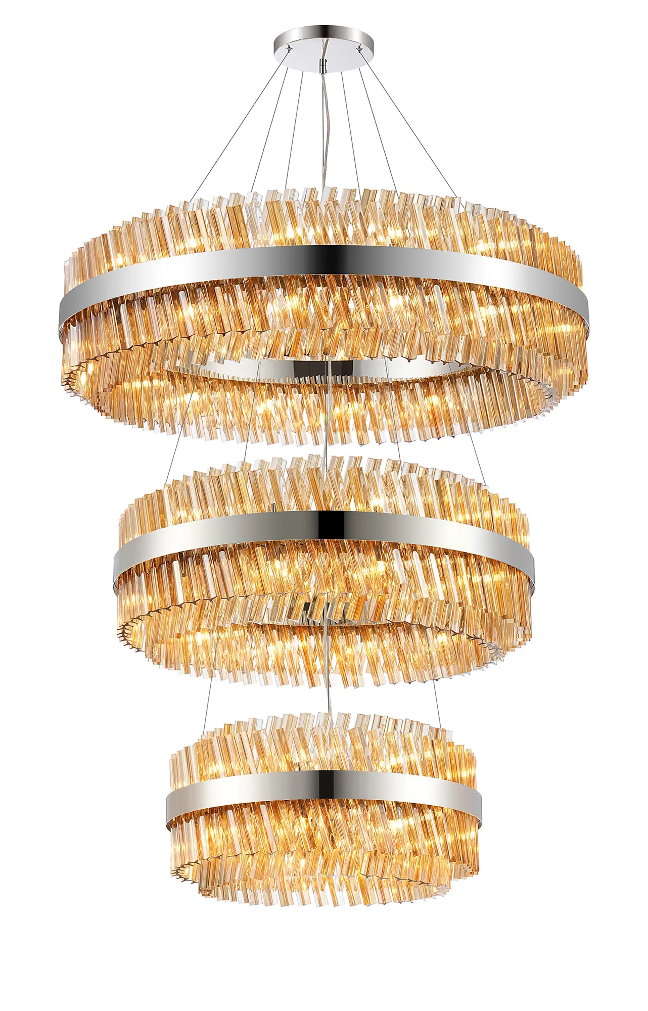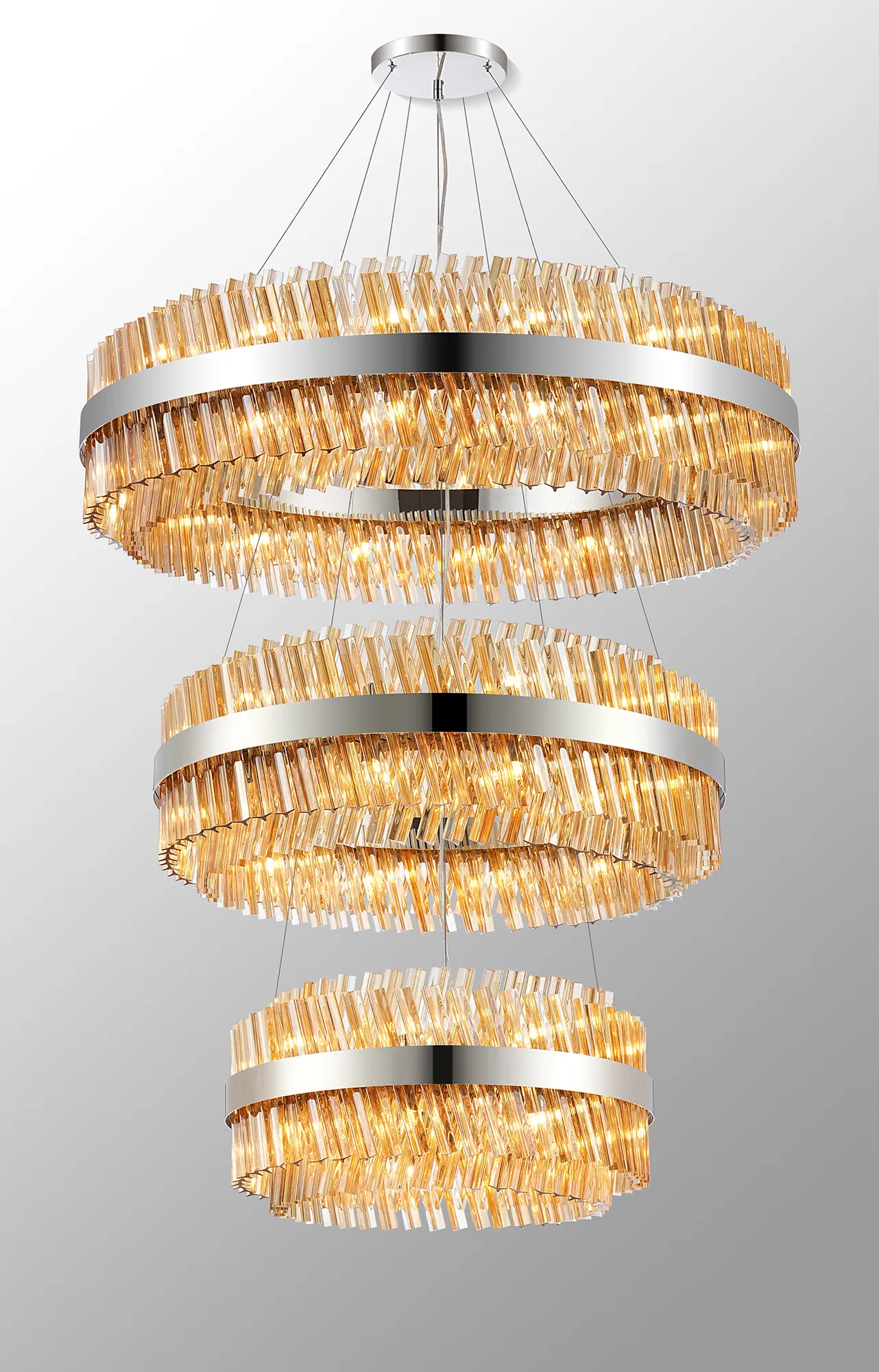 OTHER Brant 3 Tier 60cm + 80cm + 1m Pendant, 18 + 24 + 32 Light G9, Polished Nickel/Amber