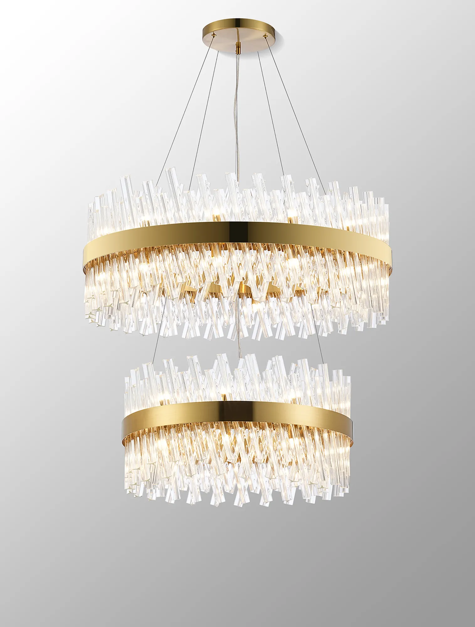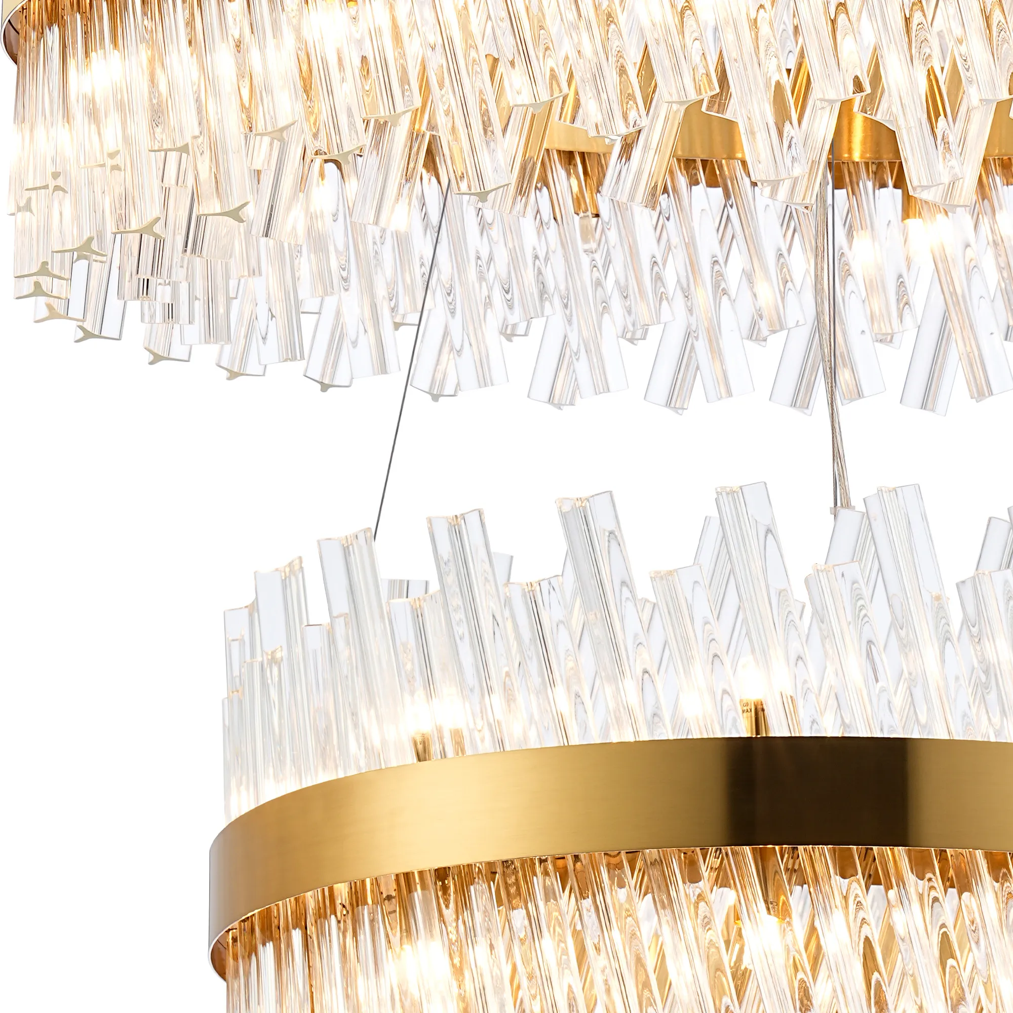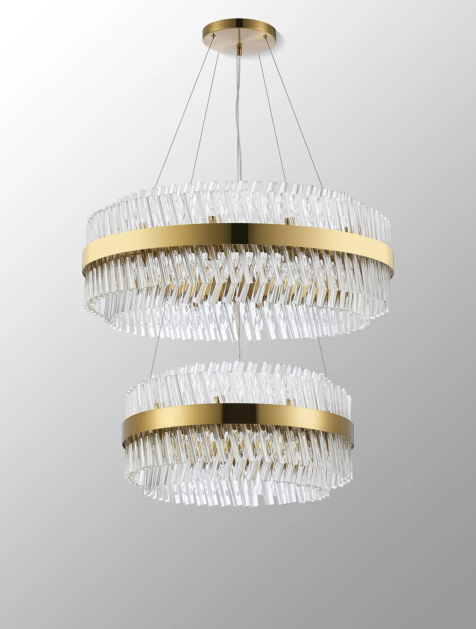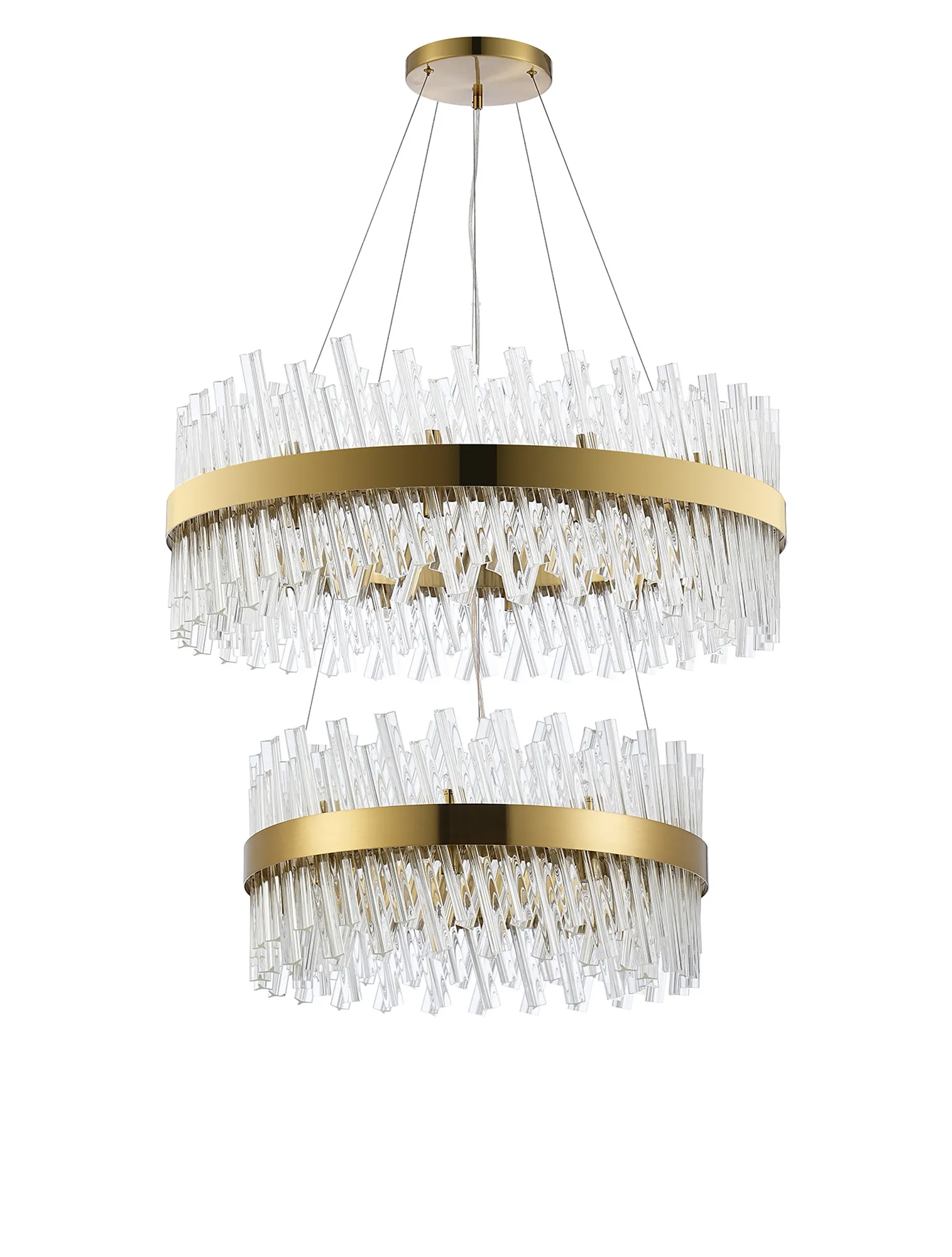 Brant 5 Tier 25cm + 40cm + 60cm + 80cm + 1m Pendant, 6 + 10 + 18 + 24 + 32 Light G9, Brass/Clear, Item Weight: 86kg