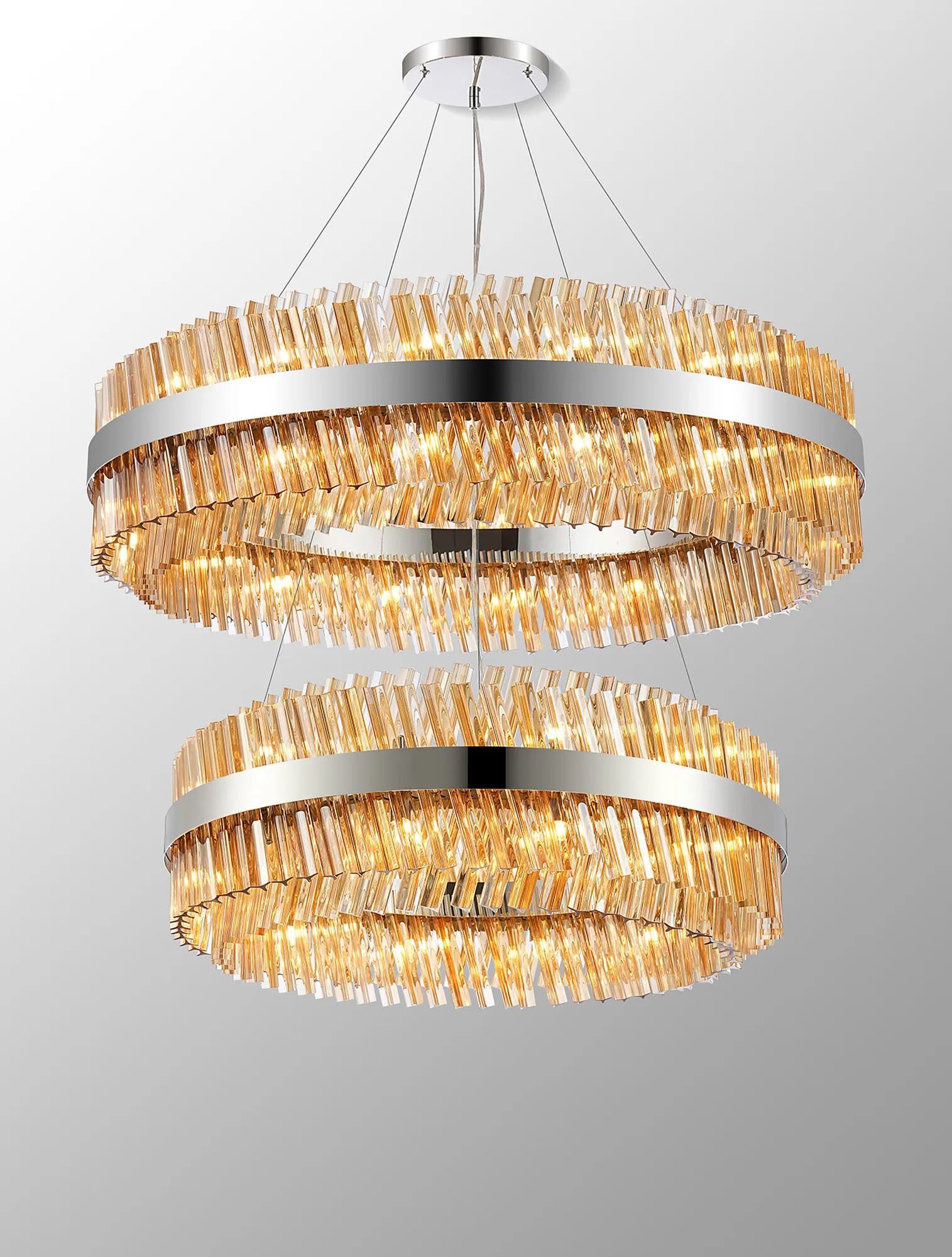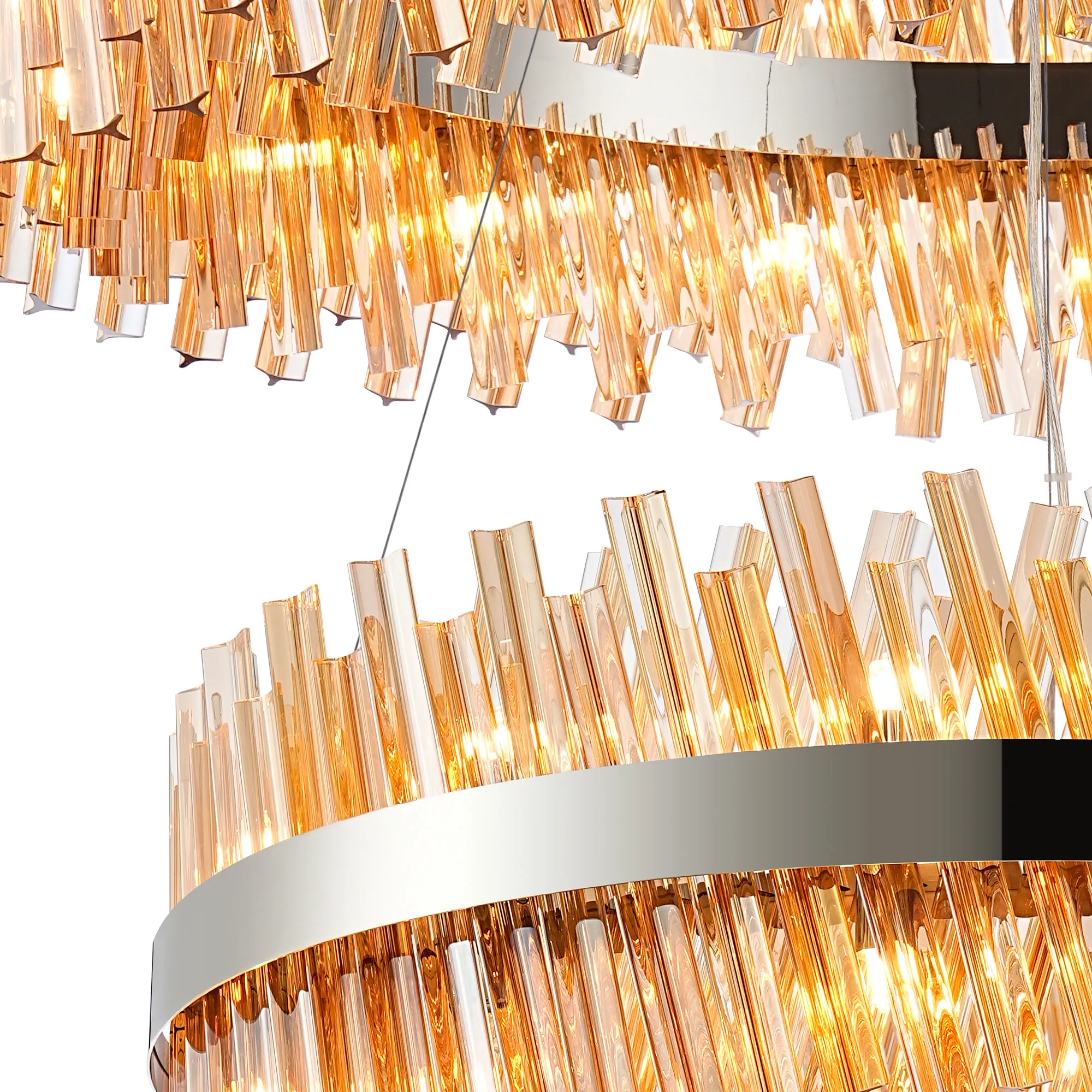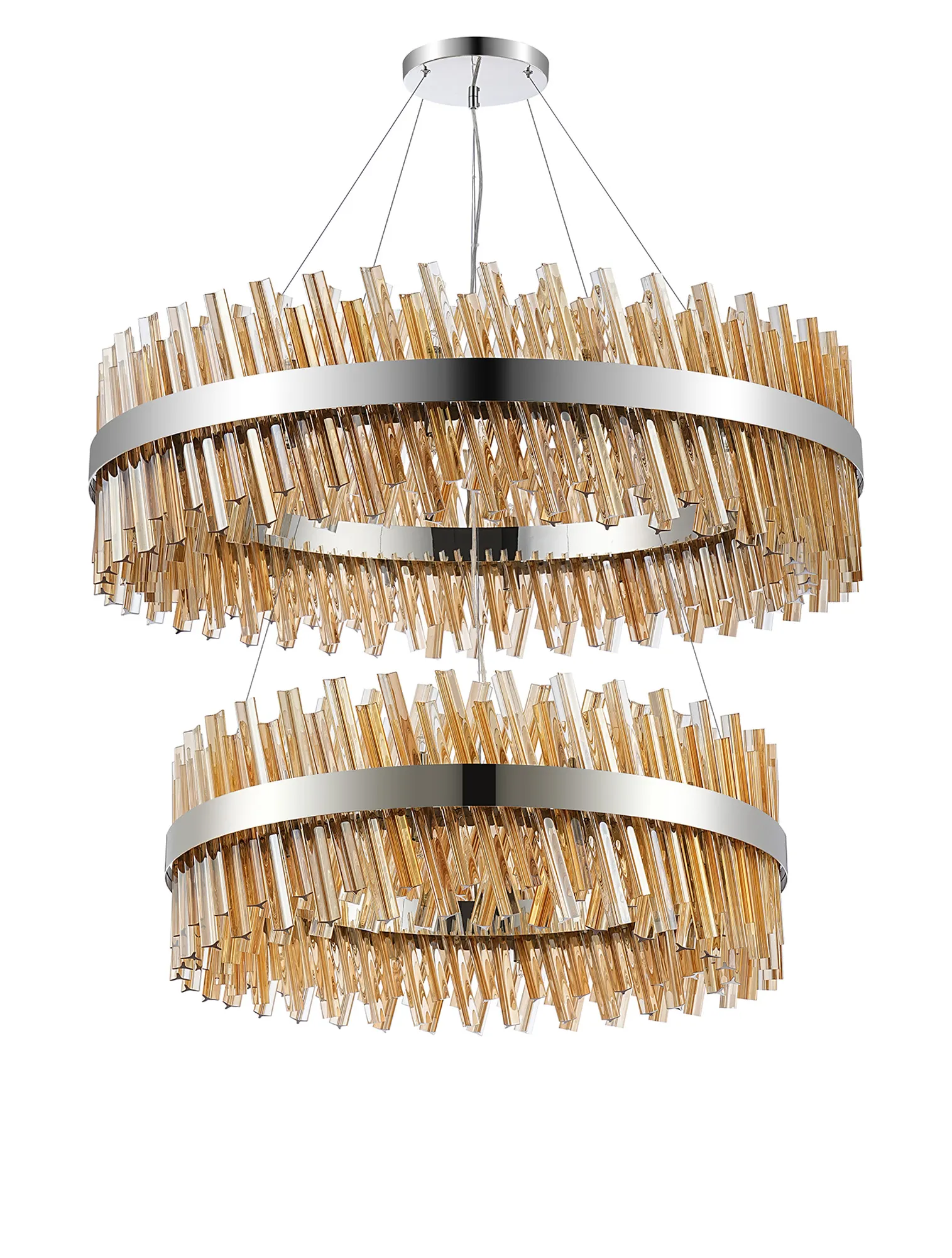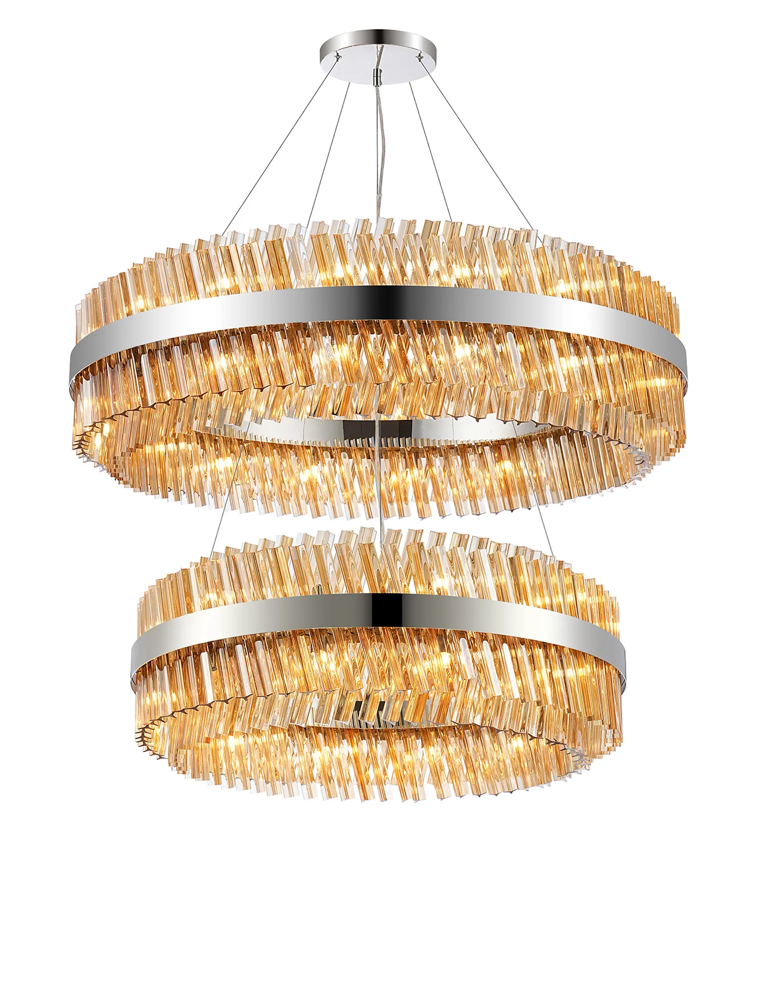 OTHER Brant 2 Tier 80cm + 1m Pendant, 24 + 32 Light G9, Polished Nickel/Amber