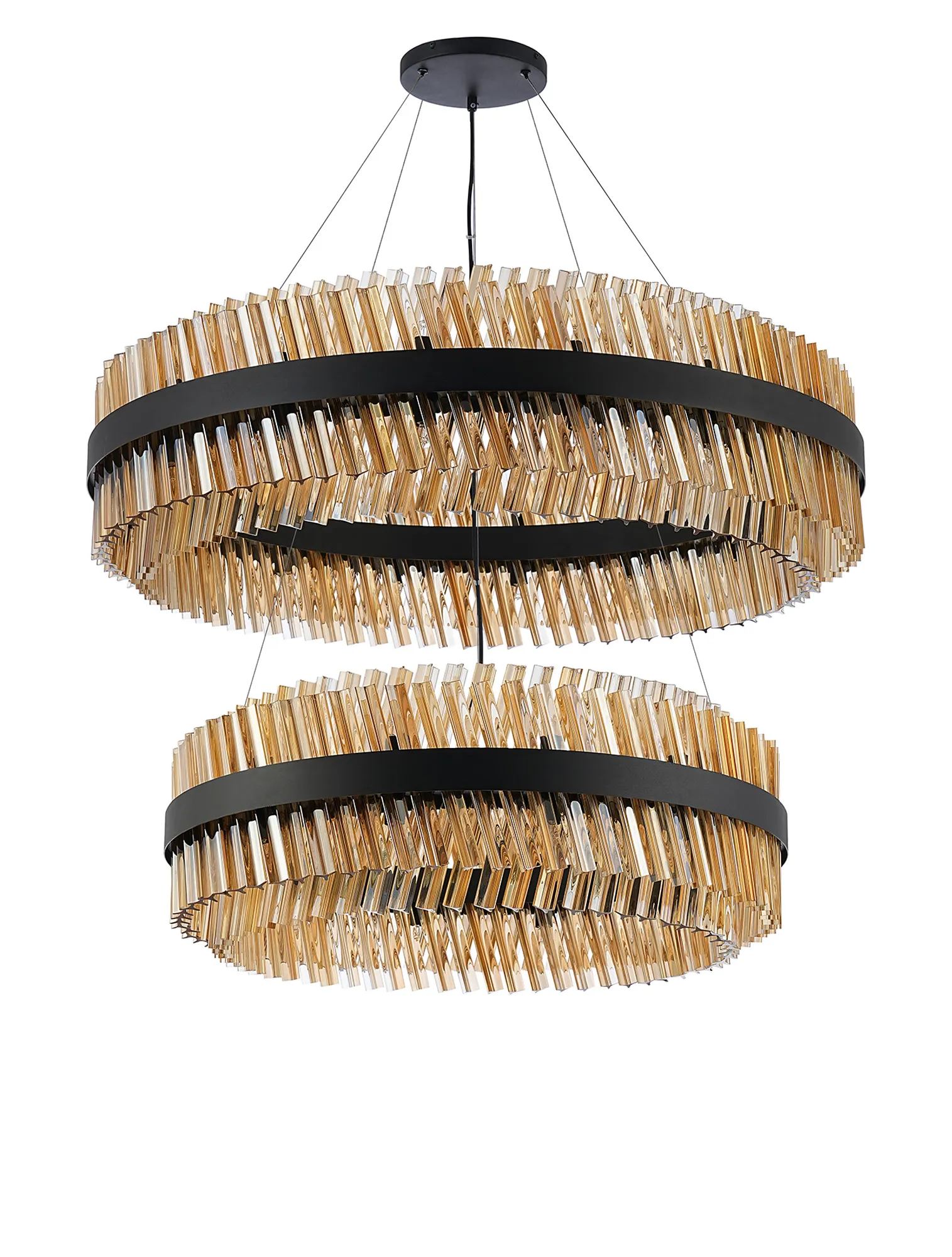 OTHER Brant 2 Tier 80cm + 1m Pendant, 24 + 32 Light G9, Satin Black/Amber