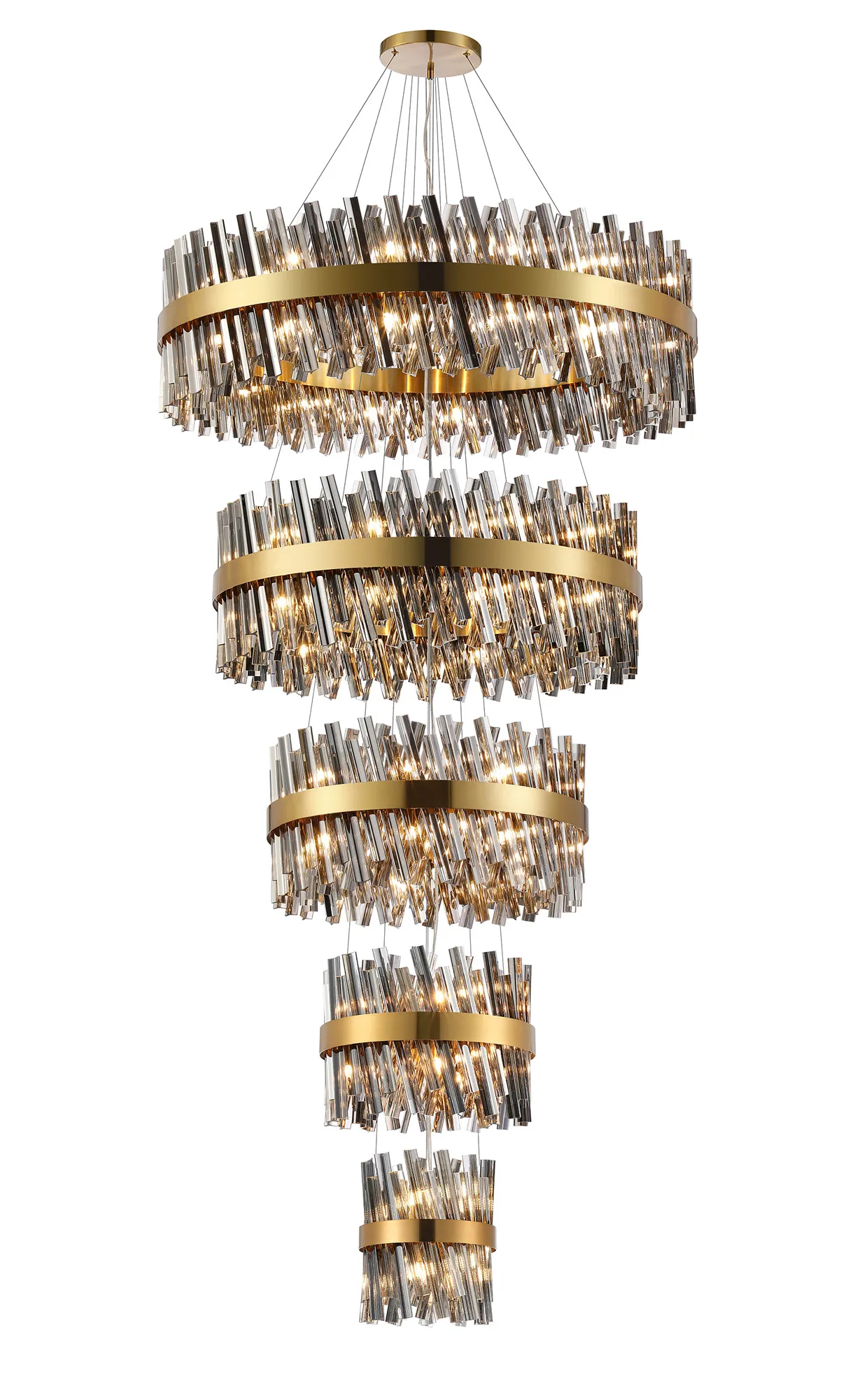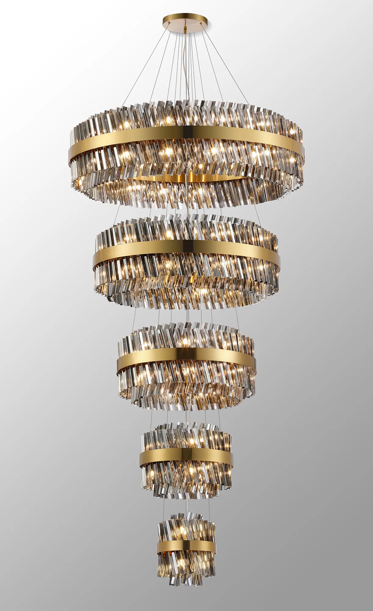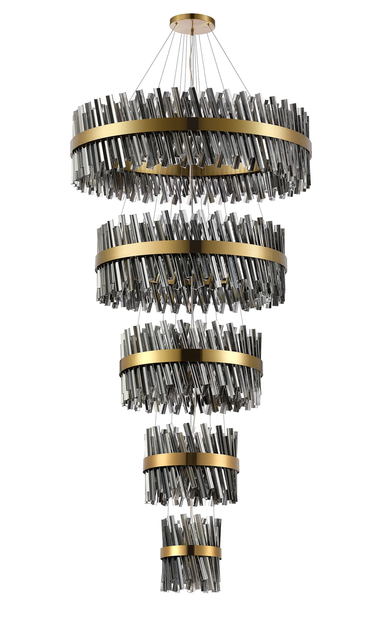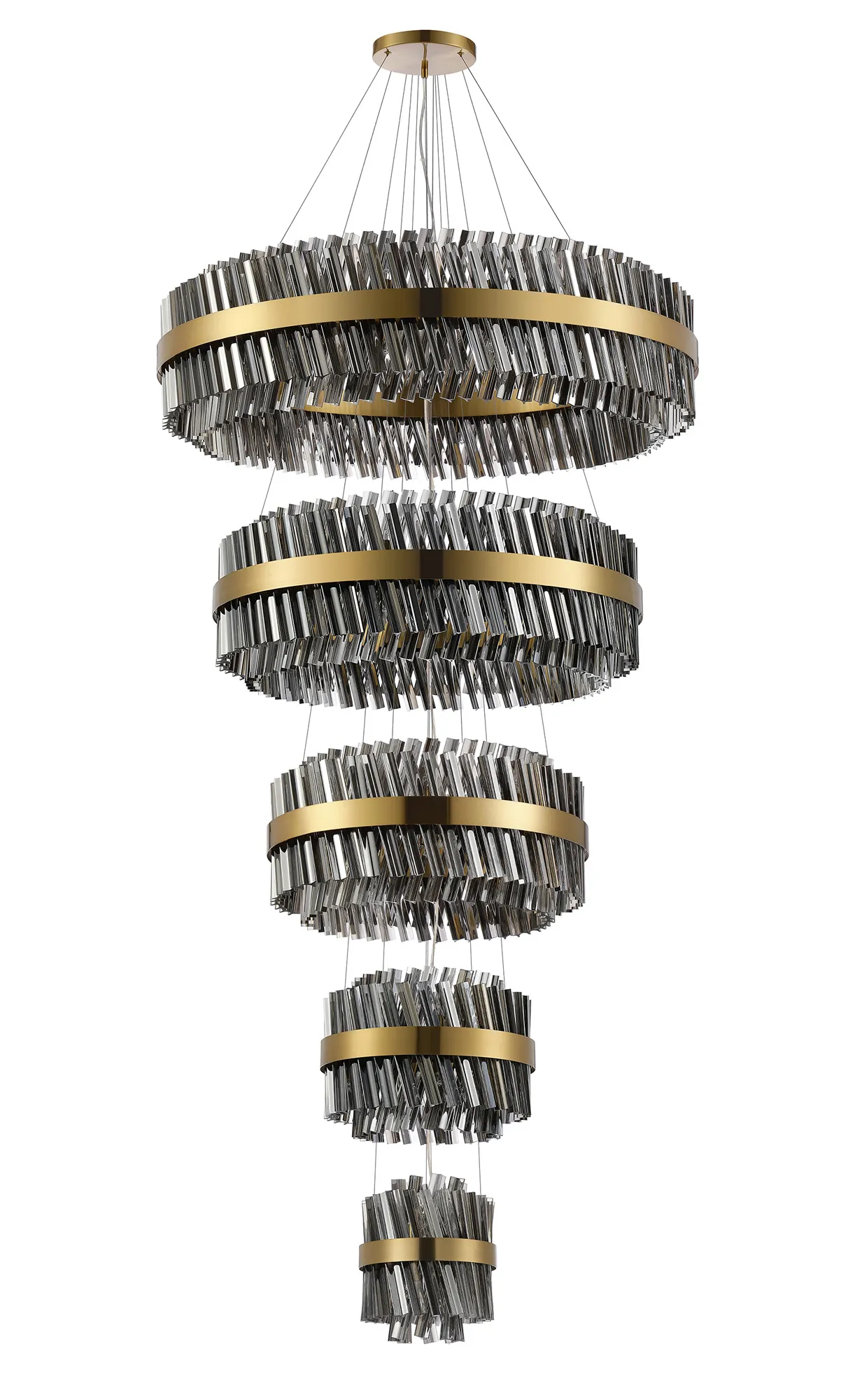 Brant 4 Tier 25cm + 40cm + 60cm + 80cm Pendant, 6 + 10 + 18 + 24 Light G9, Brass/Smoke, Item Weight: 56kg
