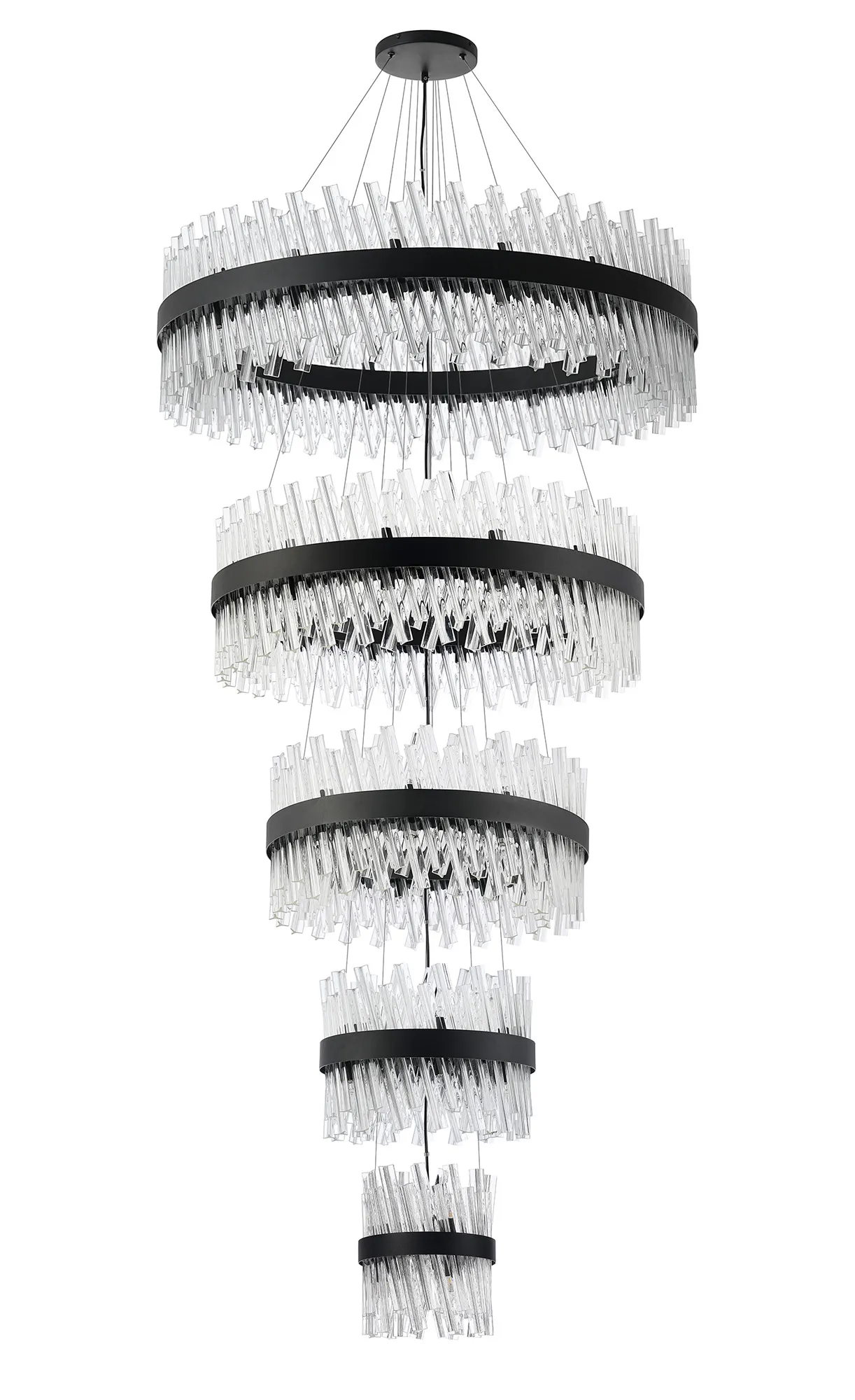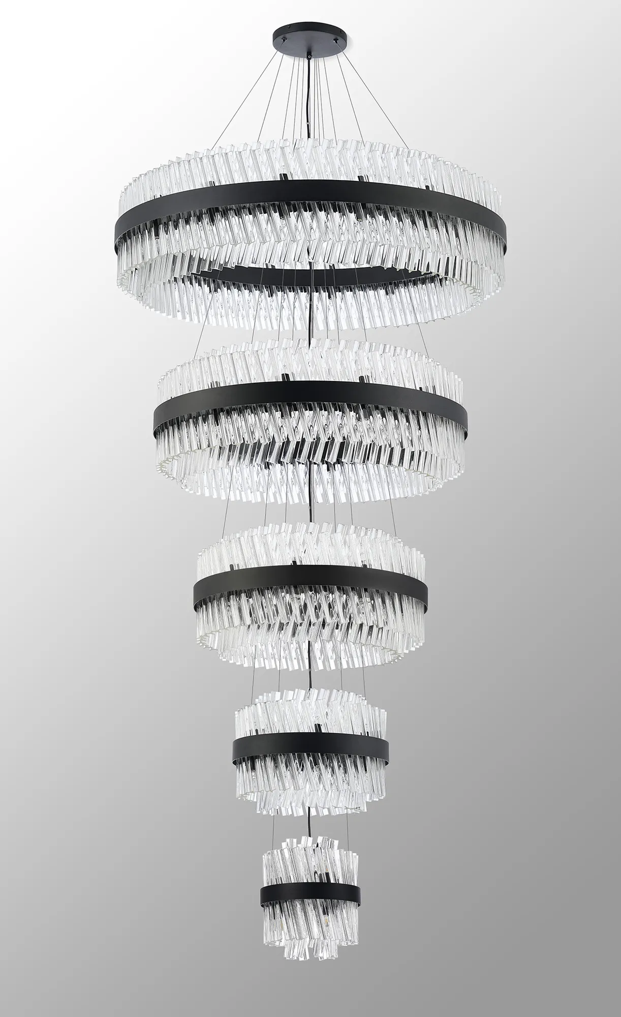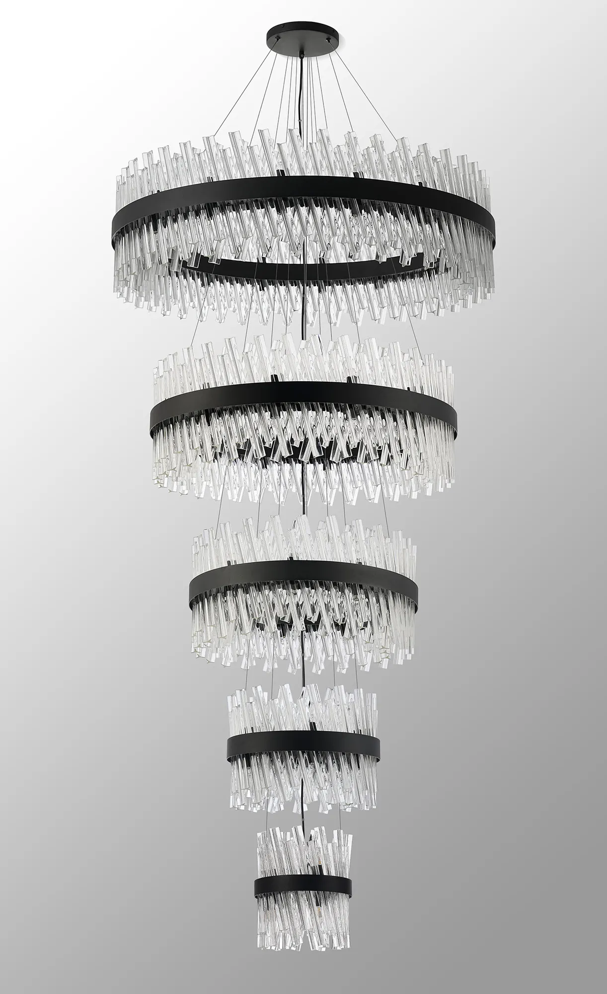 Brant 4 Tier 25cm + 40cm + 60cm + 80cm Pendant, 6 + 10 + 18 + 24 Light G9, Satin Black/Clear, Item Weight: 56kg