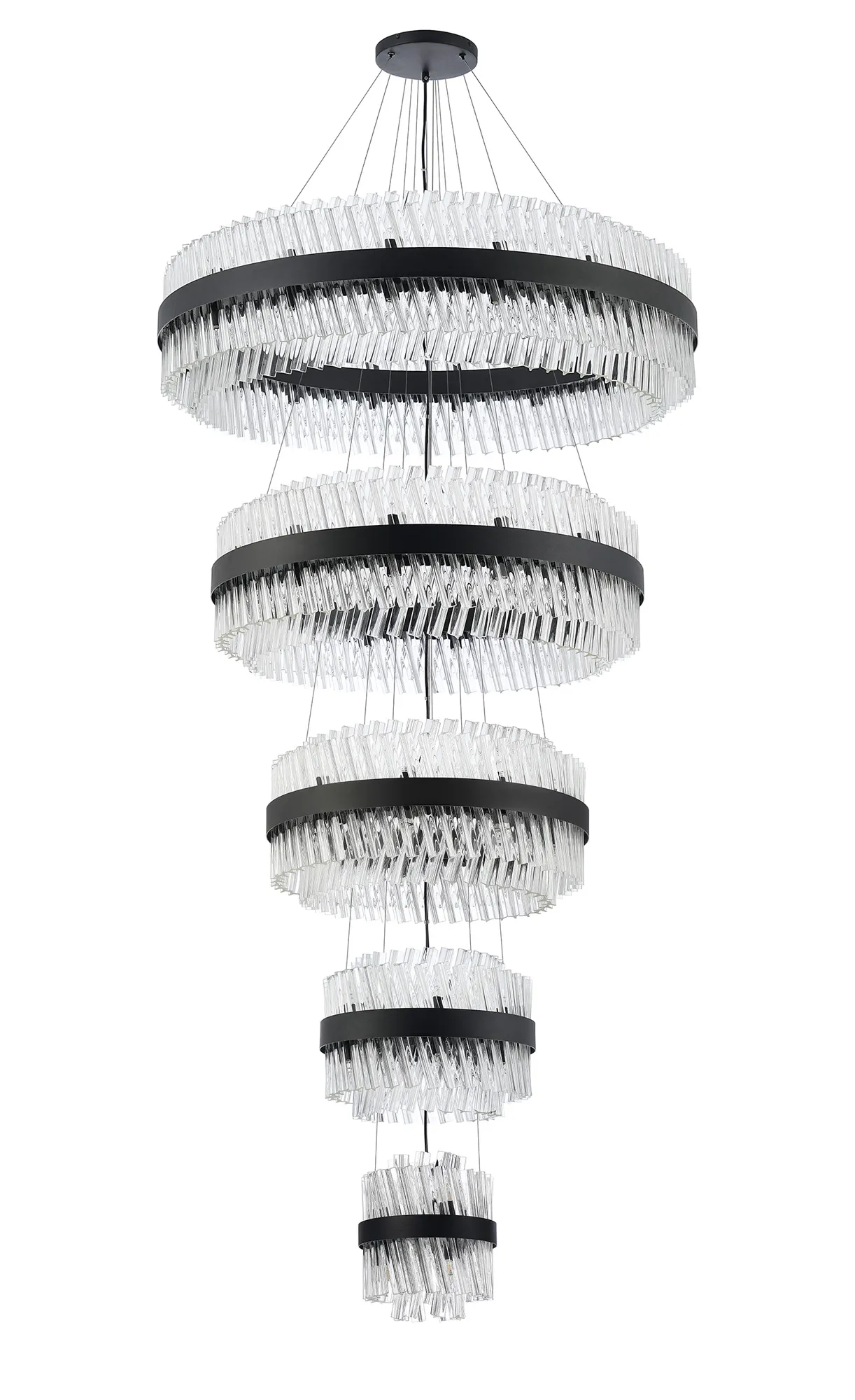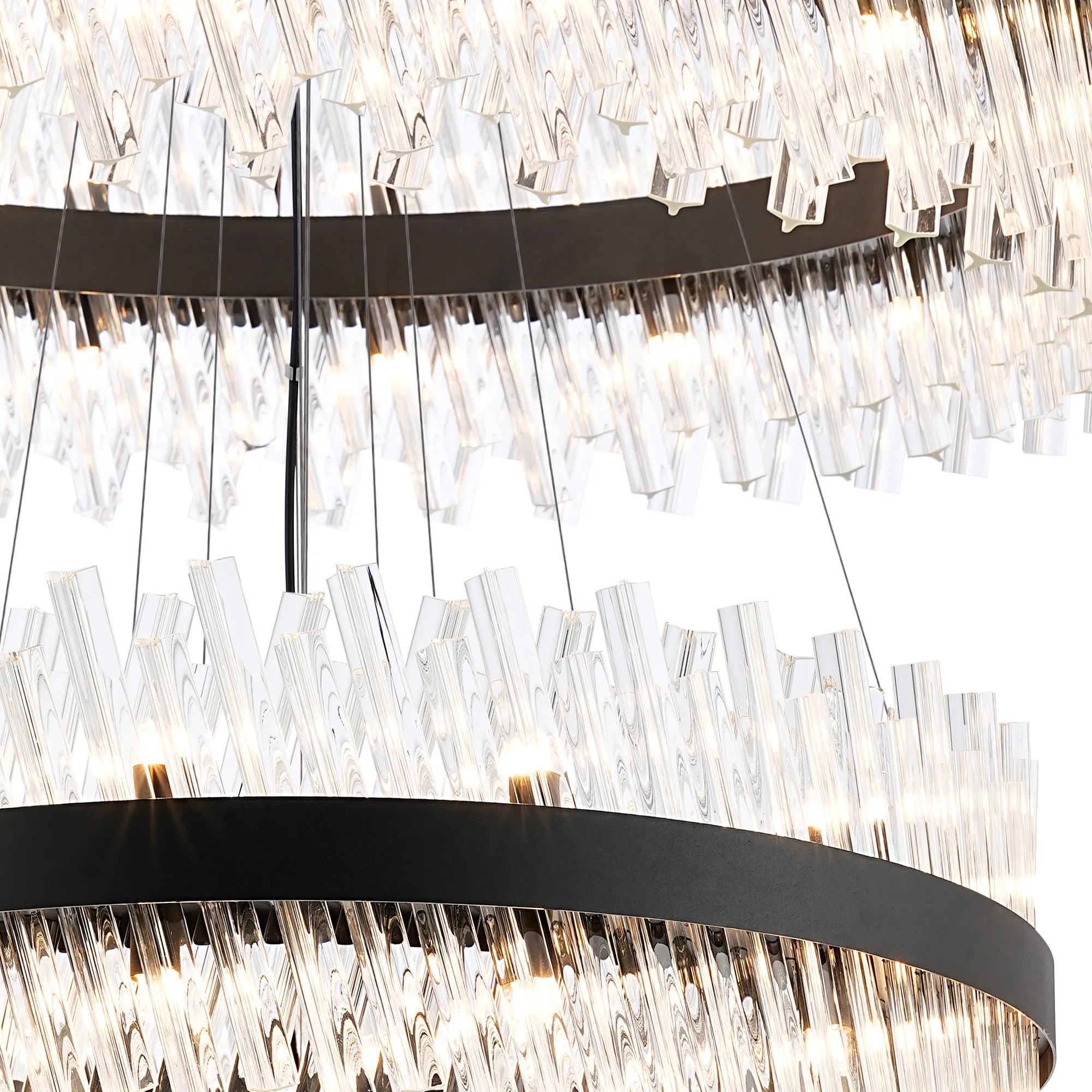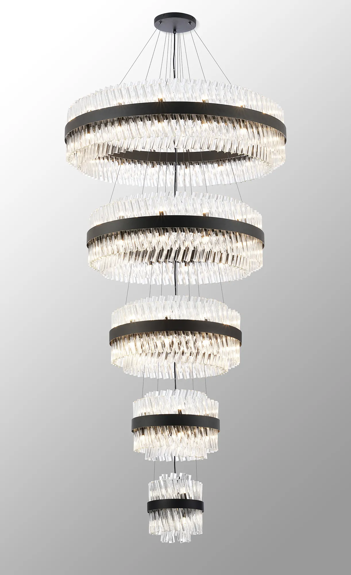 Brant 4 Tier 25cm + 40cm + 60cm + 80cm Pendant, 6 + 10 + 18 + 24 Light G9, Satin Black/Clear, Item Weight: 56kg