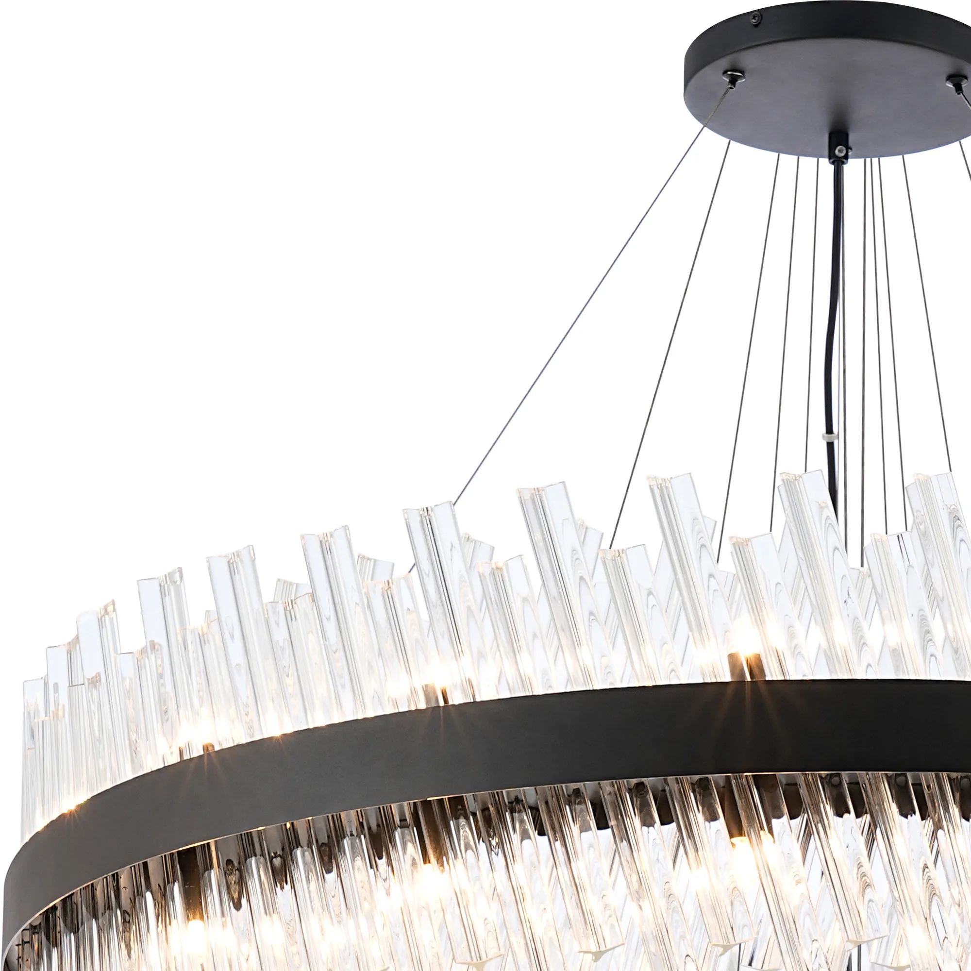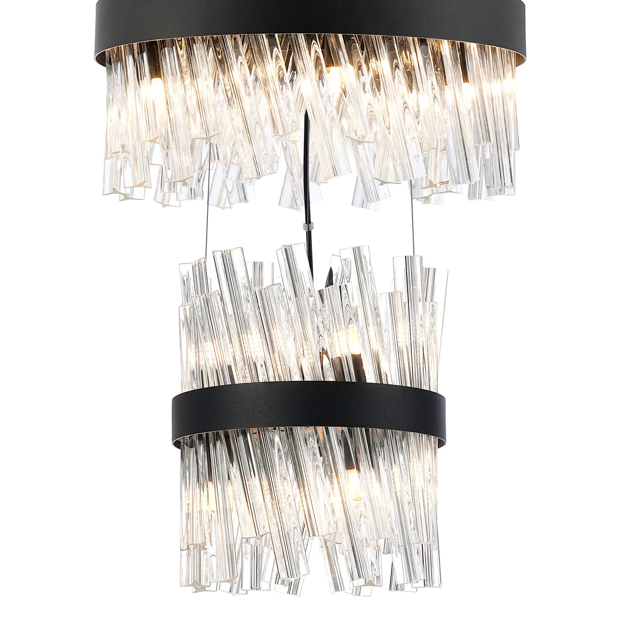 Brant 4 Tier 25cm + 40cm + 60cm + 80cm Pendant, 6 + 10 + 18 + 24 Light G9, Black/Clear