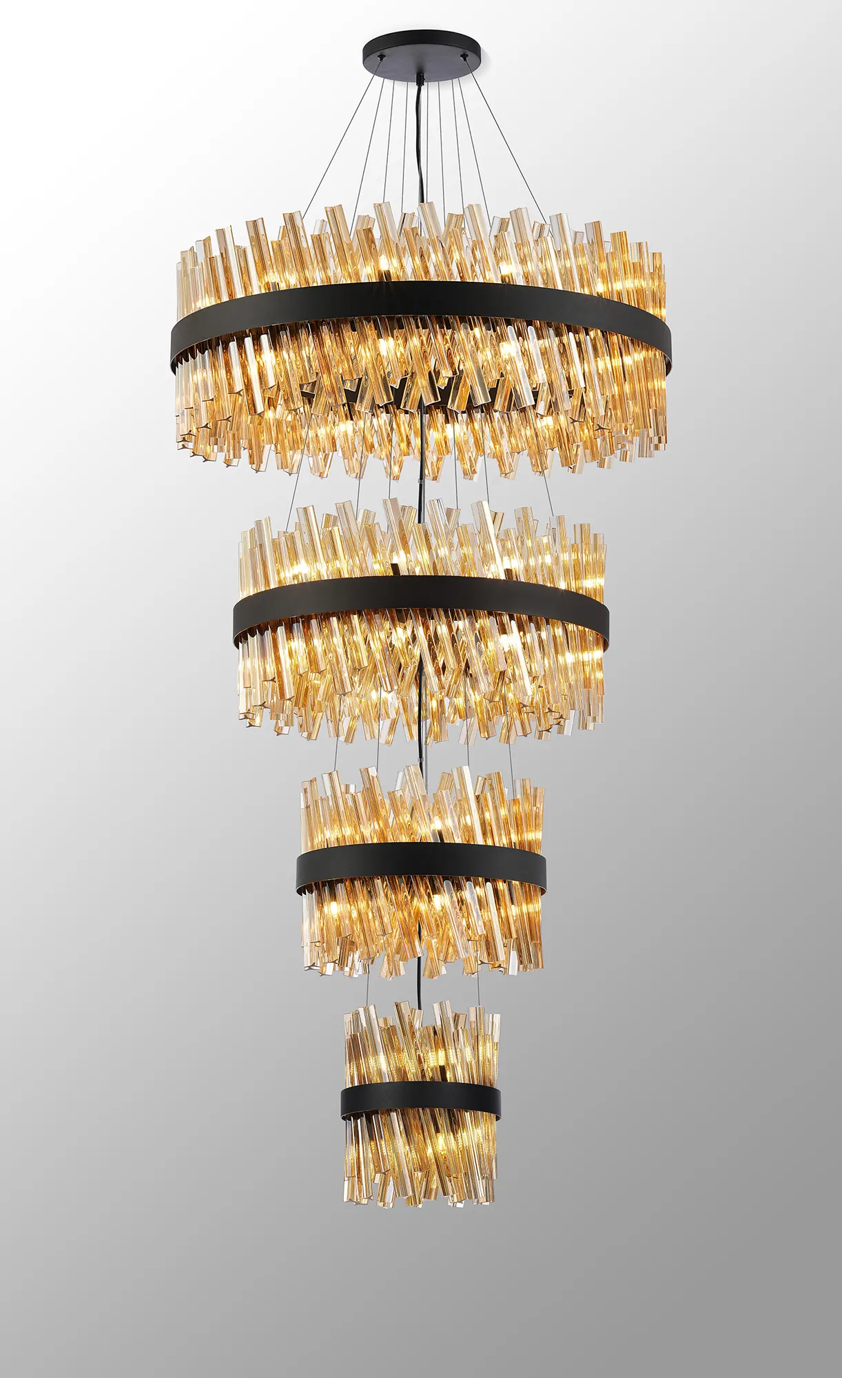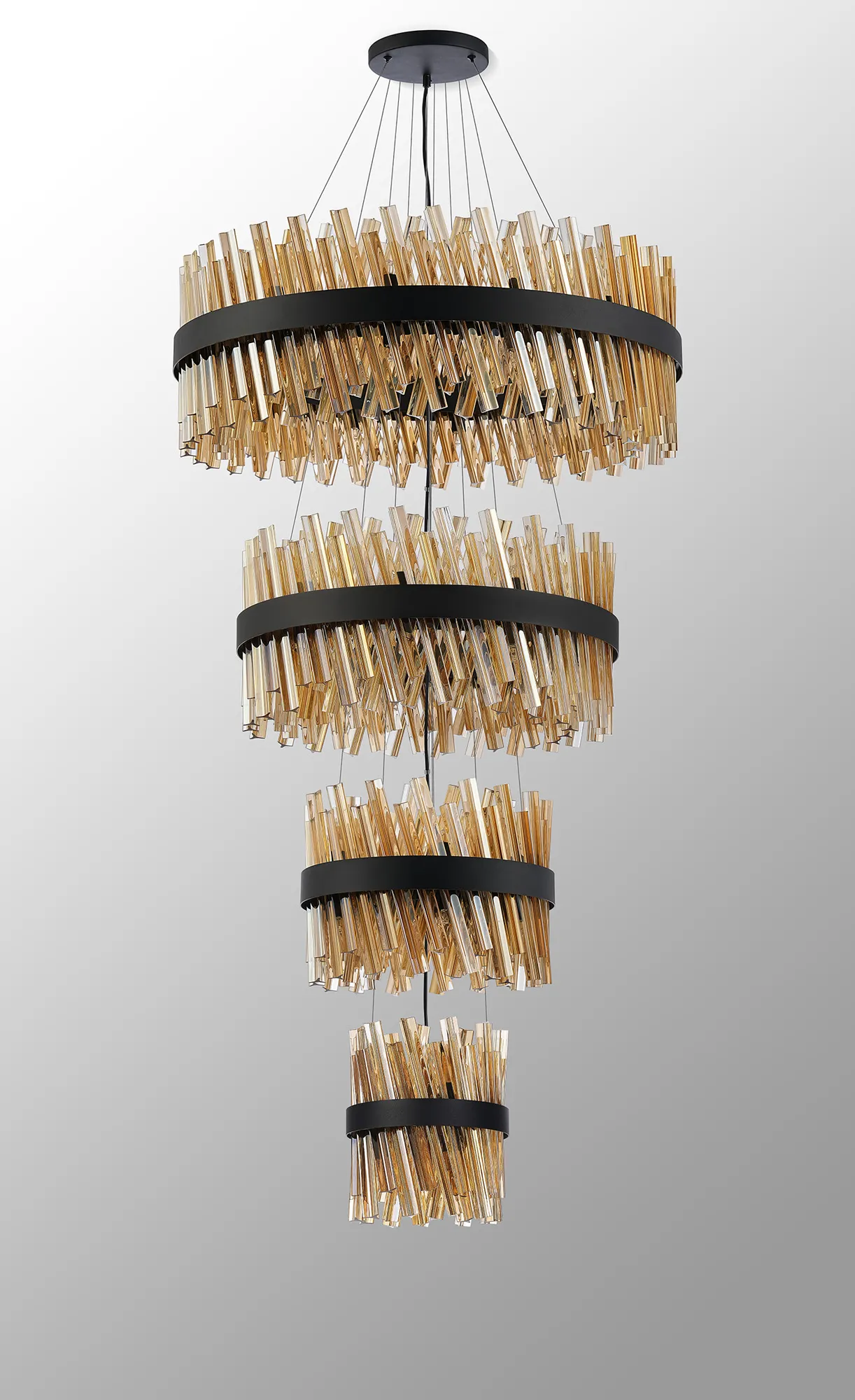 OTHER Brant 4 Tier 25cm + 40cm + 60cm + 80cm Pendant, 6 + 10 + 18 + 24 Light G9, Black/Amber
