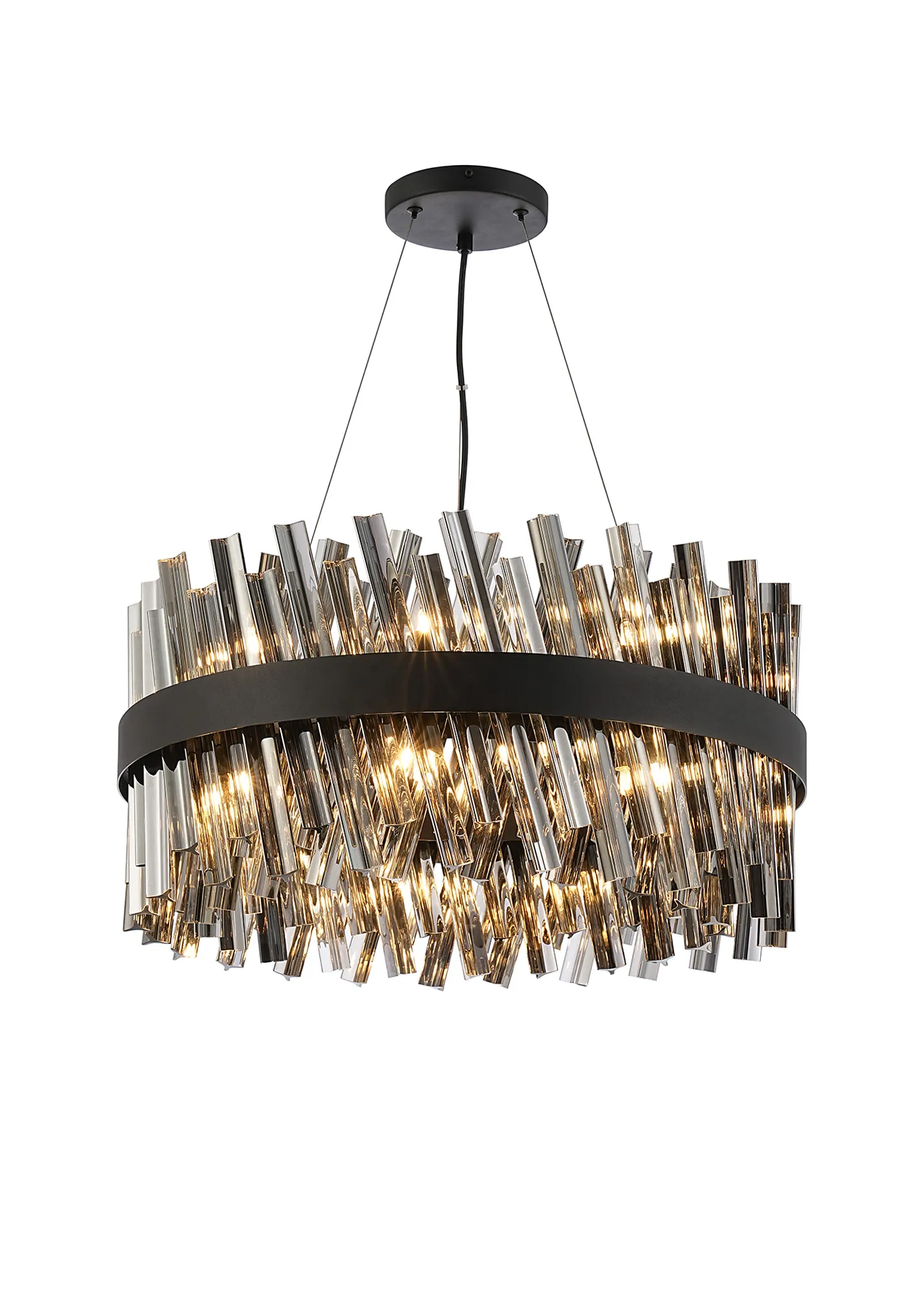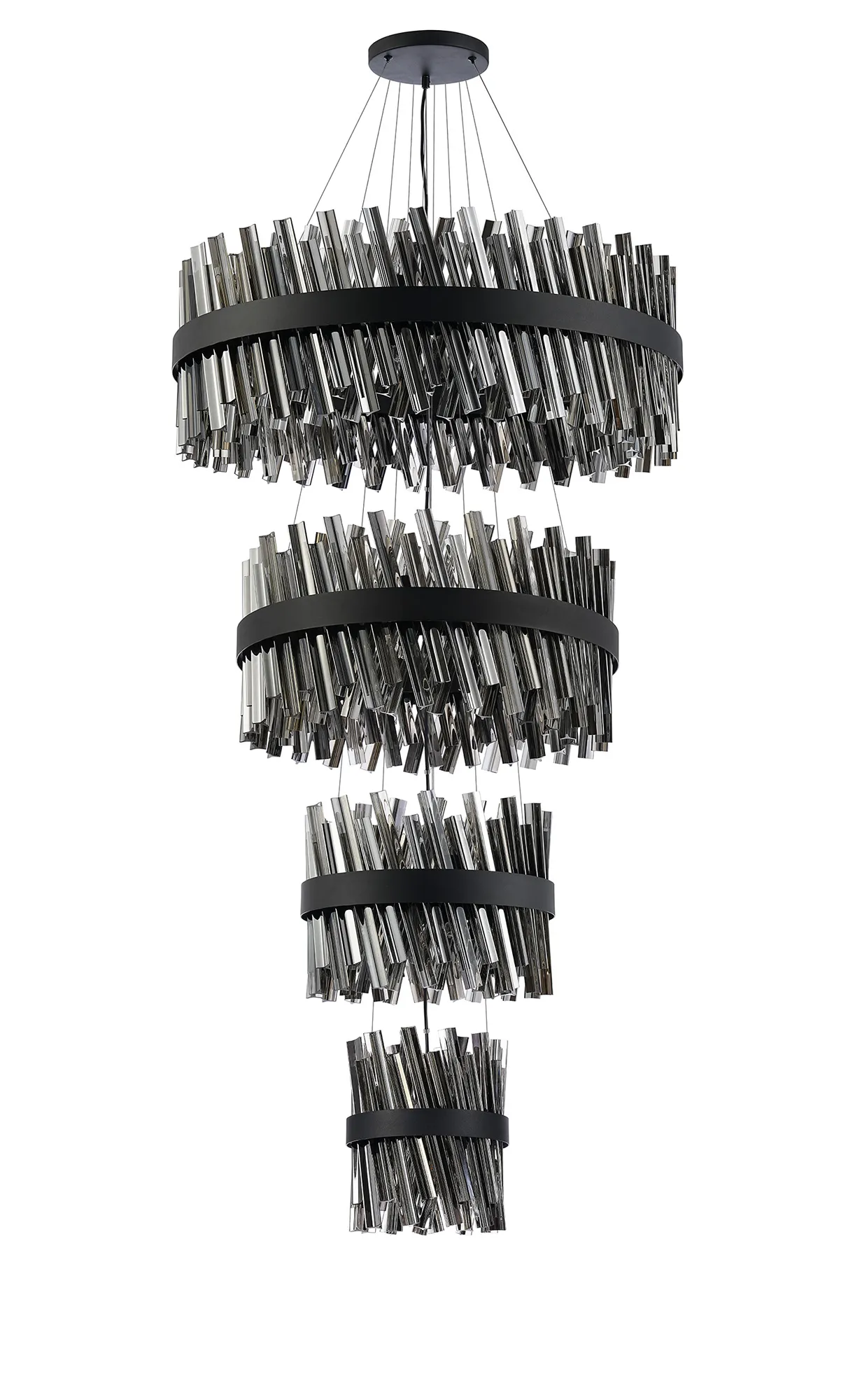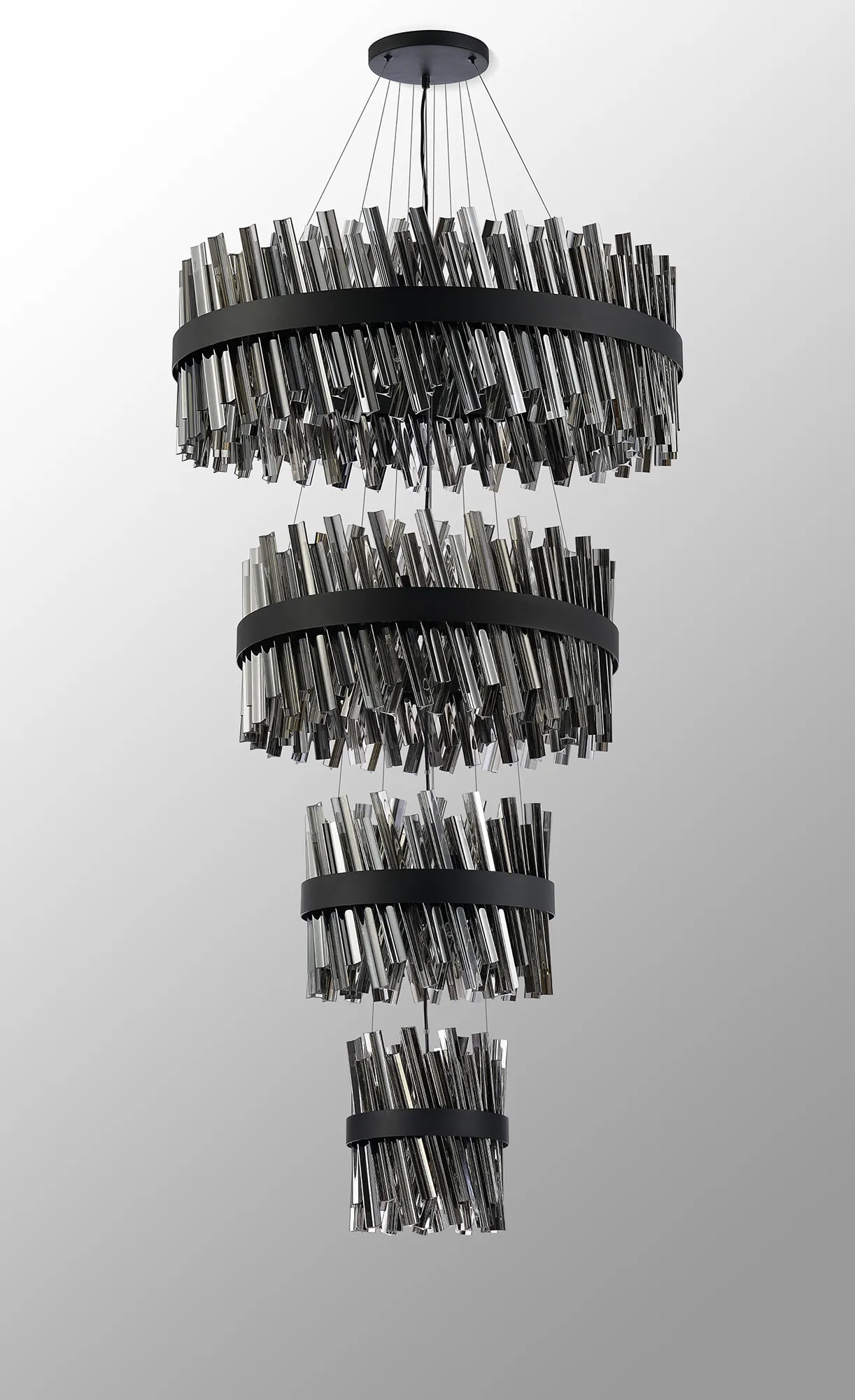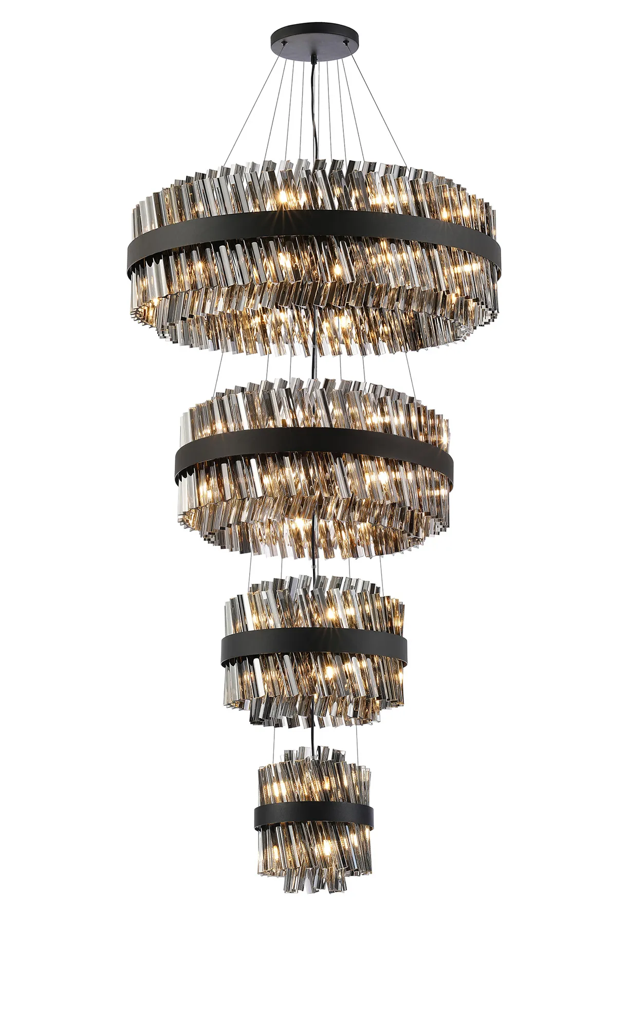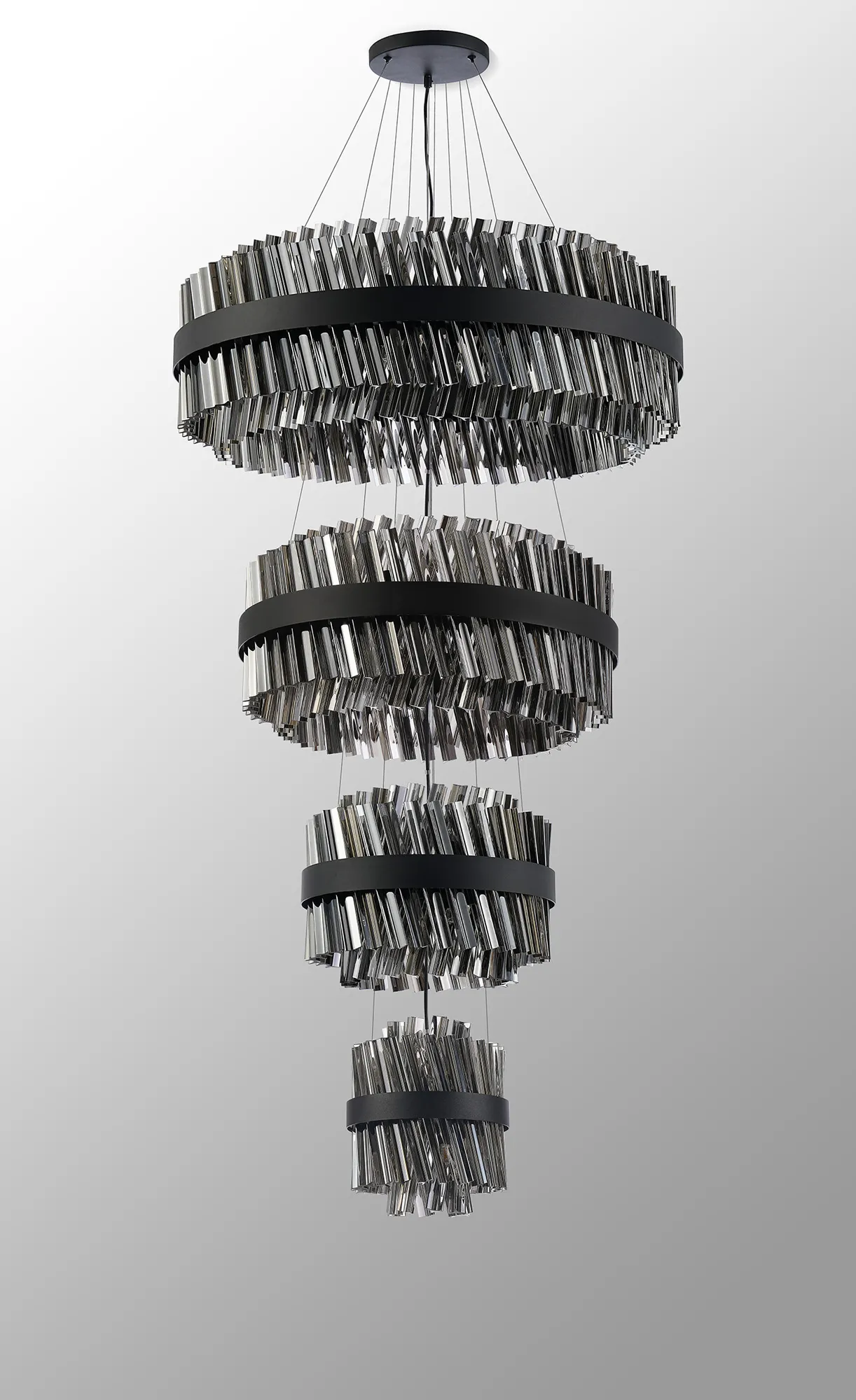 Brant 5 Tier 25cm + 40cm + 60cm + 80cm + 1m Pendant, 6 + 10 + 18 + 24 + 32 Light G9, Satin Black/Smoke, Item Weight: 86kg