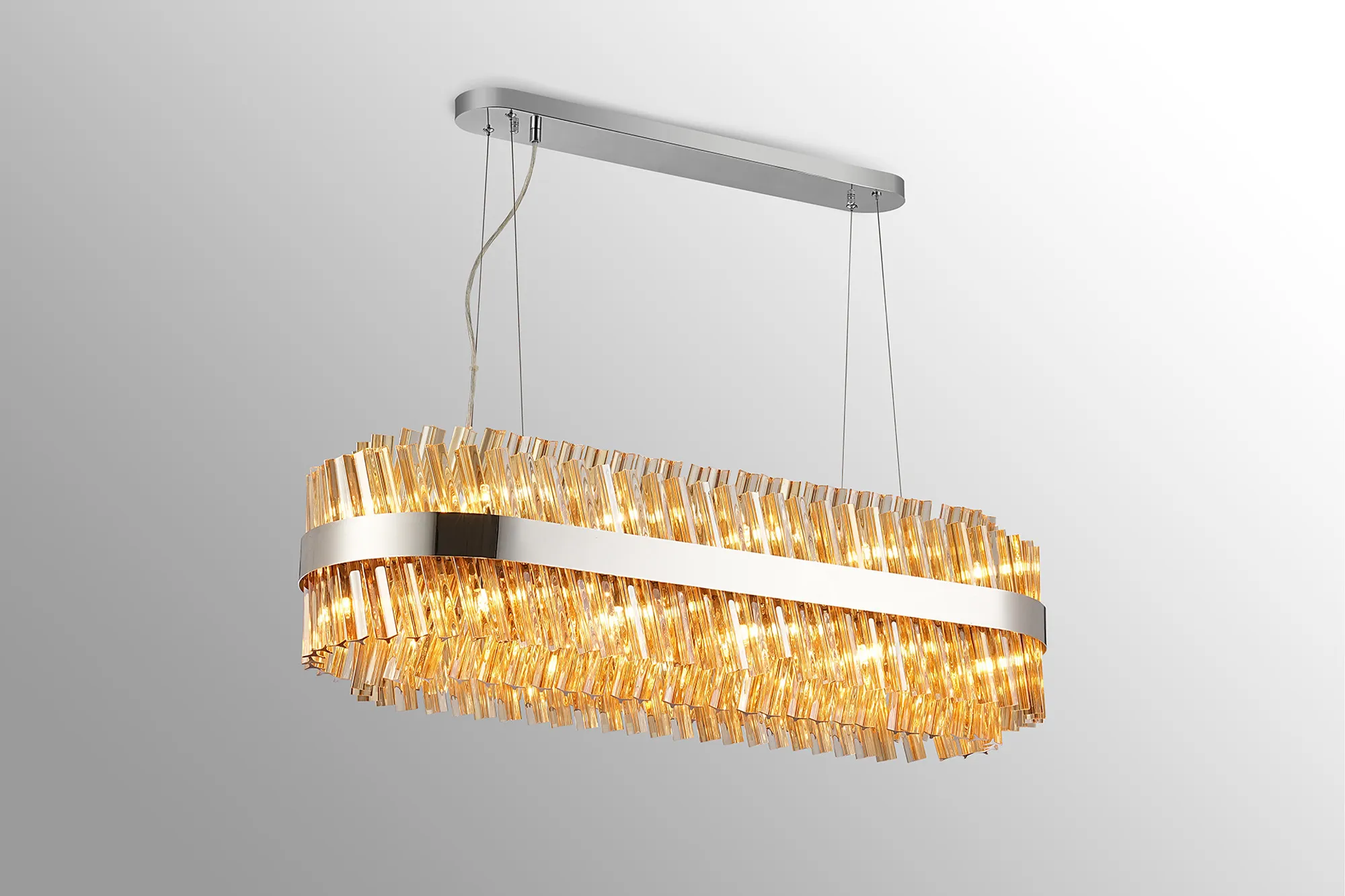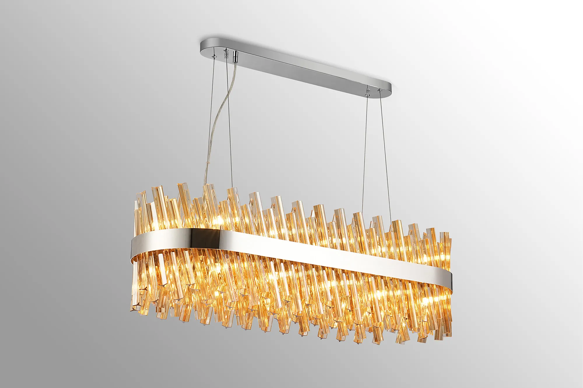 Brant 5 Tier 25cm + 40cm + 60cm + 80cm + 1m Pendant, 6 + 10 + 18 + 24 + 32 Light G9, Polished Nickel/Amber