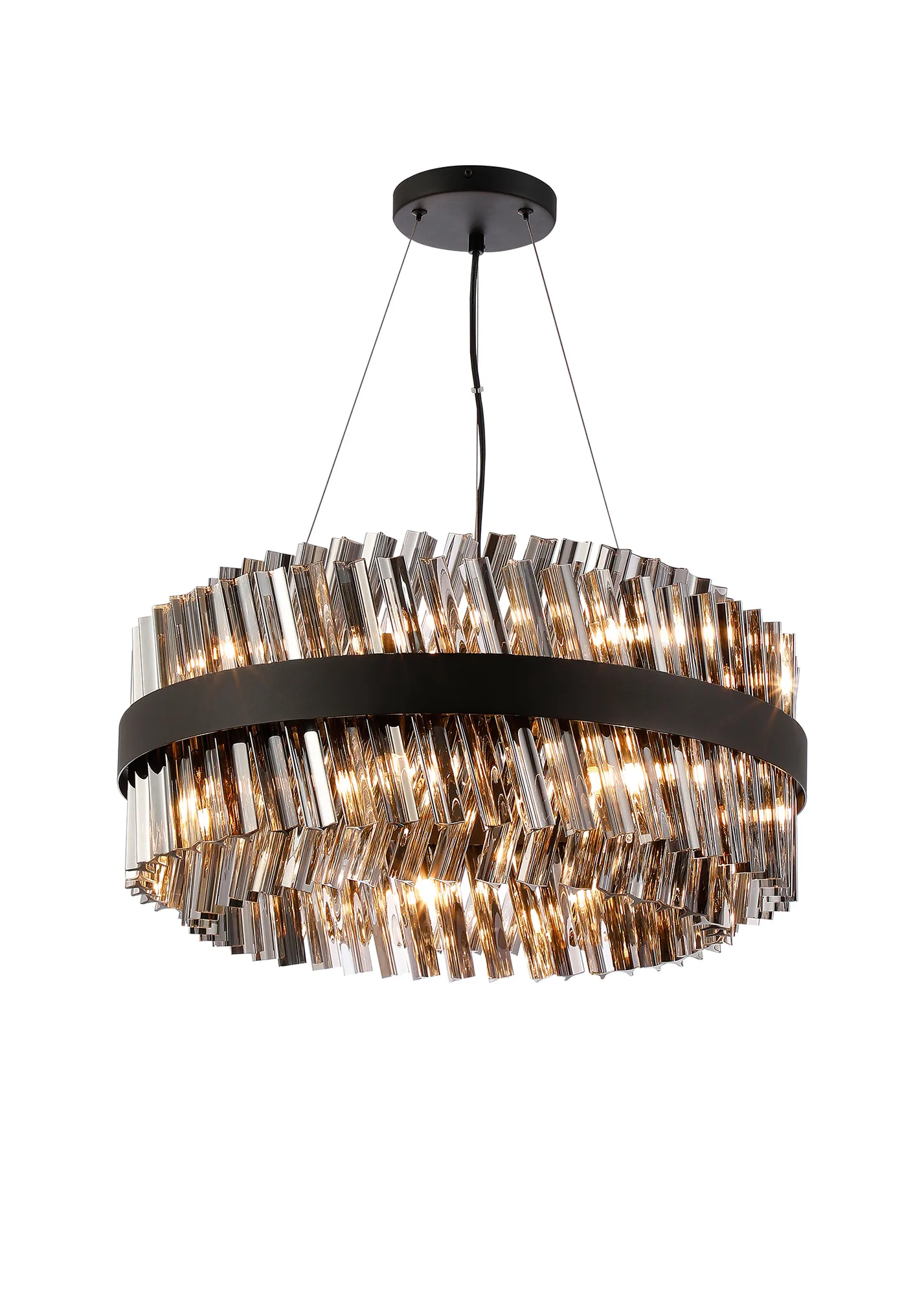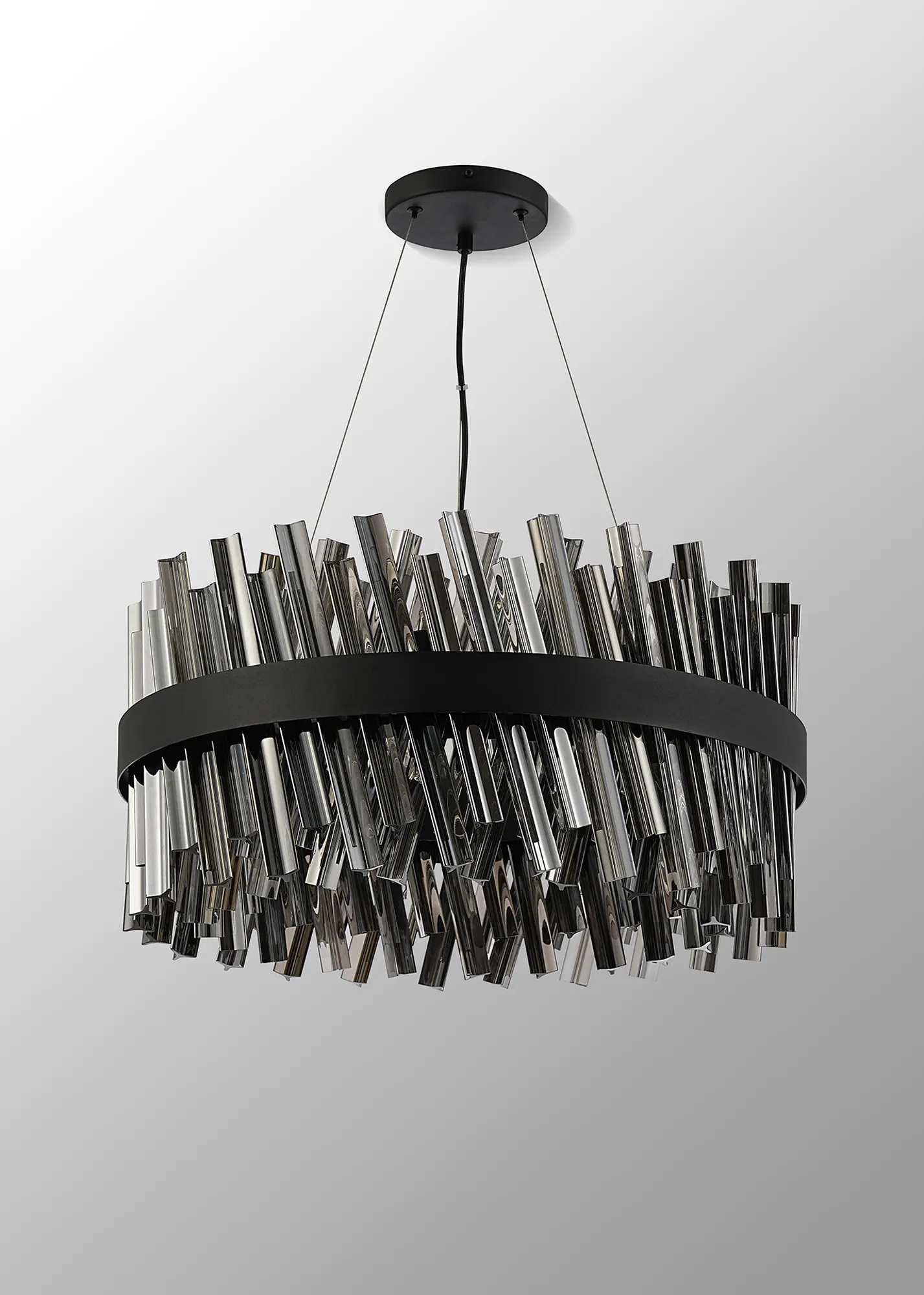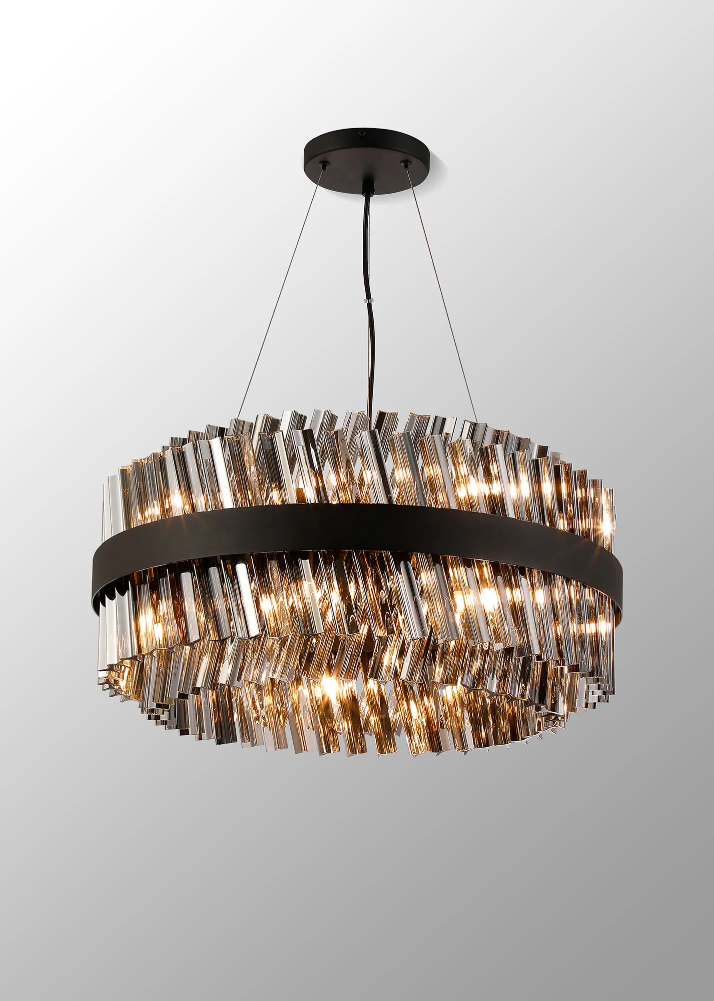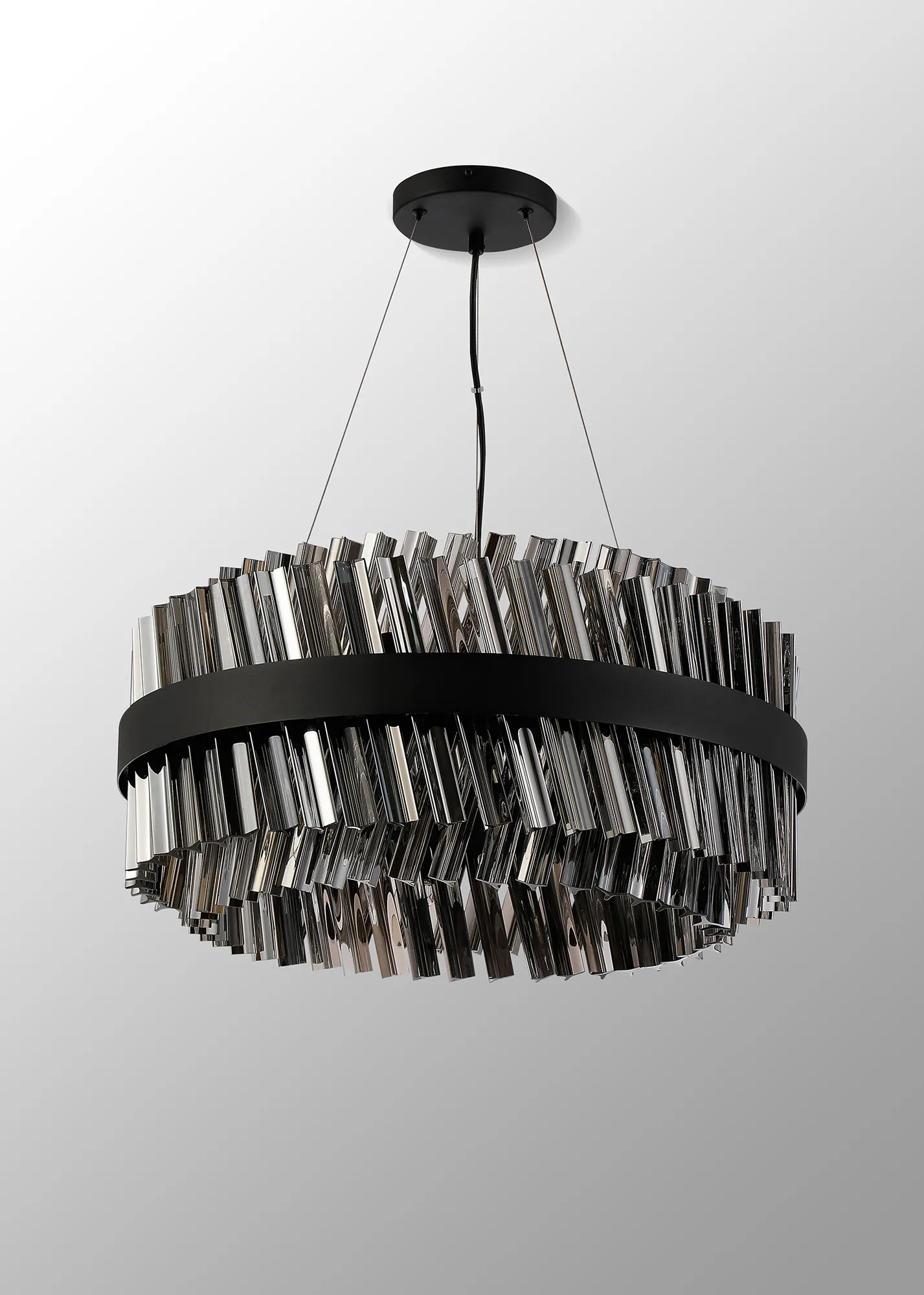 Brant 5 Tier 25cm + 40cm + 60cm + 80cm + 1m Pendant, 6 + 10 + 18 + 24 + 32 Light G9, Satin Black/Smoke, Item Weight: 86kg