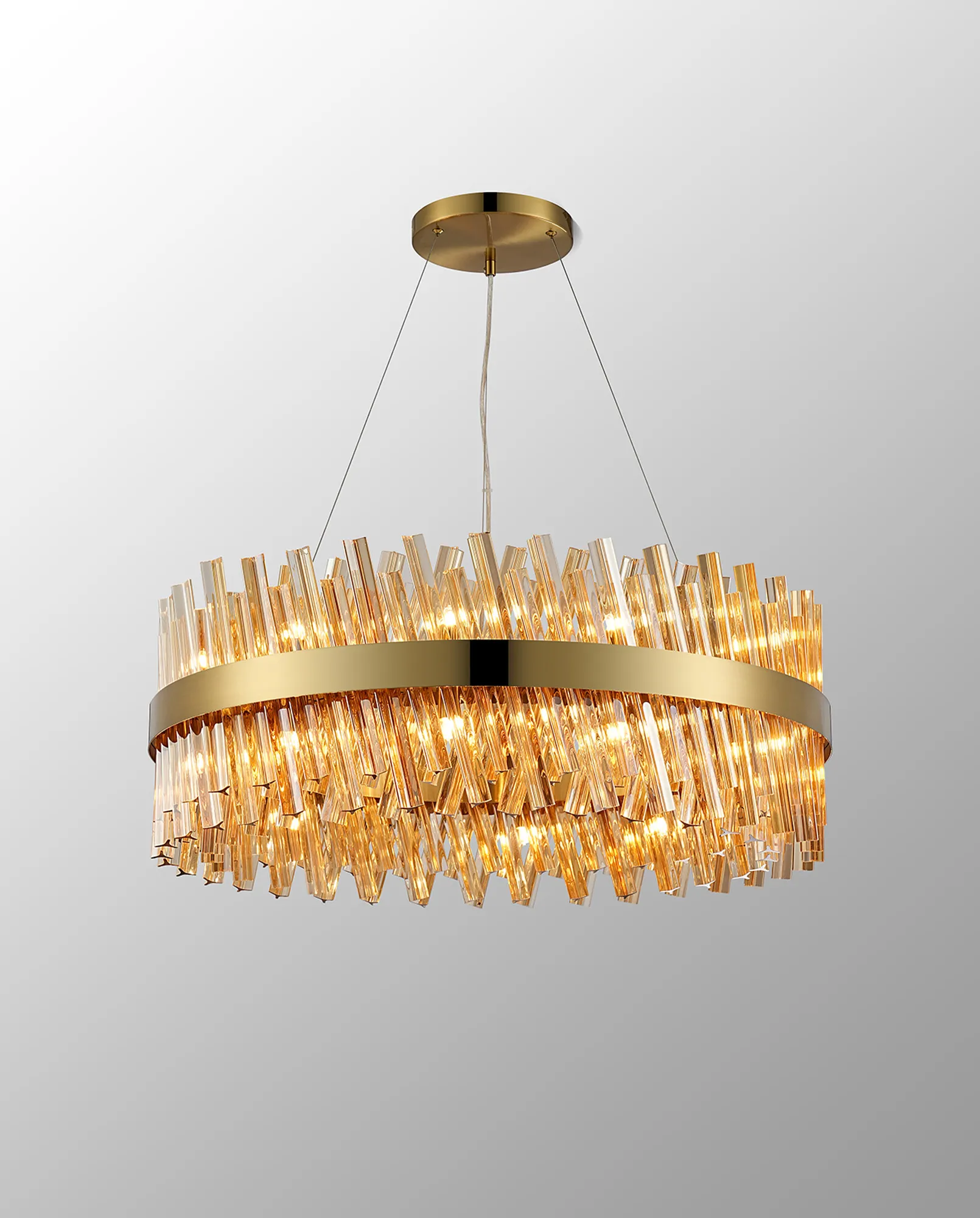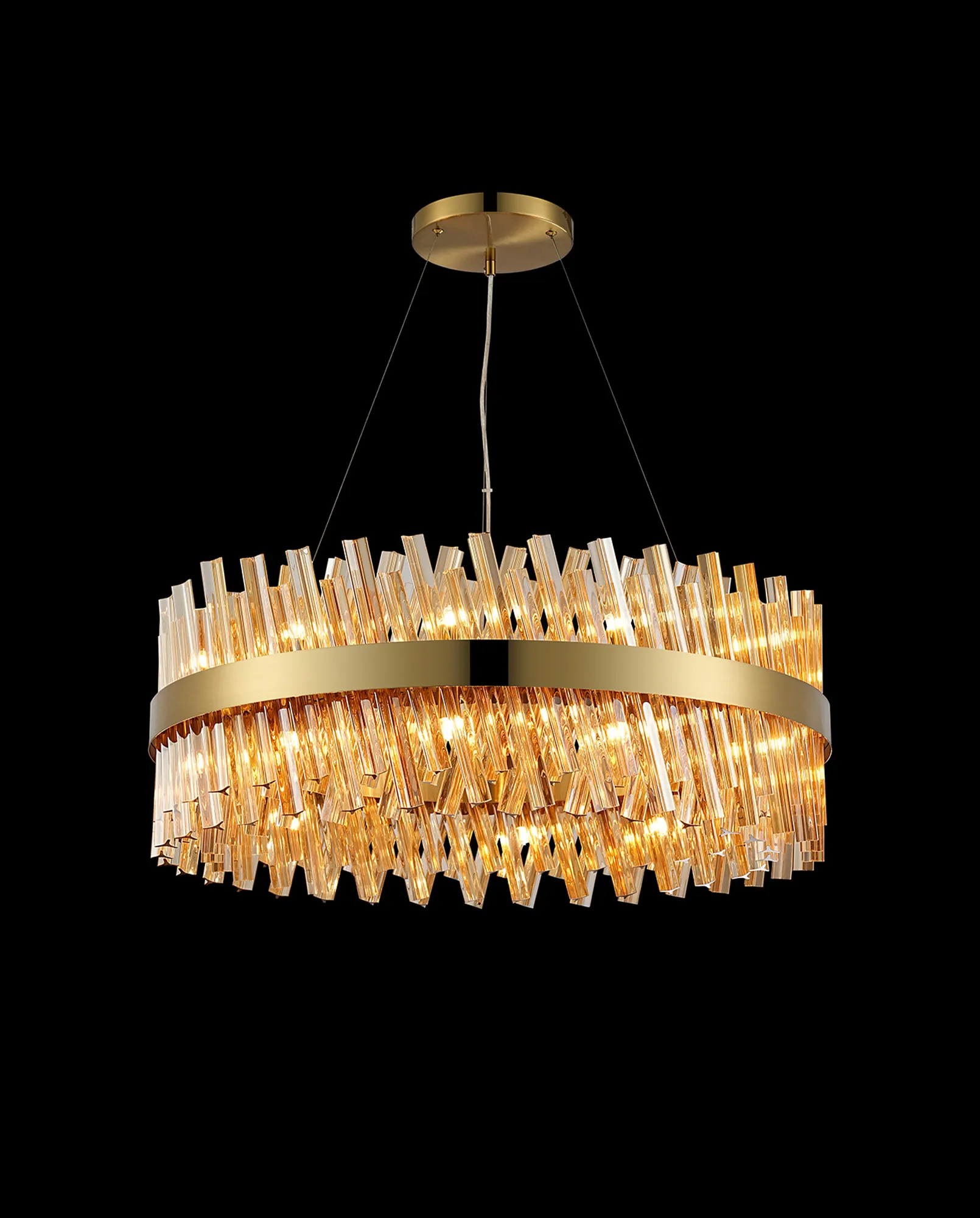 Brant 5 Tier 25cm + 40cm + 60cm + 80cm + 1m Pendant, 6 + 10 + 18 + 24 + 32 Light G9, Brass/Amber, Item Weight: 86kg