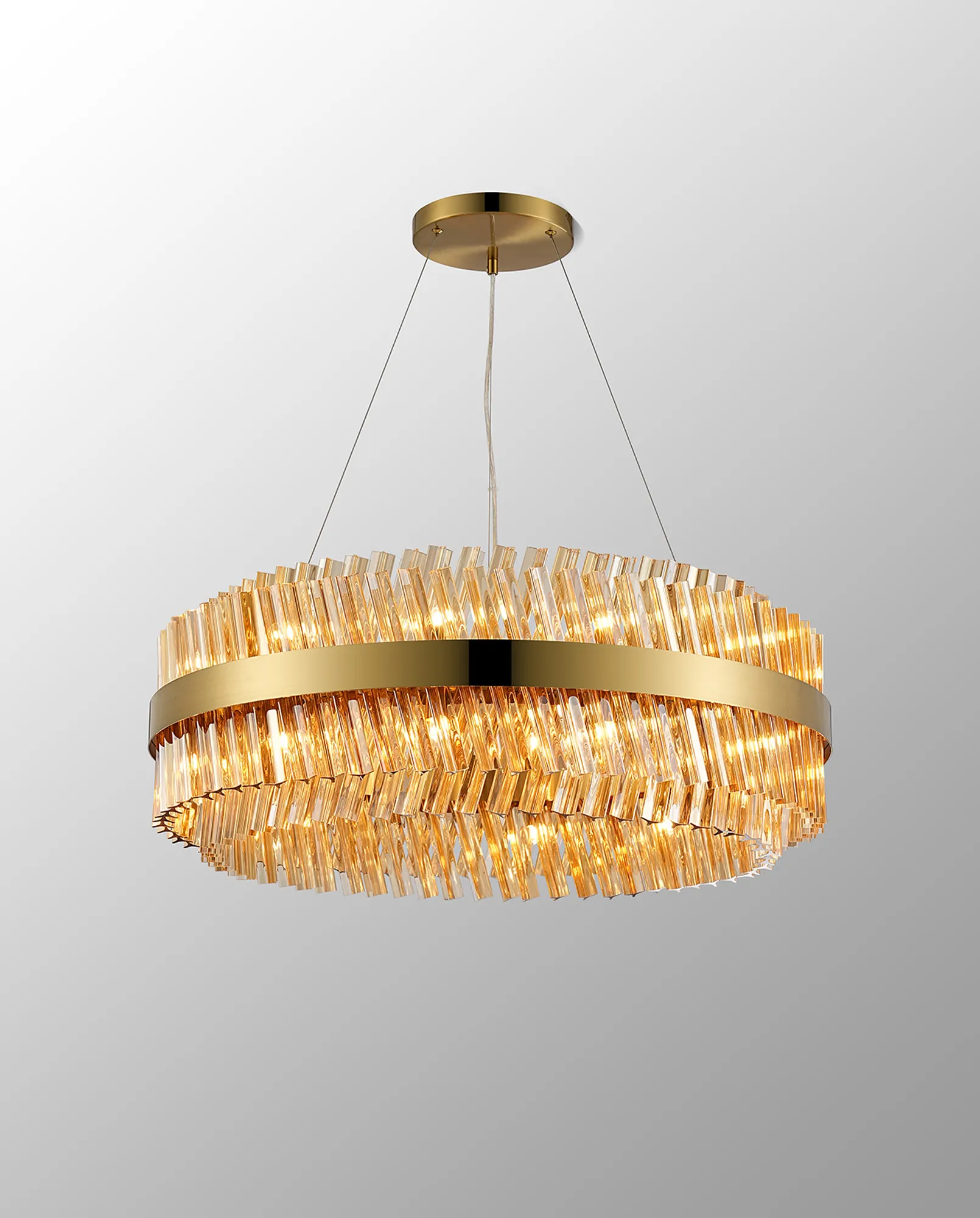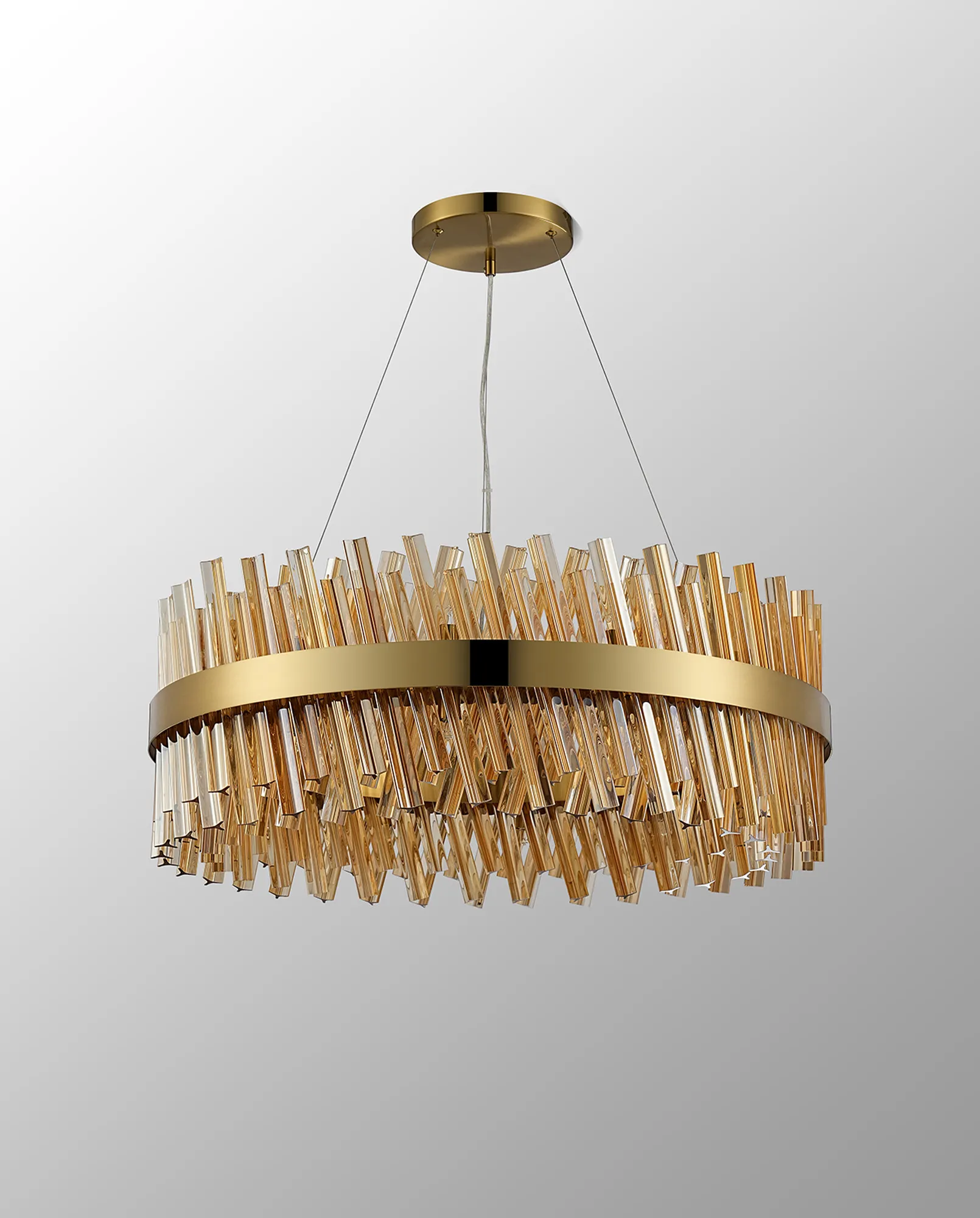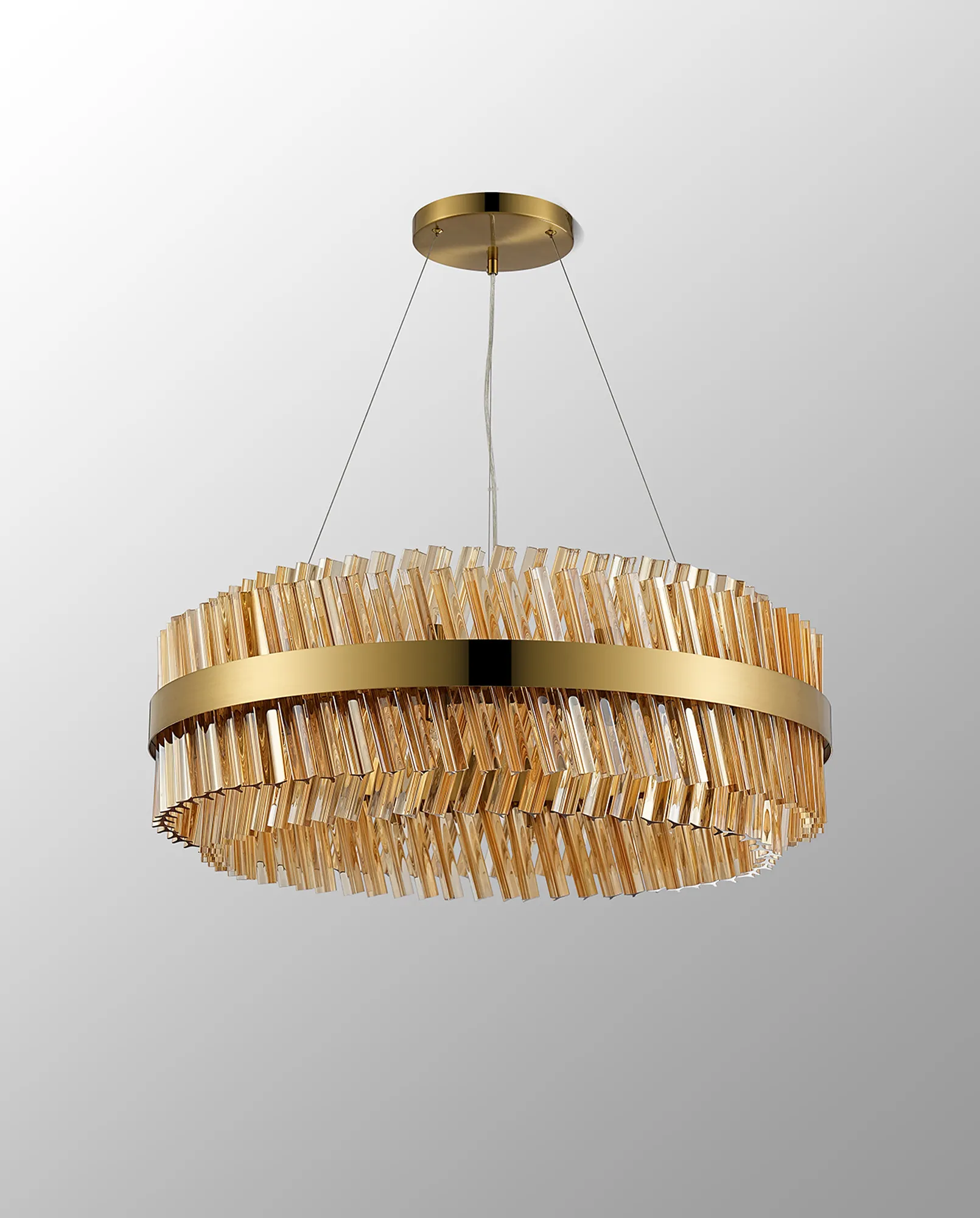 Brant 5 Tier 25cm + 40cm + 60cm + 80cm + 1m Pendant, 6 + 10 + 18 + 24 + 32 Light G9, Brass/Amber