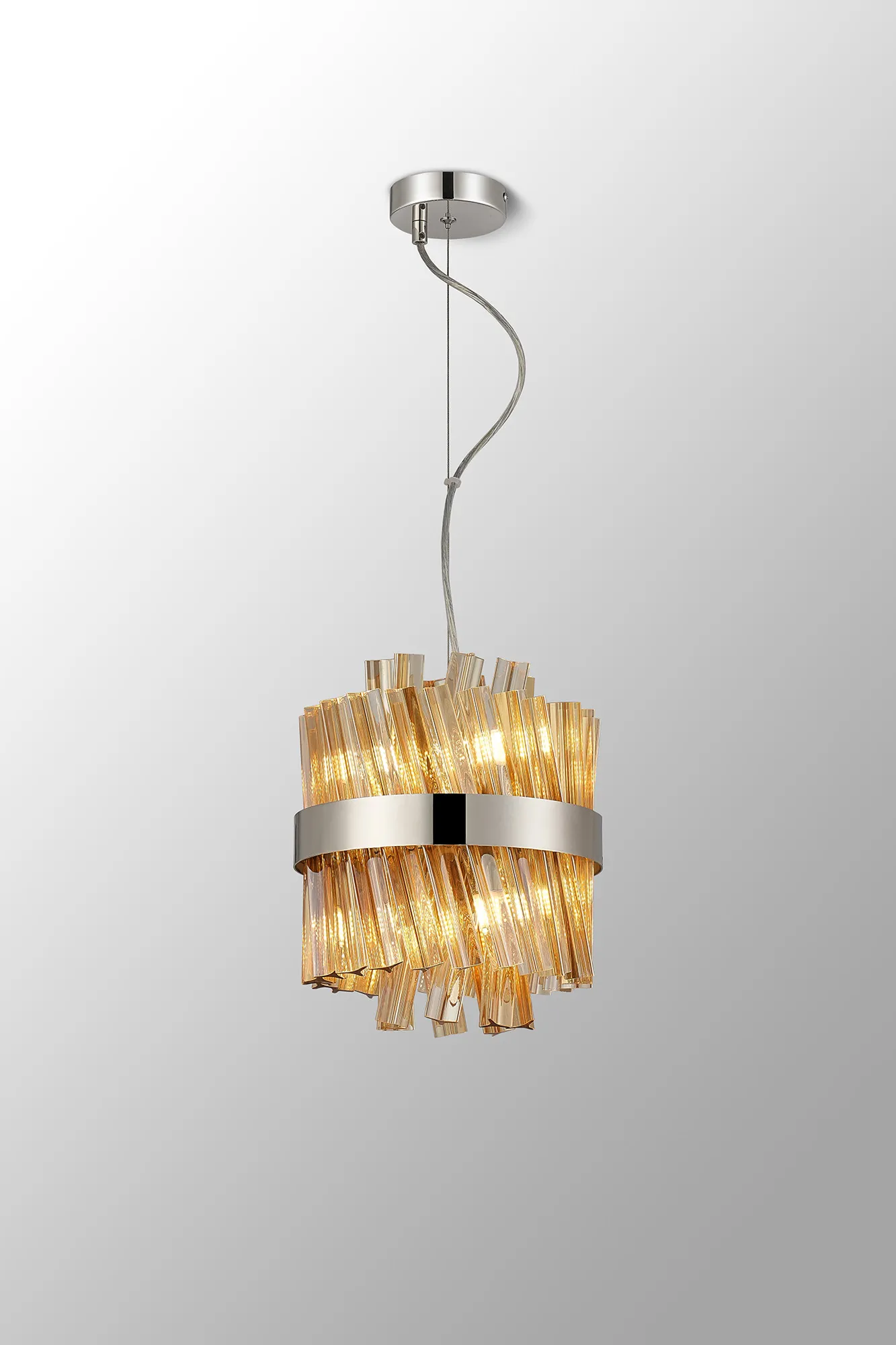 OTHER Brant Pendant Round 6 x G9, Polished Nickel/Amber Sculpted Glass