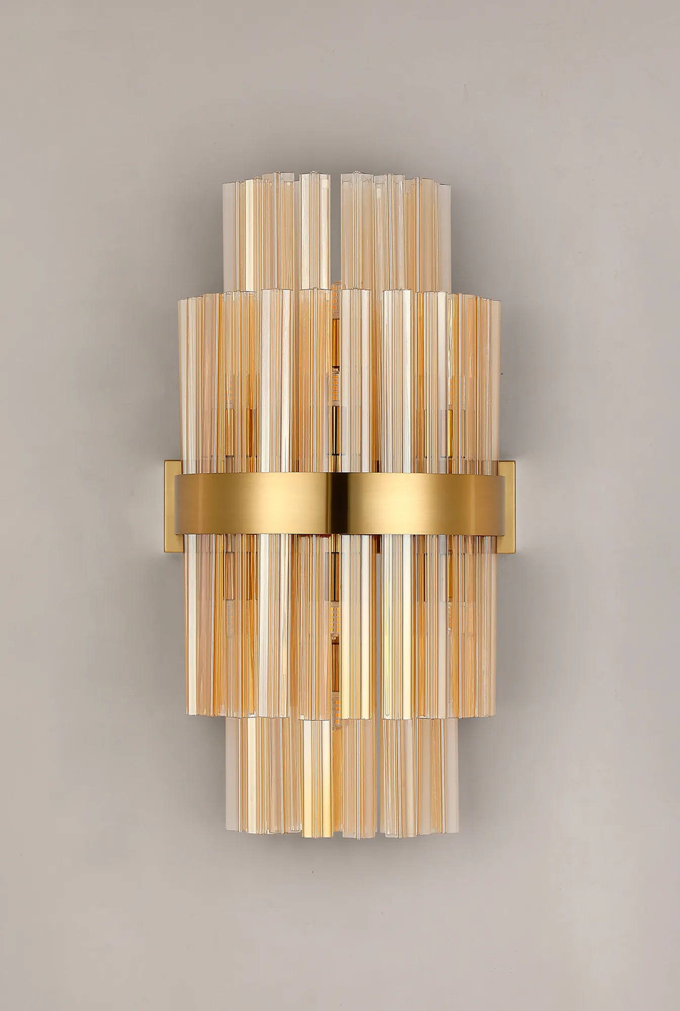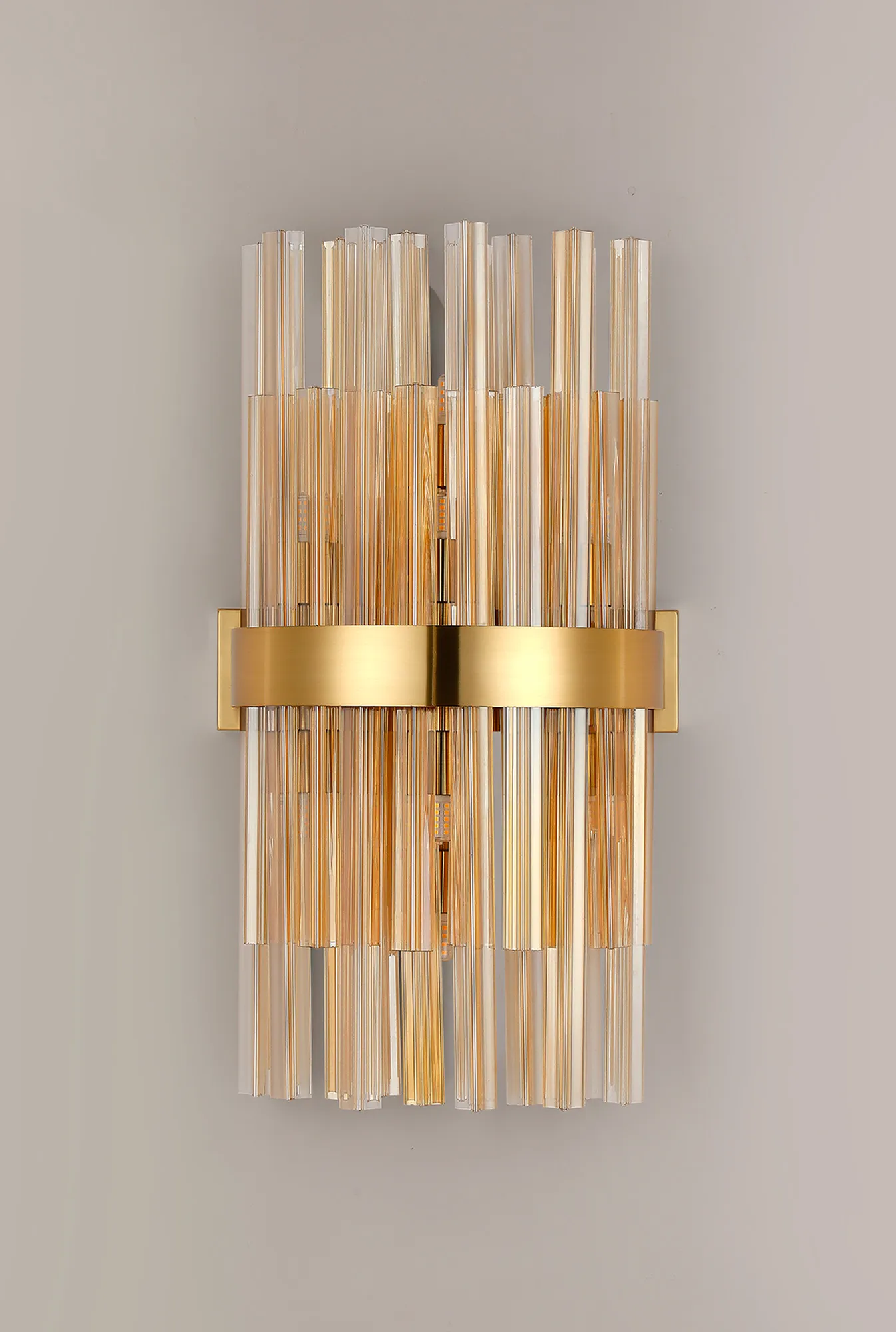Brant offers a wide variety of frame and glass colour combinations. Of the three frame colours; satin black, polished nickel and brass, there are an equal number of glass to choose from; clear, smoked or amber. One of the most unique selling points of this collection is the dual application of how the mixture of long and short glass are fitted to the lights, giving two visual options.