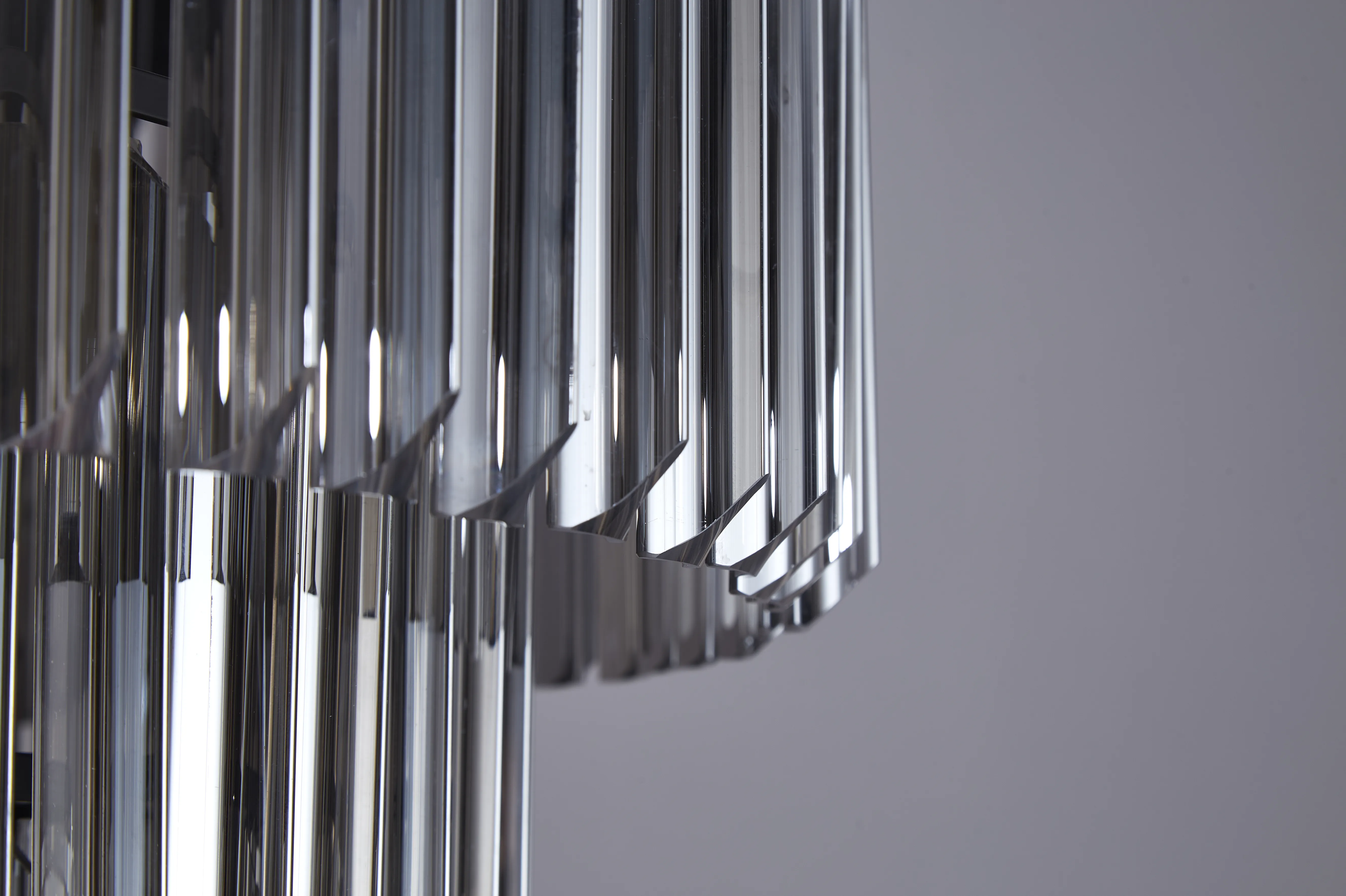 The popularity of the Barrytown collections initial release has been so overwhelming that the collection has now been extensively expanded to meet a wider range of specification needs. This contemporary design which originally combined a traditional brass finish with clear sculptured glass pieces, now offers a polished nickel or matt black finish with either clear, cognac or smoked glass. The long angular shape of the glass which are in a tiered form, can now be found on larger more dramatic designs including a five tier and rectangular pendant to name only a few. Barrytown has a traditional regal effect composed with modern materials to create a range suitable for either a modern or more traditional room setting. The unique pyramid forms protruding from the frame provide an intriguing overall shape across this comprehensive collection.