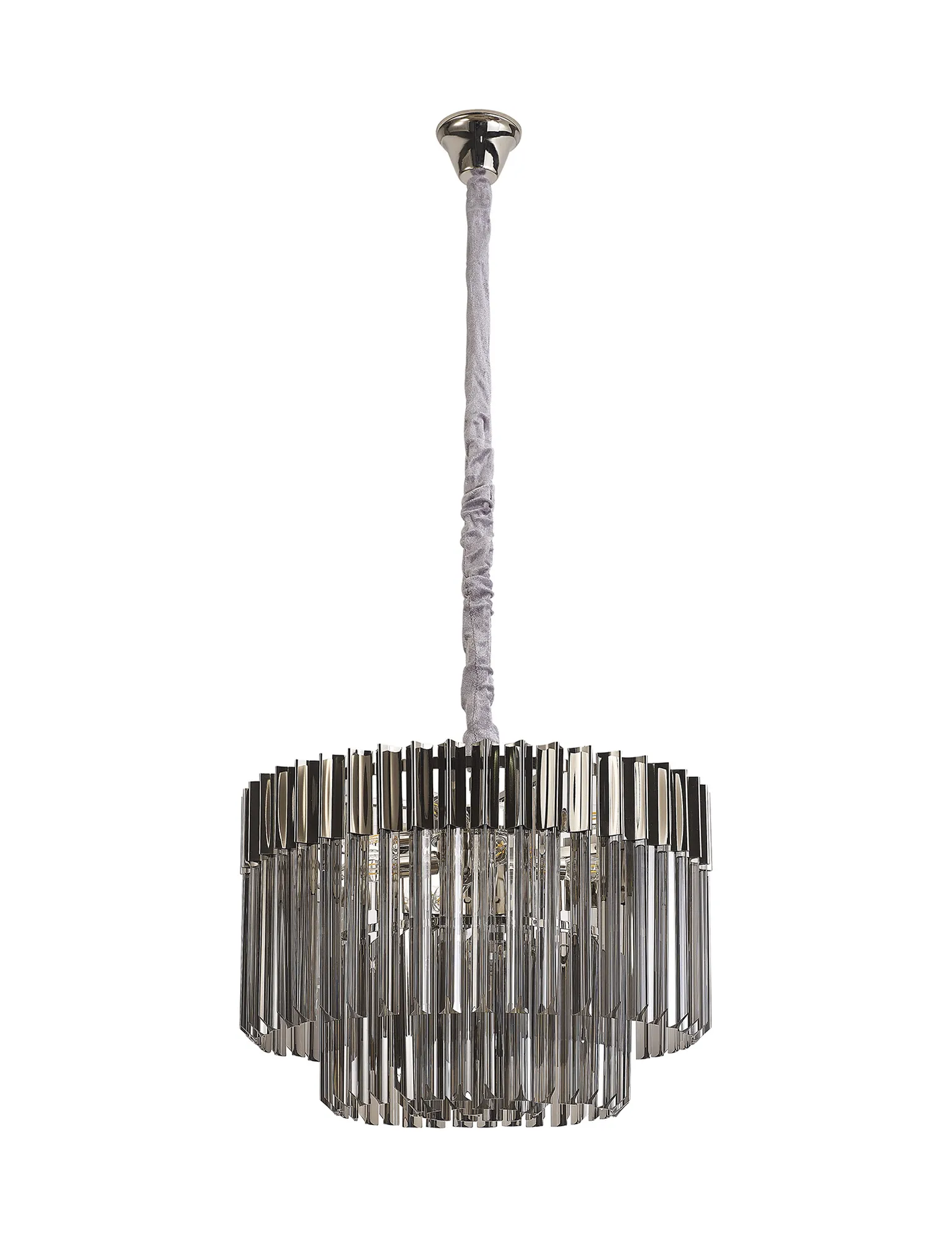Barrytown 200 x 40cm Linear Pendant With Bell Cup, 10 Light E14, Polished Nickel/Smoked Sculpted Glass, Item Weight: 48kg