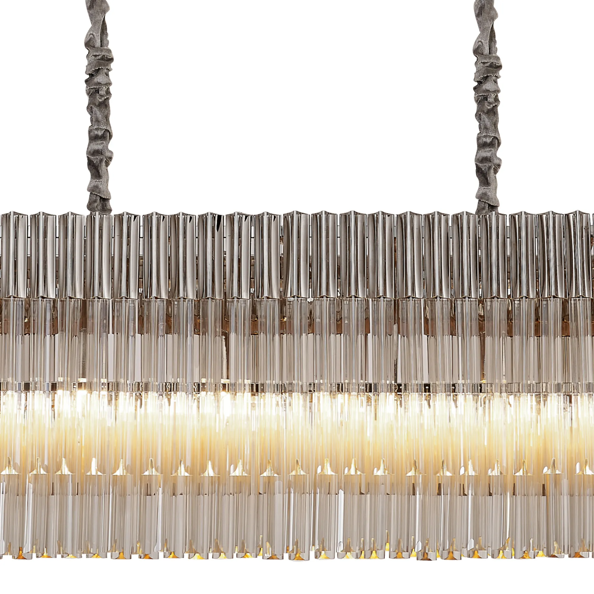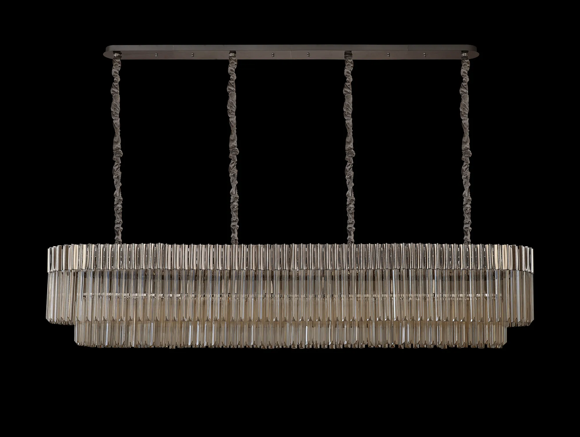 The popularity of the Barrytown collections initial release has been so overwhelming that the collection has now been extensively expanded to meet a wider range of specification needs. This contemporary design which originally combined a traditional brass finish with clear sculptured glass pieces, now offers a polished nickel or matt black finish with either clear, cognac or smoked glass. The long angular shape of the glass which are in a tiered form, can now be found on larger more dramatic designs including a five tier and rectangular pendant to name only a few. Barrytown has a traditional regal effect composed with modern materials to create a range suitable for either a modern or more traditional room setting. The unique pyramid forms protruding from the frame provide an intriguing overall shape across this comprehensive collection.