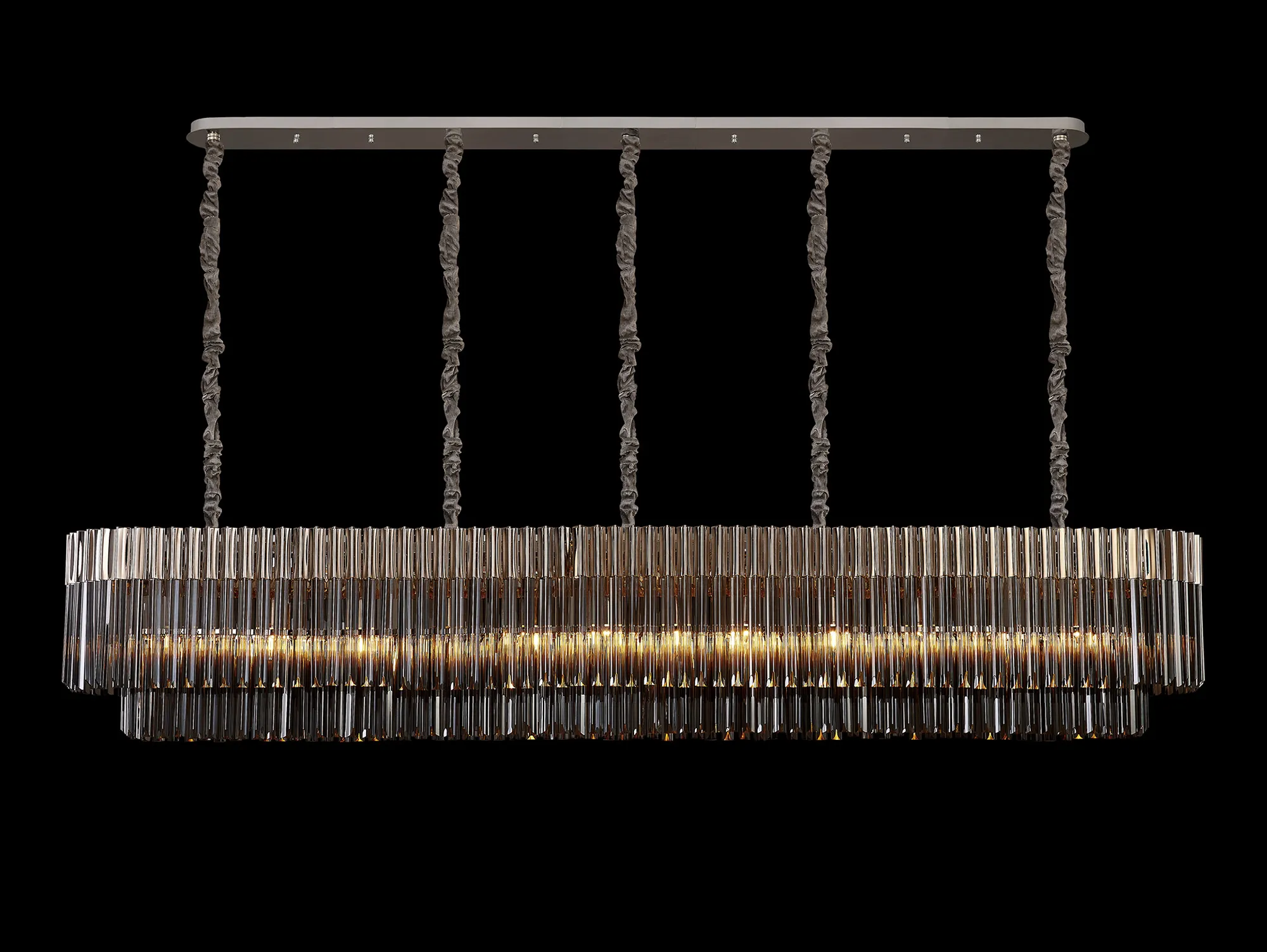 Barrytown 60cm Pendant Round 8 x E14, Polished Nickel/Smoke Sculpted Glass (18kg)