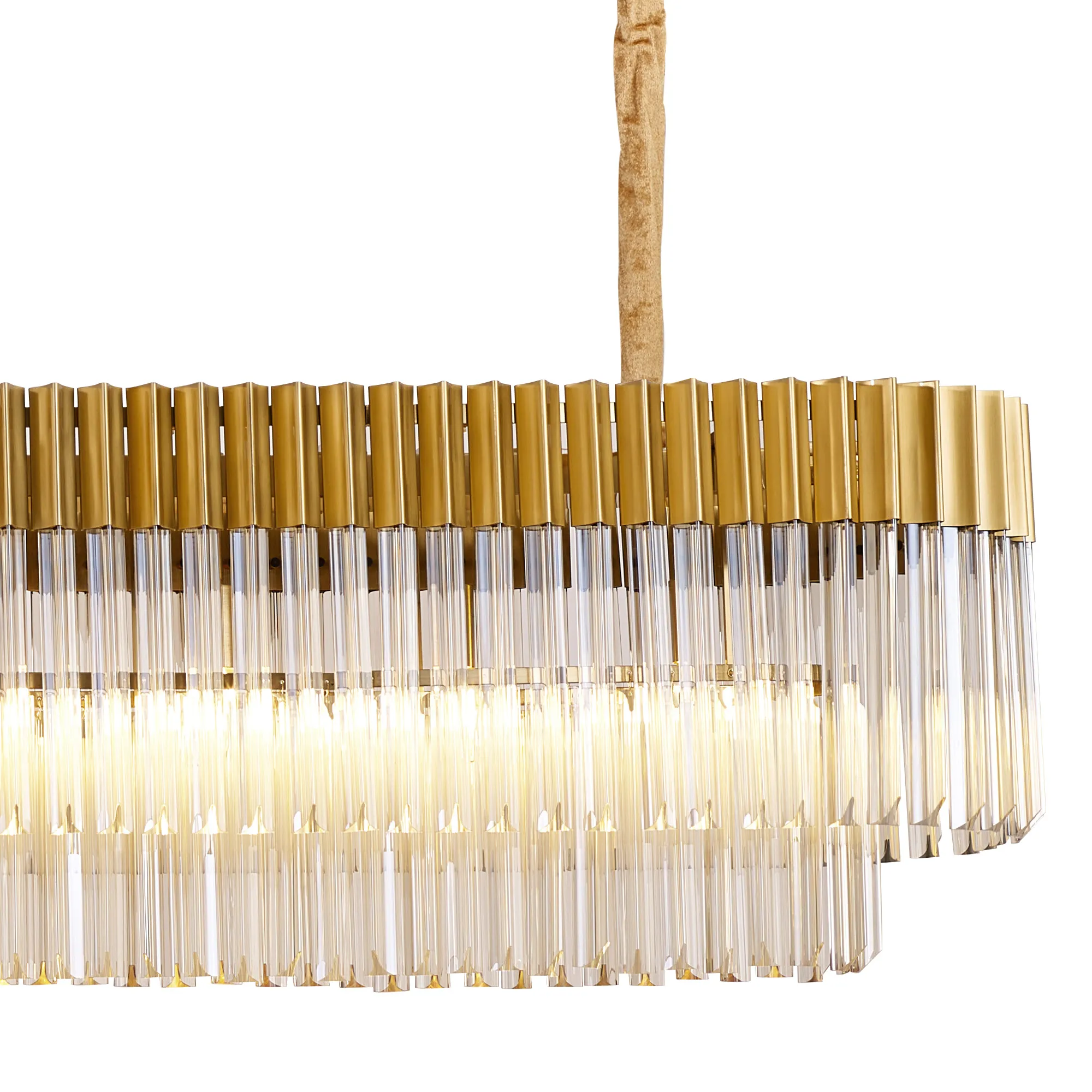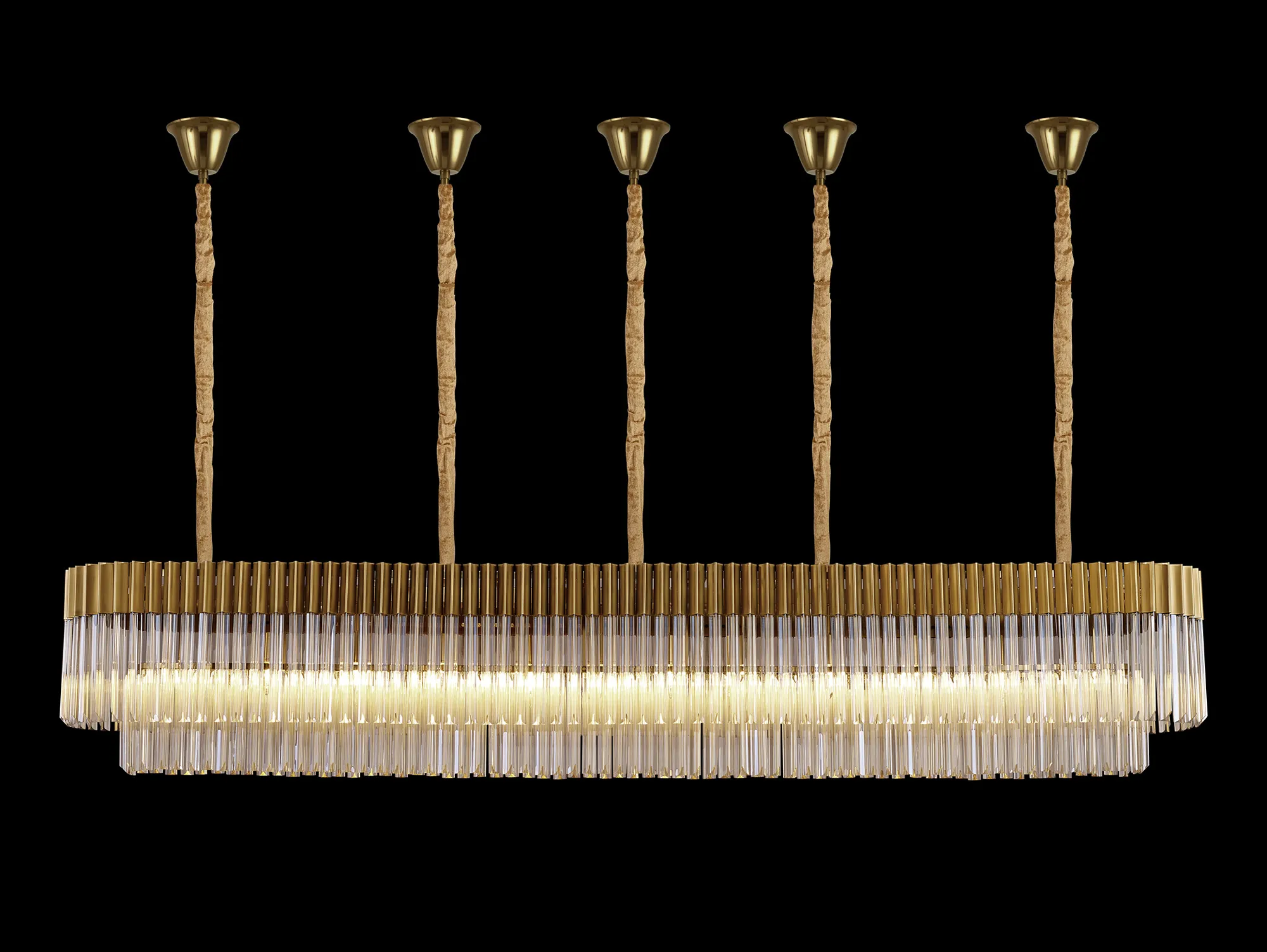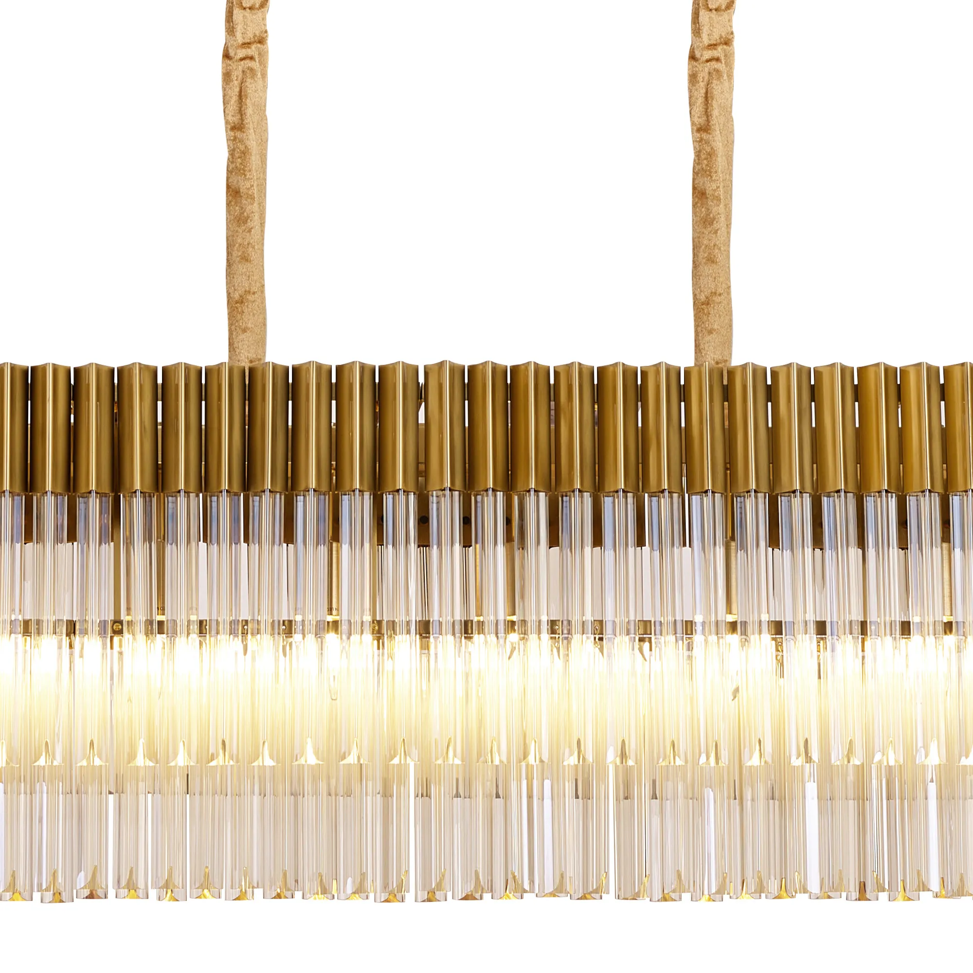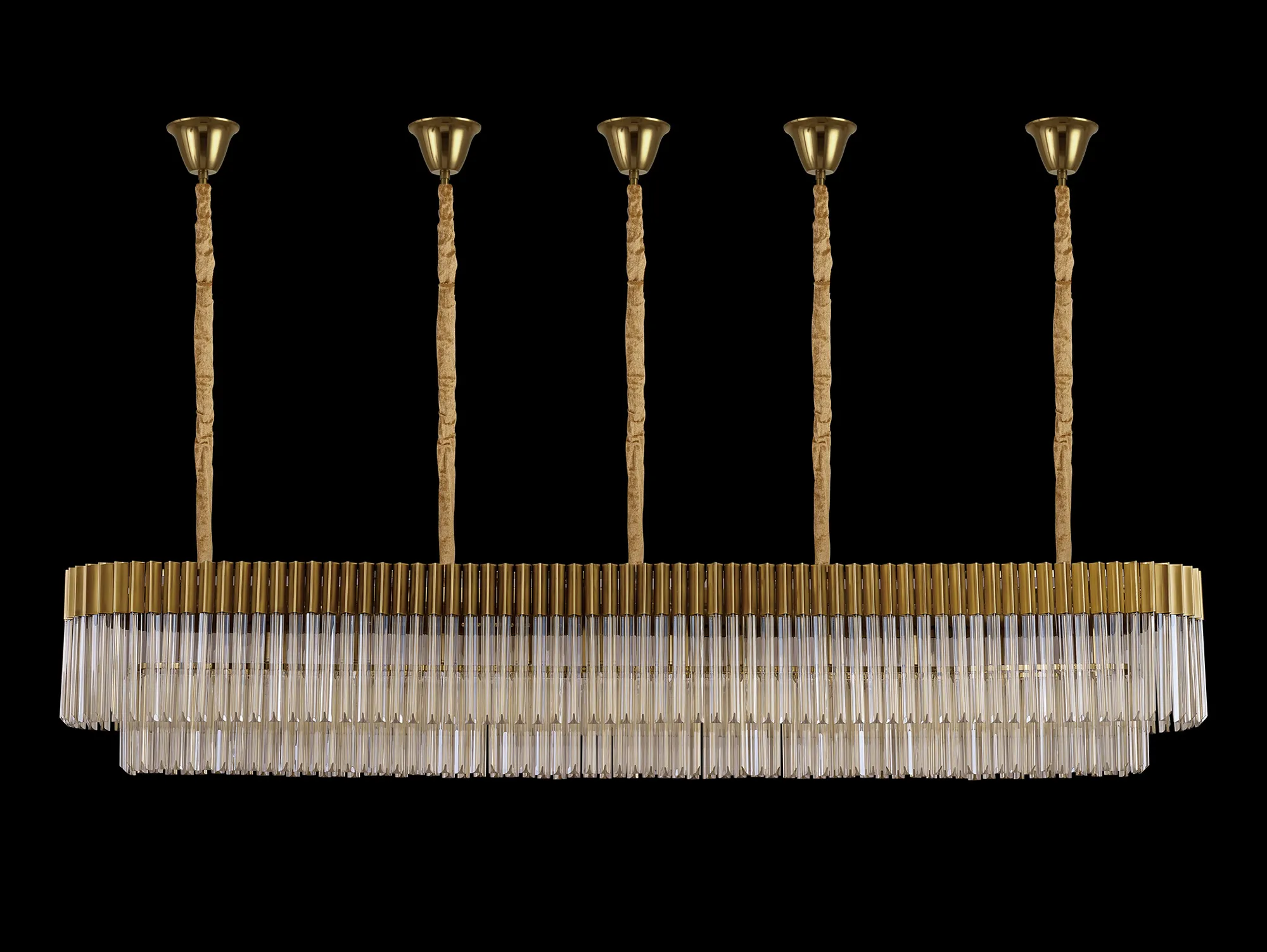 Barrytown 250 x 40cm Linear Pendant With Bell Cup, 13 Light E14, Brass/Cognac Sculpted Glass