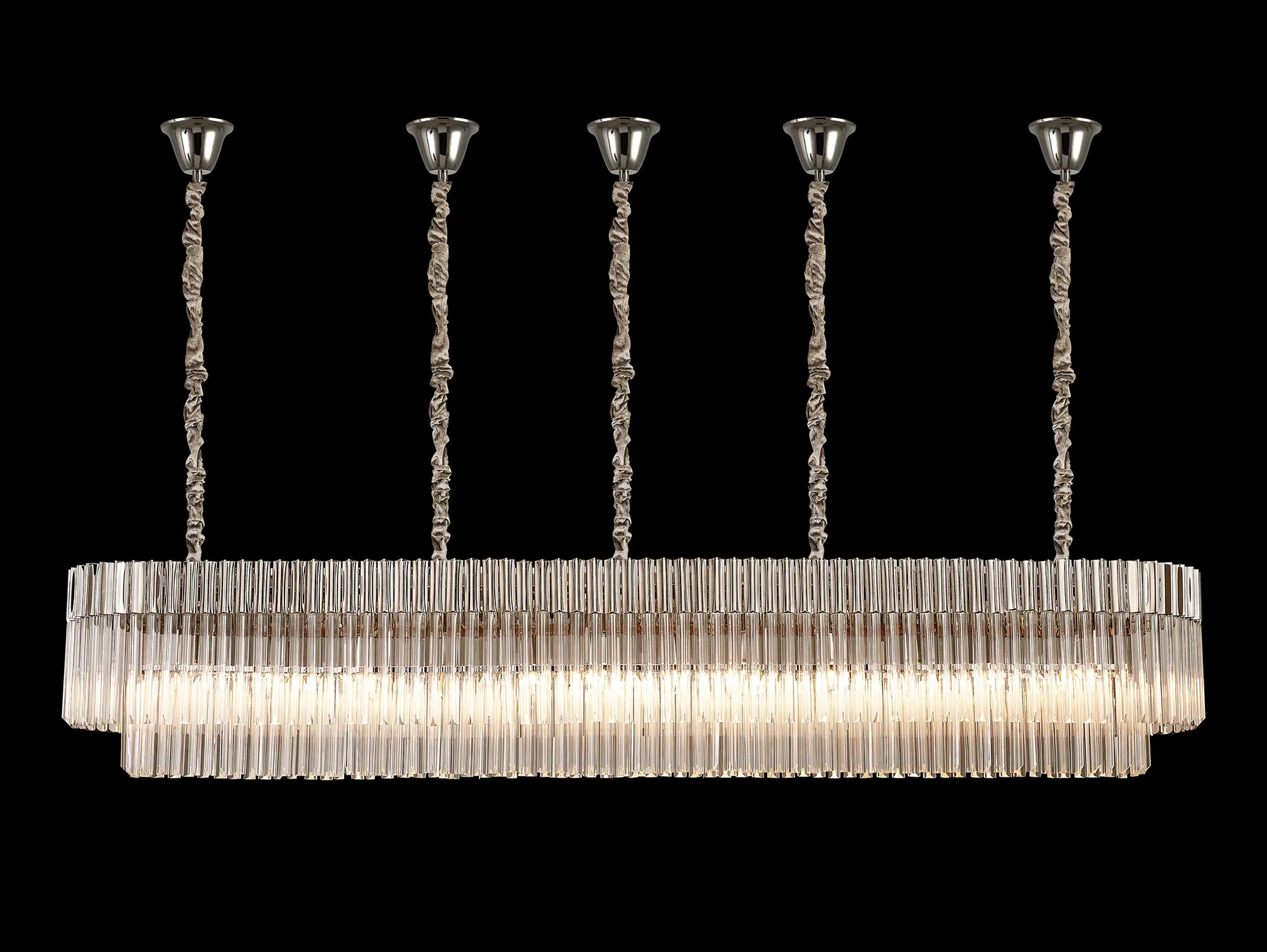 Barrytown 250 x 40cm Linear Pendant With Bell Cup, 13 Light E14, Polished Nickel/Clear Sculpted Glass