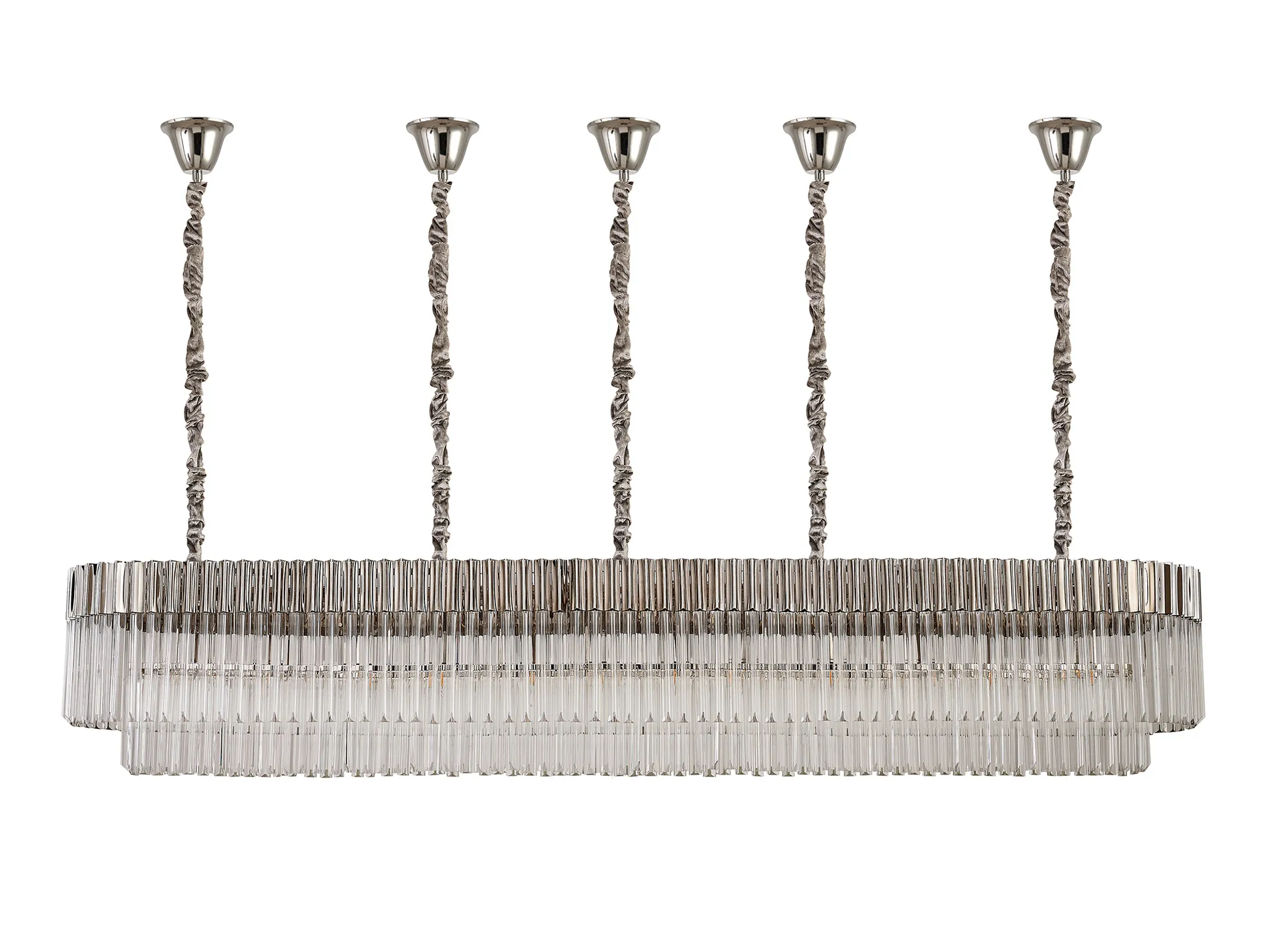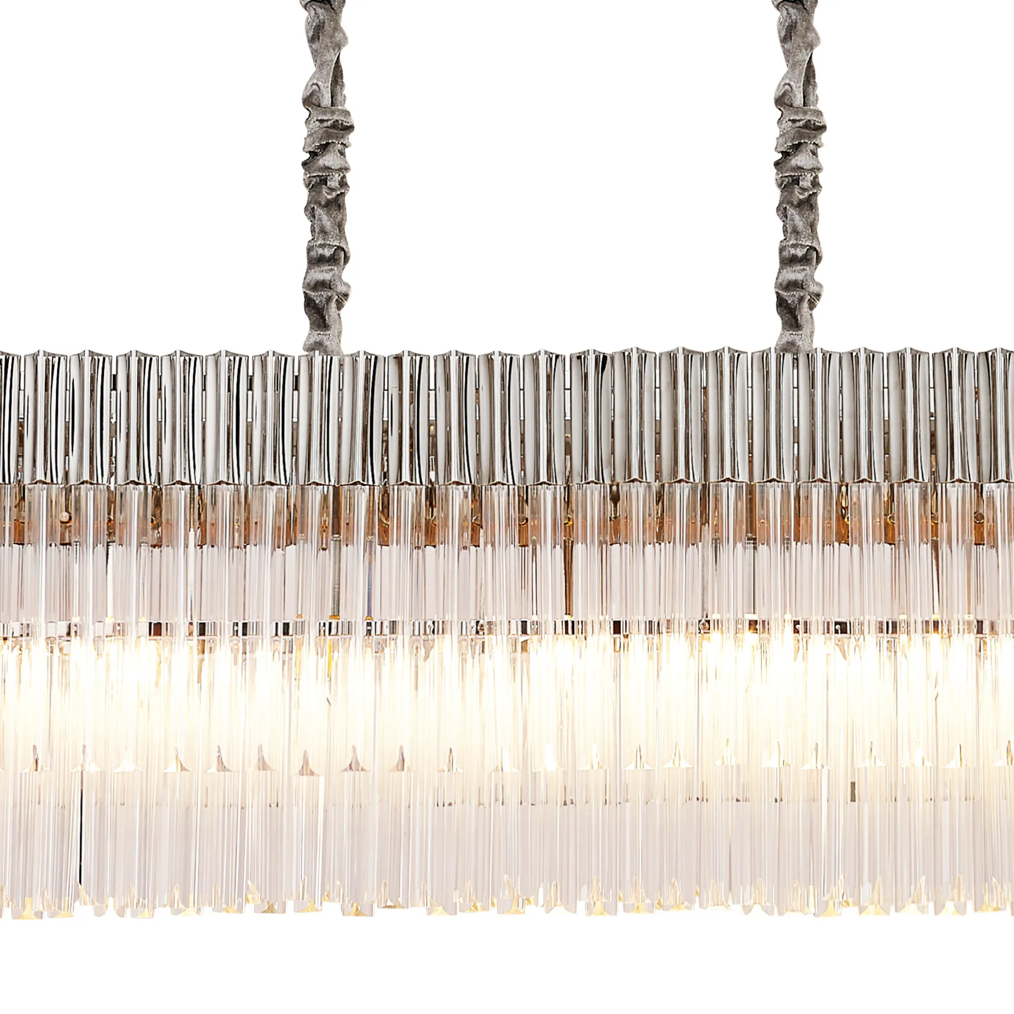 Barrytown 250 x 40cm Linear Pendant With Bell Cup, 13 Light E14, Polished Nickel/Clear Sculpted Glass, Item Weight: 61kg