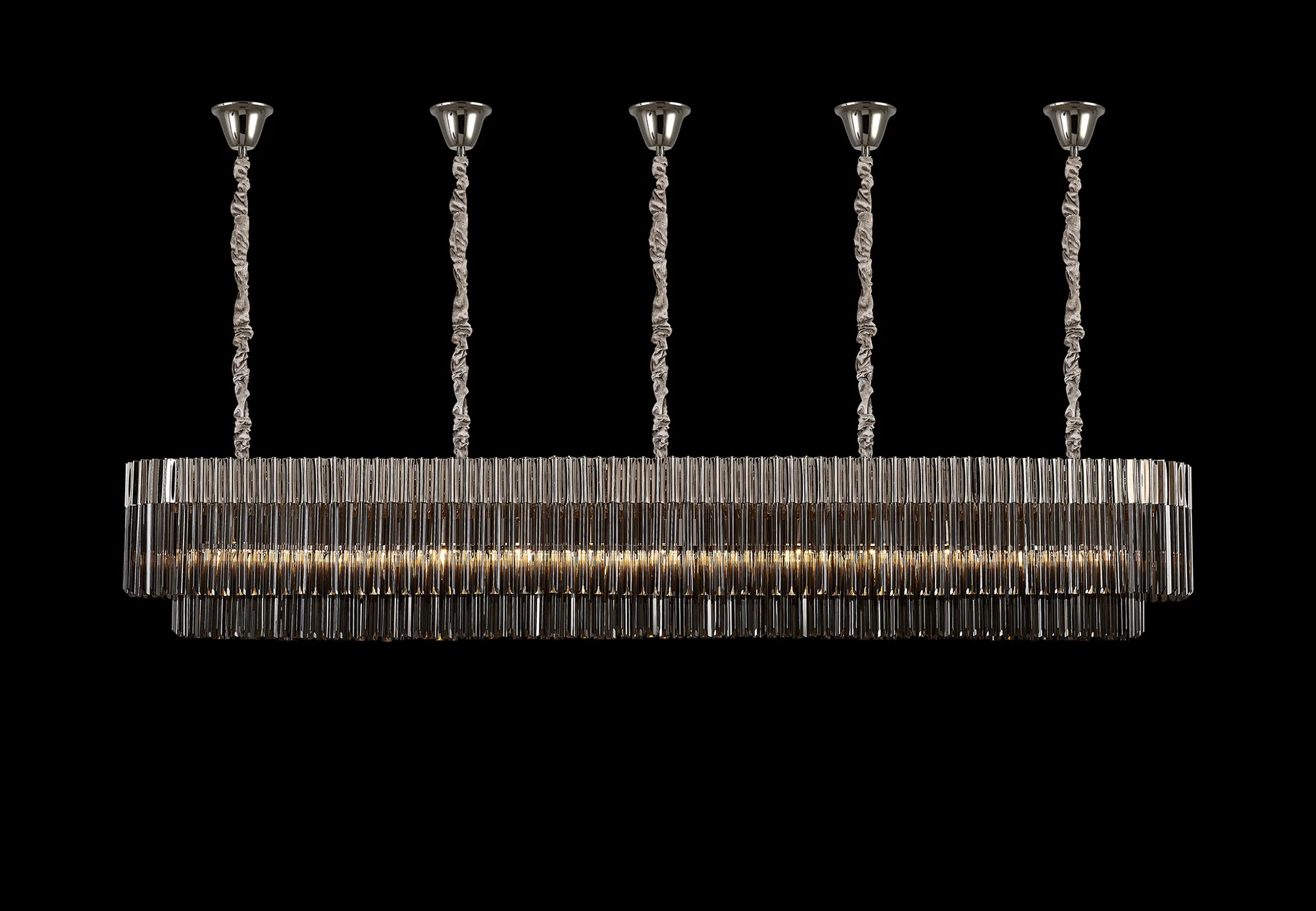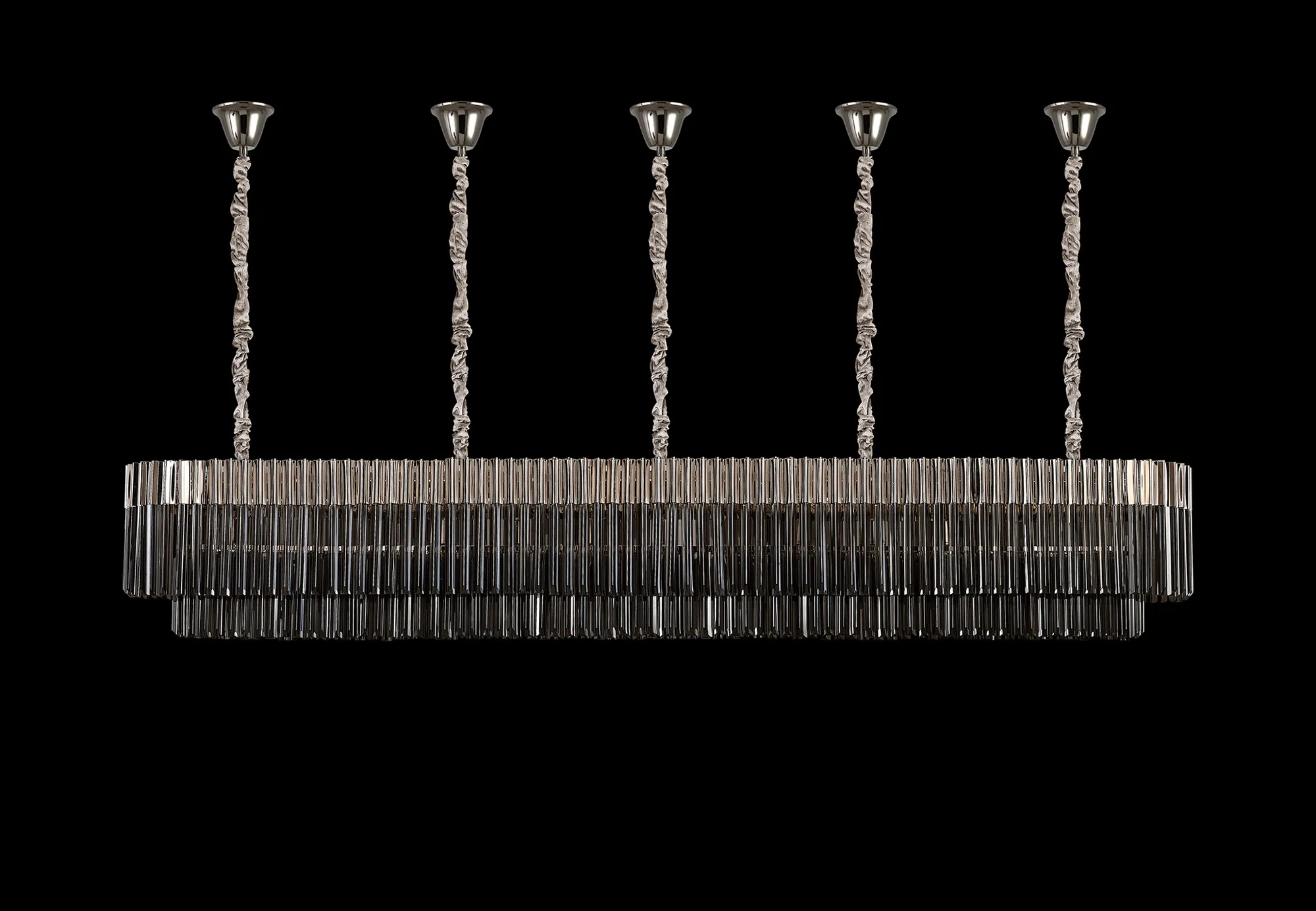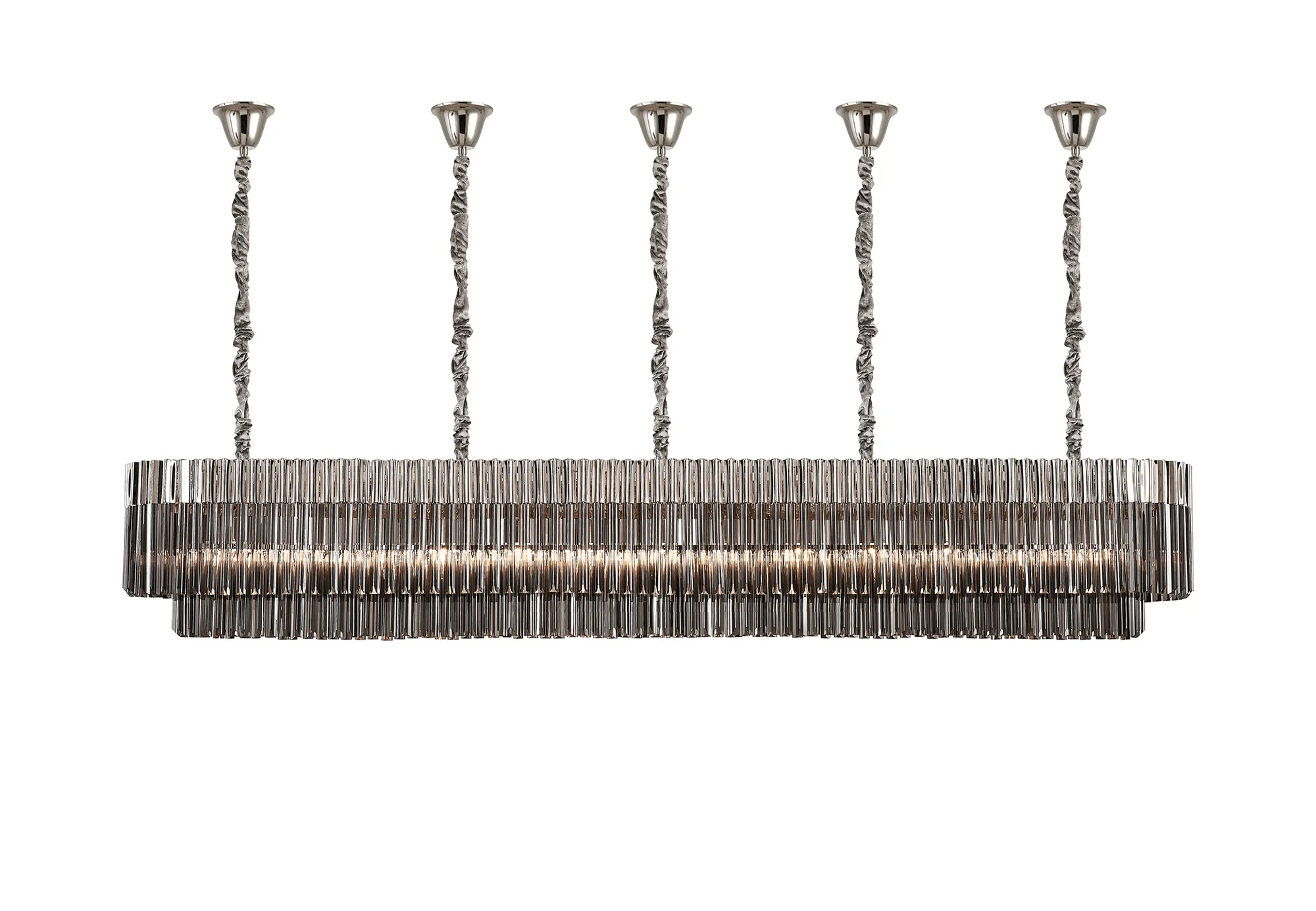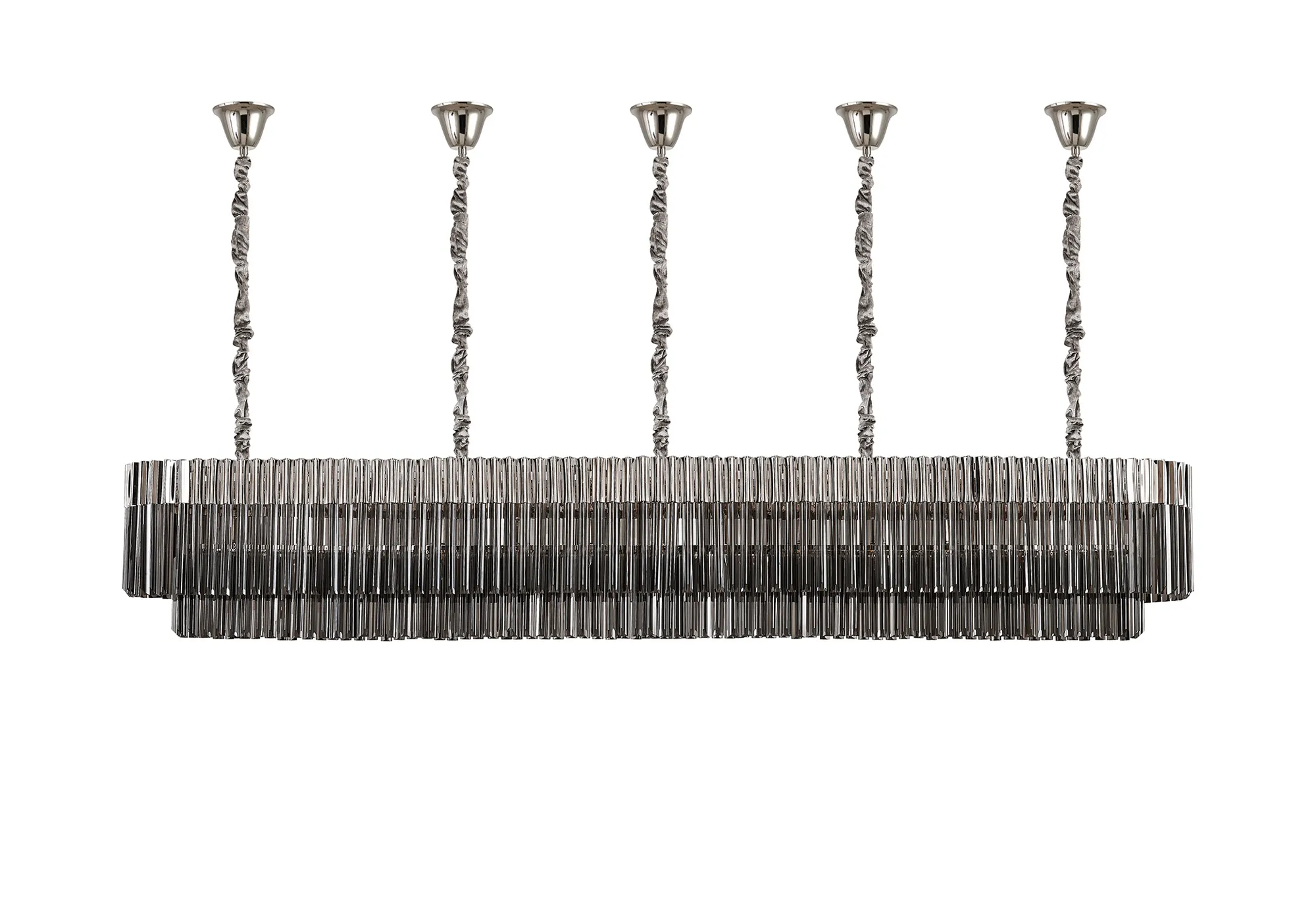 Barrytown 60cm Pendant Round 8 x E14, Polished Nickel/Smoke Sculpted Glass (18kg)