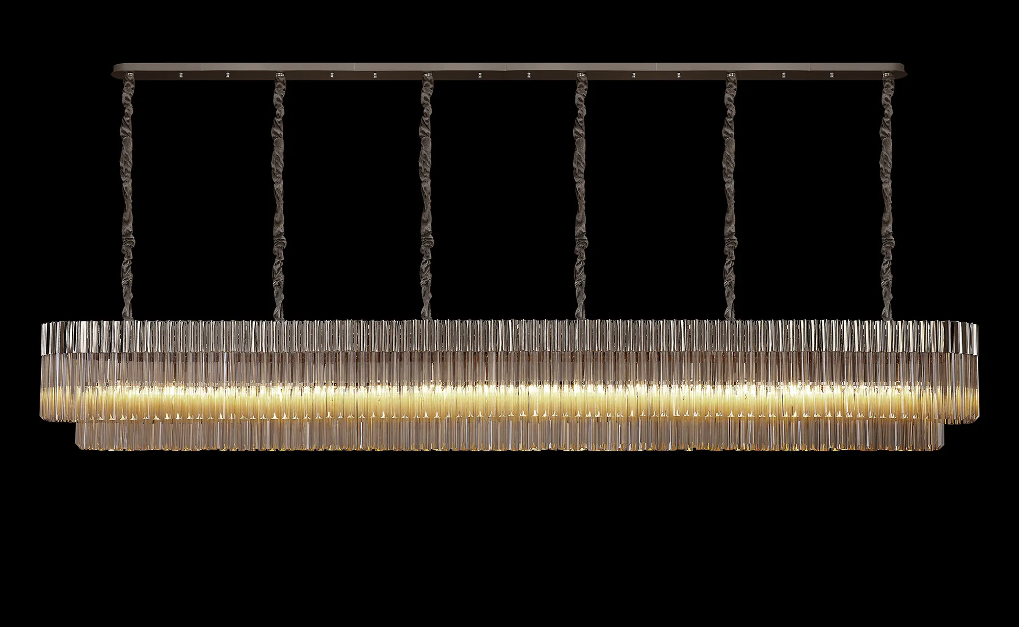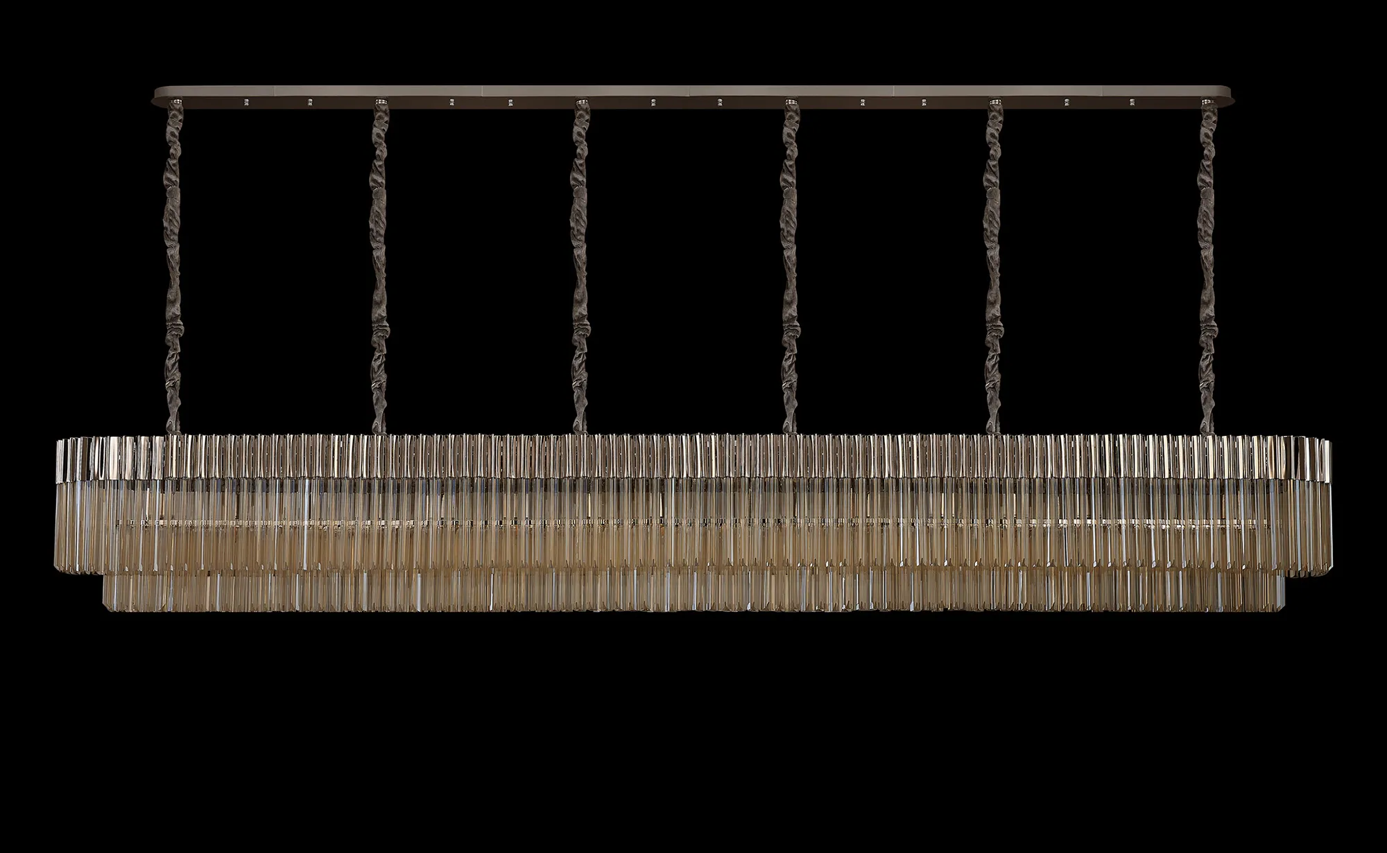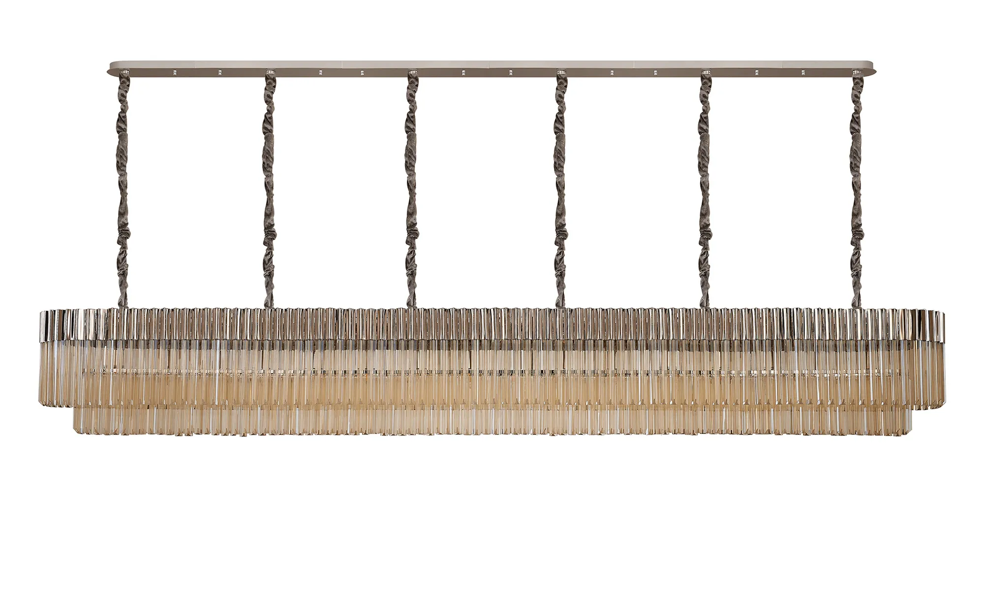 The popularity of the Barrytown collections initial release has been so overwhelming that the collection has now been extensively expanded to meet a wider range of specification needs. This contemporary design which originally combined a traditional brass finish with clear sculptured glass pieces, now offers a polished nickel or matt black finish with either clear, cognac or smoked glass. The long angular shape of the glass which are in a tiered form, can now be found on larger more dramatic designs including a five tier and rectangular pendant to name only a few. Barrytown has a traditional regal effect composed with modern materials to create a range suitable for either a modern or more traditional room setting. The unique pyramid forms protruding from the frame provide an intriguing overall shape across this comprehensive collection.