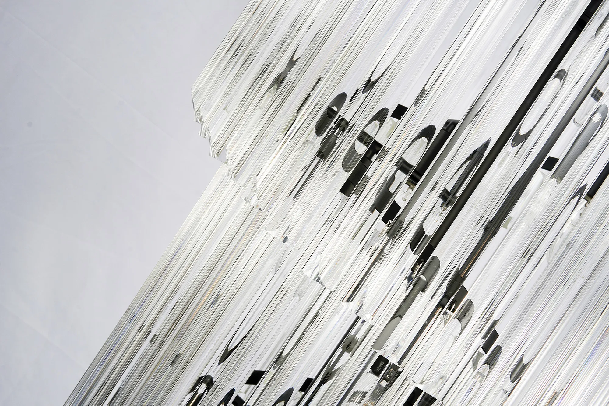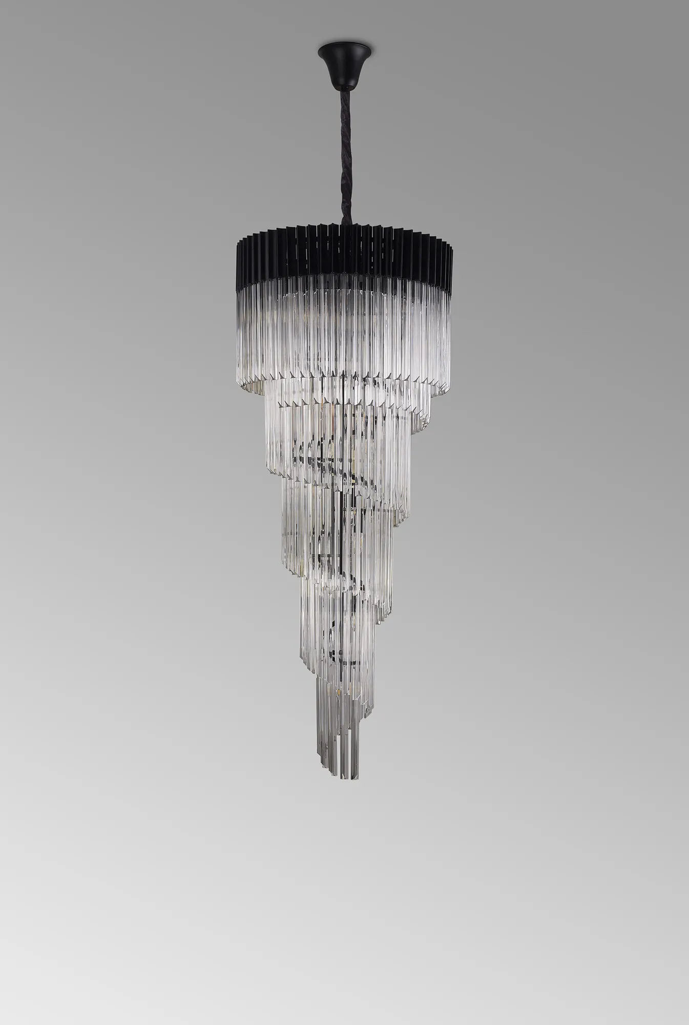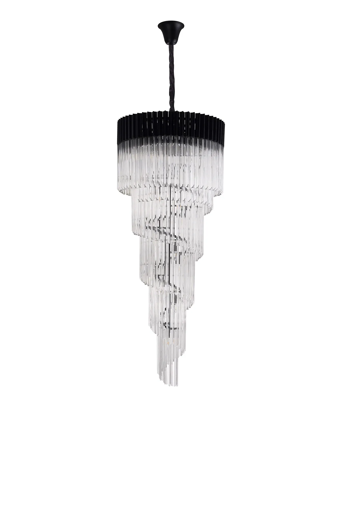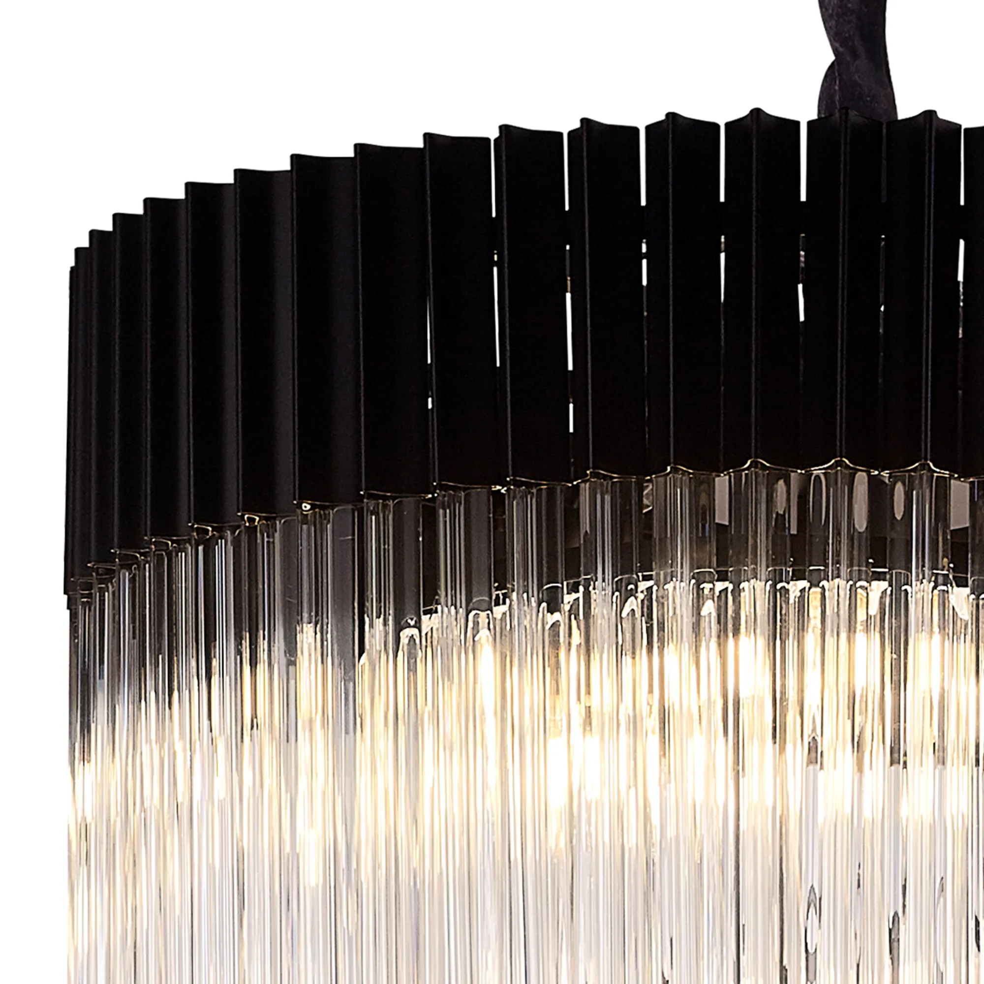 Barrytown 80cm Pendant Round 12 x E14, Matt Black/Clear Sculpted Glass (25.4kg)