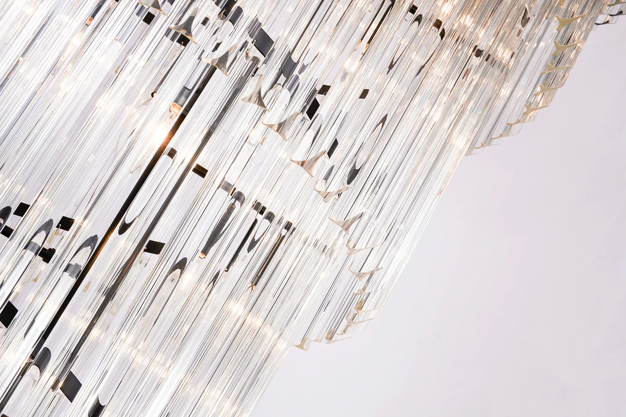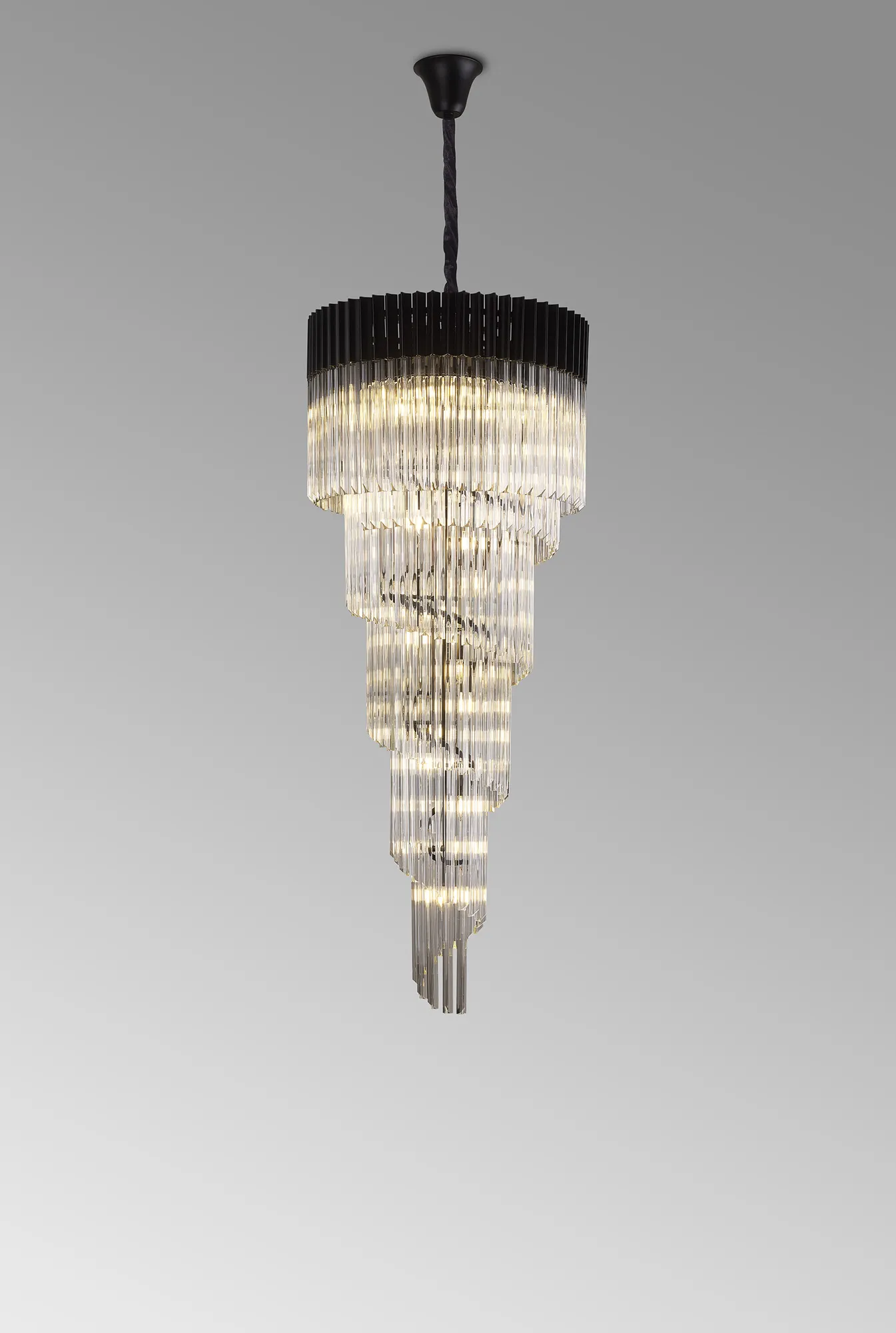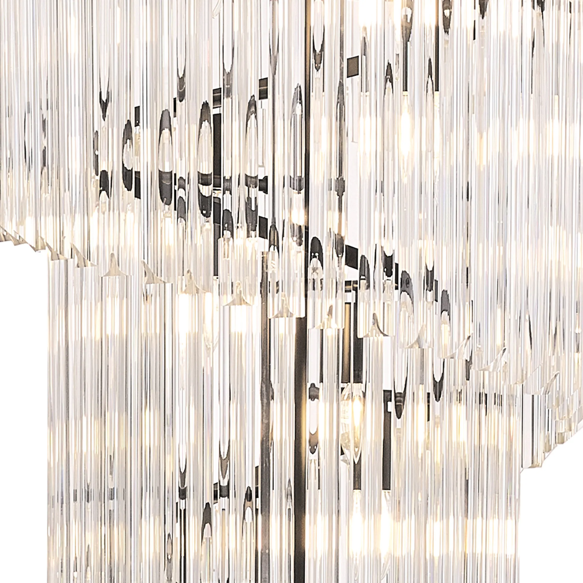 The popularity of the Barrytown collections initial release has been so overwhelming that the collection has now been extensively expanded to meet a wider range of specification needs. This contemporary design which originally combined a traditional brass finish with clear sculptured glass pieces, now offers a polished nickel or matt black finish with either clear, cognac or smoked glass. The long angular shape of the glass which are in a tiered form, can now be found on larger more dramatic designs including a five tier and rectangular pendant to name only a few. Barrytown has a traditional regal effect composed with modern materials to create a range suitable for either a modern or more traditional room setting. The unique pyramid forms protruding from the frame provide an intriguing overall shape across this comprehensive collection.