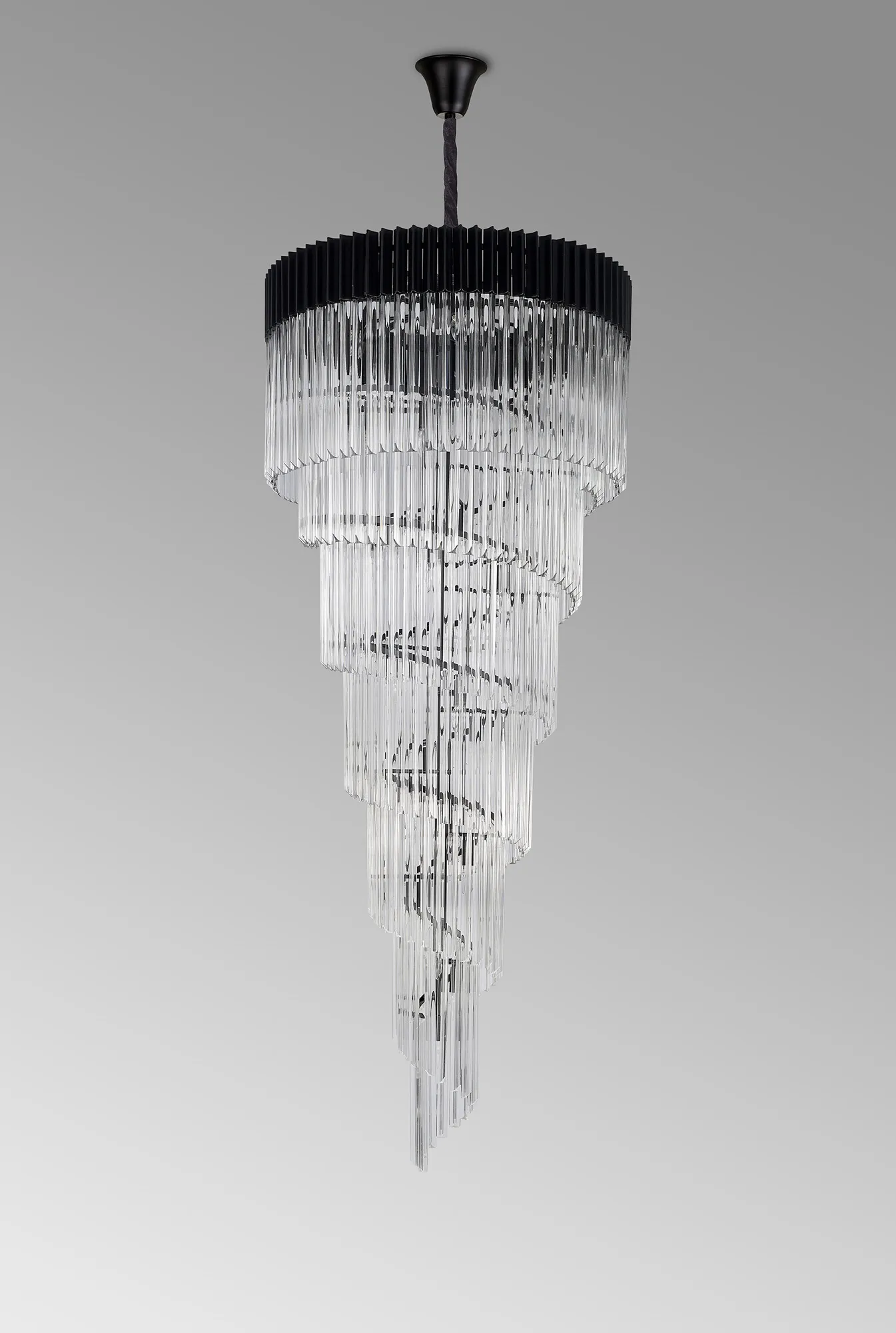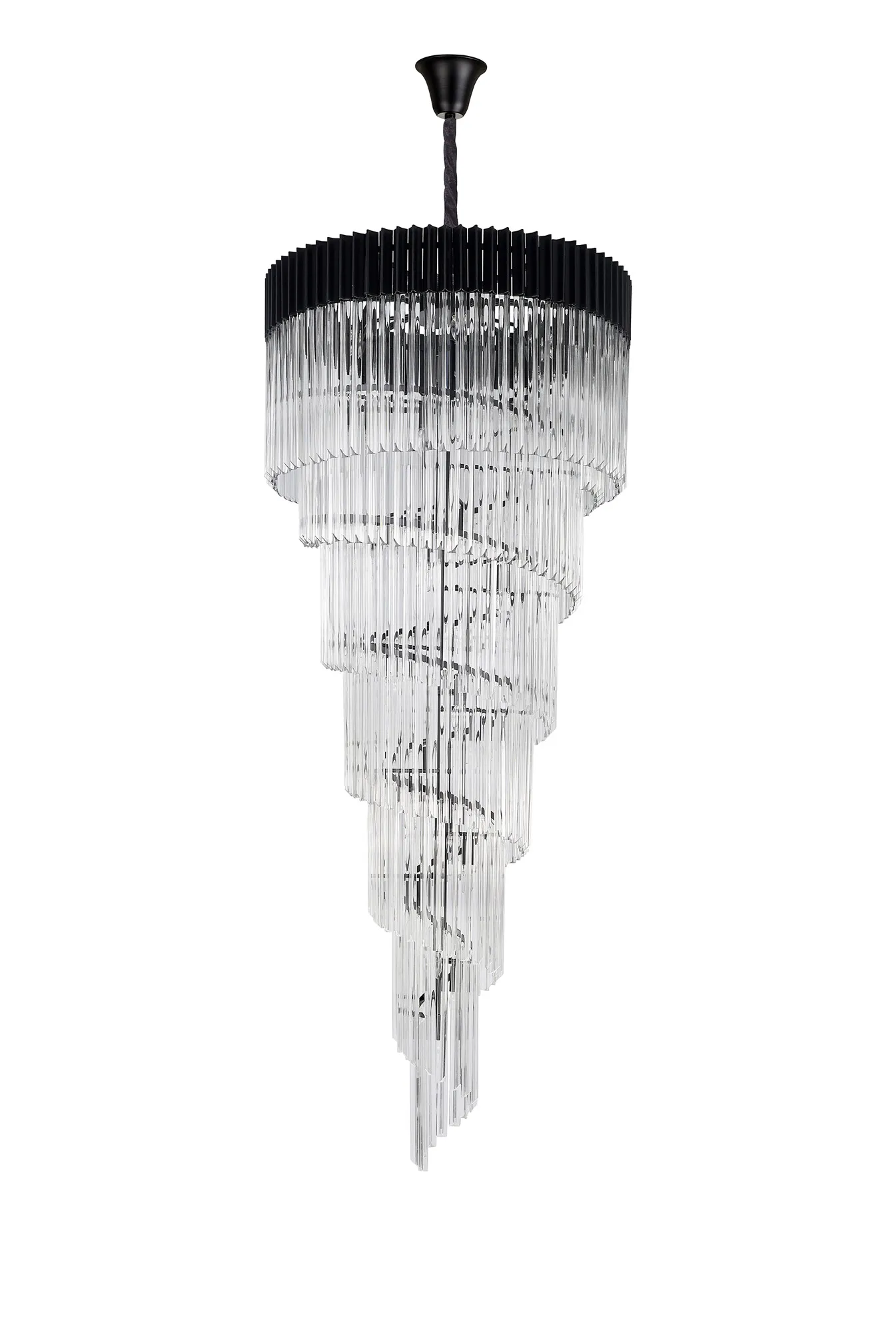 Barrytown 70cm Pendant Round 5 Layer Spiral 23 Light E14, Matt Black / Clear Sculpted Glass, Item Weight: 57kg