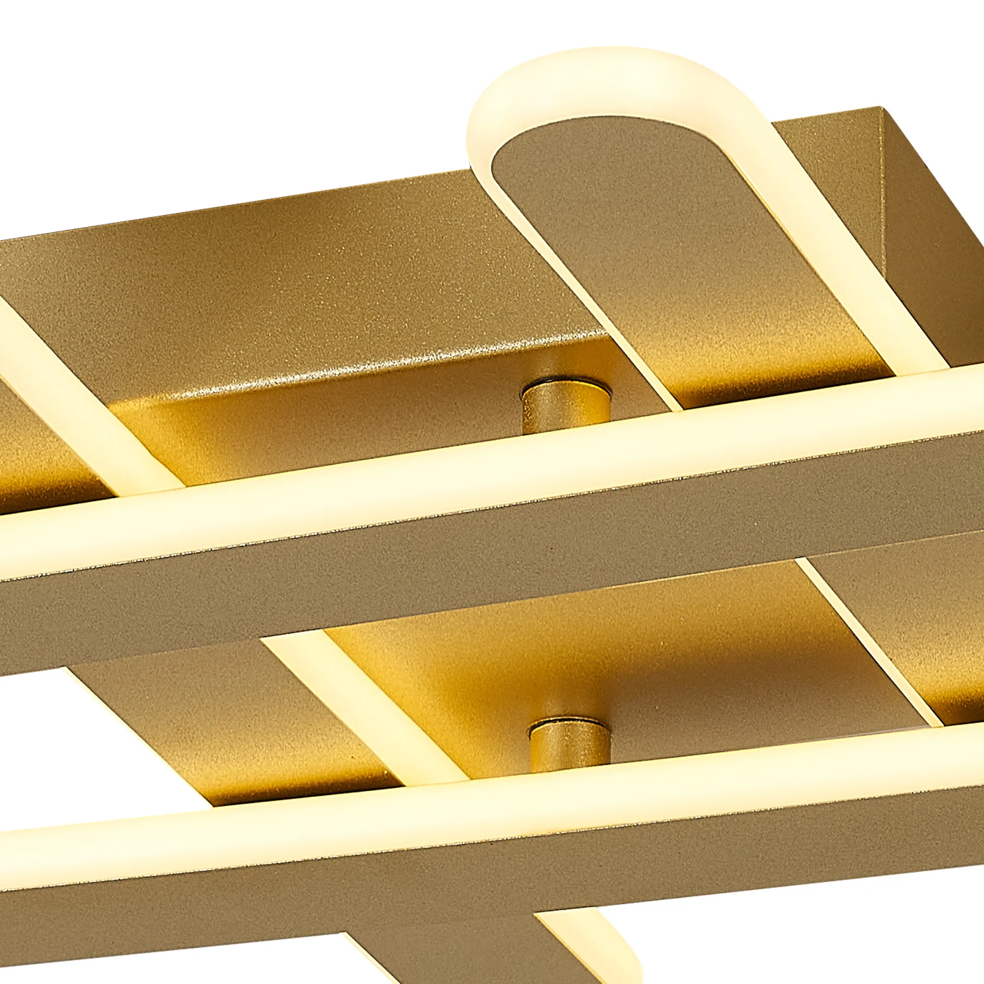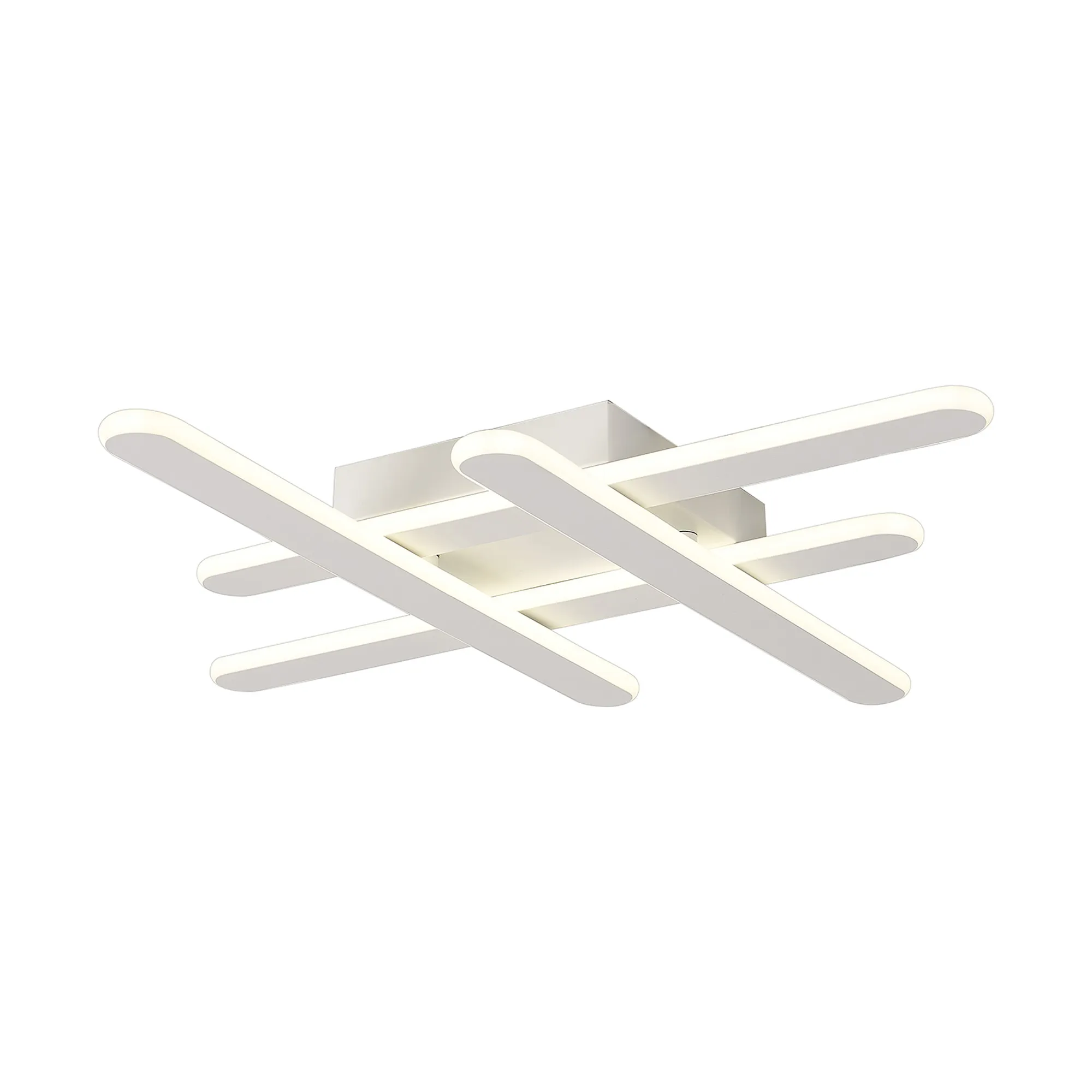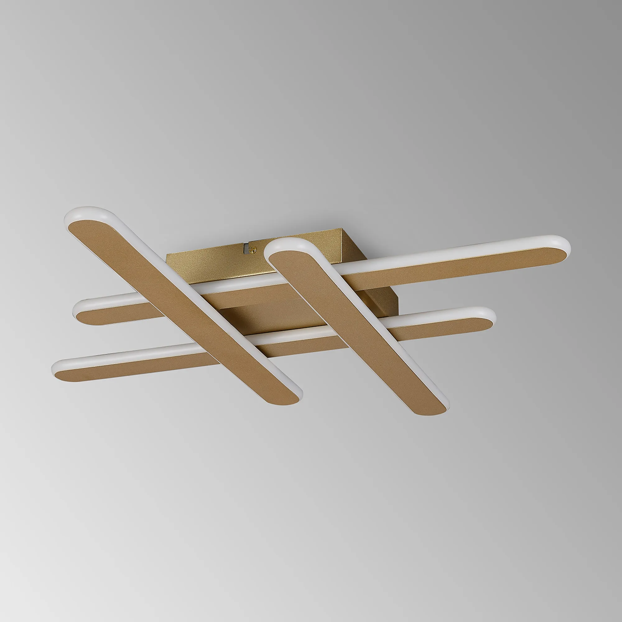 Available in four different sizes which increase in output as they increase in size, the Clarence LED wall lamps are slim line and understated. The narrow oval shaped diffuser has a central sand white or satin black metal plate which is slightly smaller to accommodate a halo of 4000K light, producing a serene effect. The sand gold finish has a 3000K colour temperature to better suit the warmth of the colour. A three-arm ceiling/wall light and criss cross ceiling light offer more intriguing shapes to complement these wall lamps.
