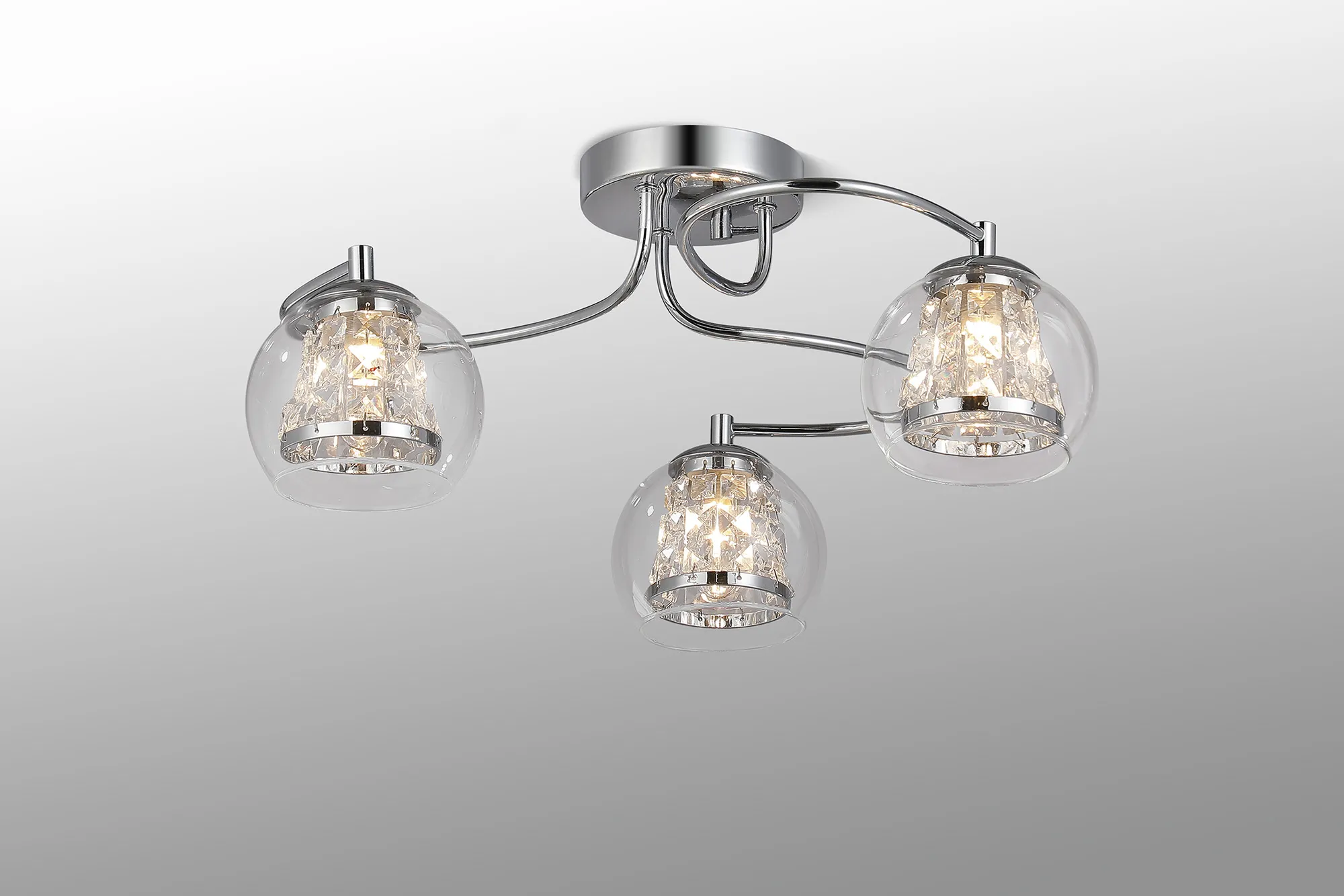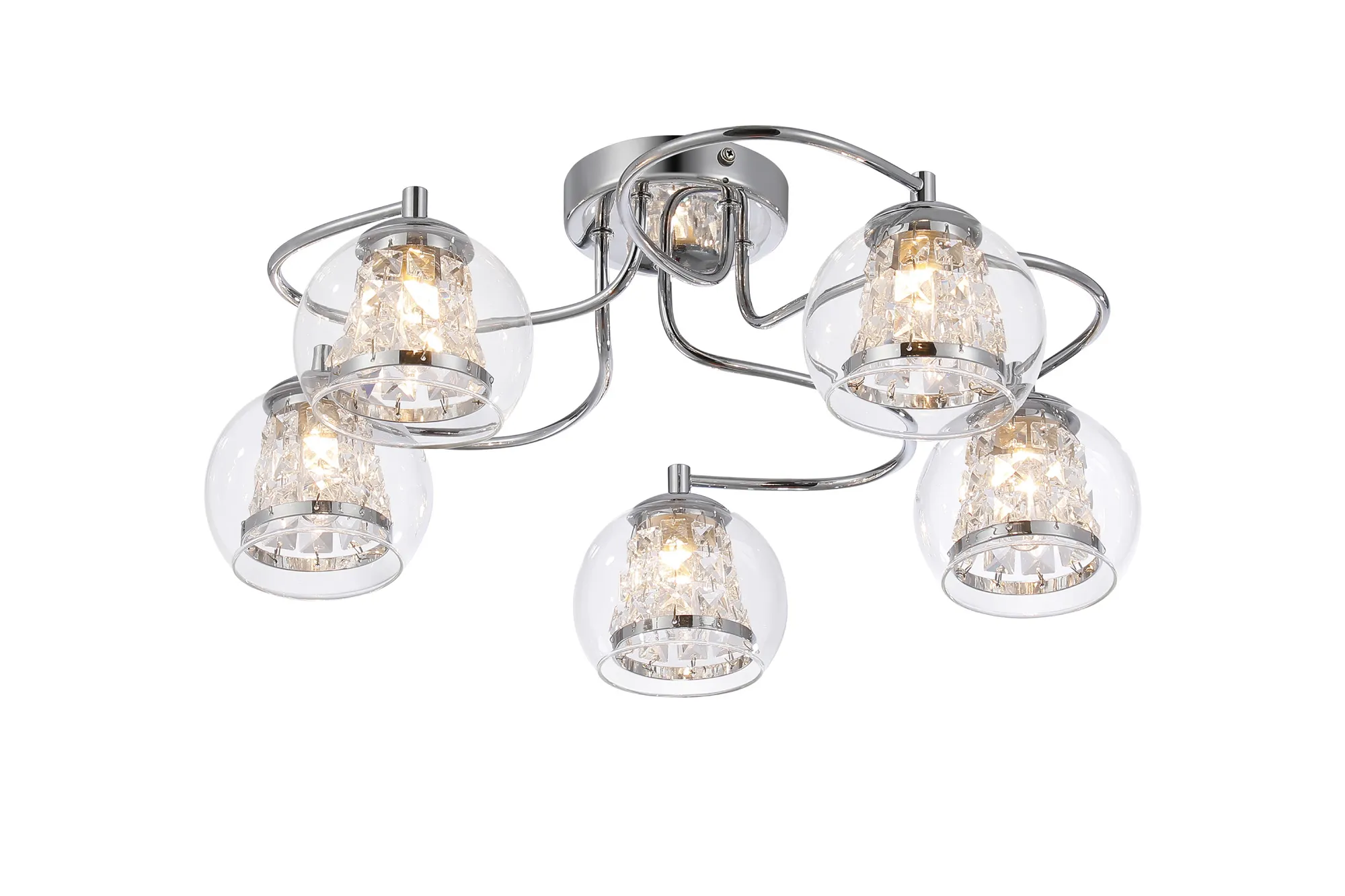 Cambridge Semi Ceiling, 5 x G9, IP44, Polished Chrome/Clear Glass/Clear Crystal