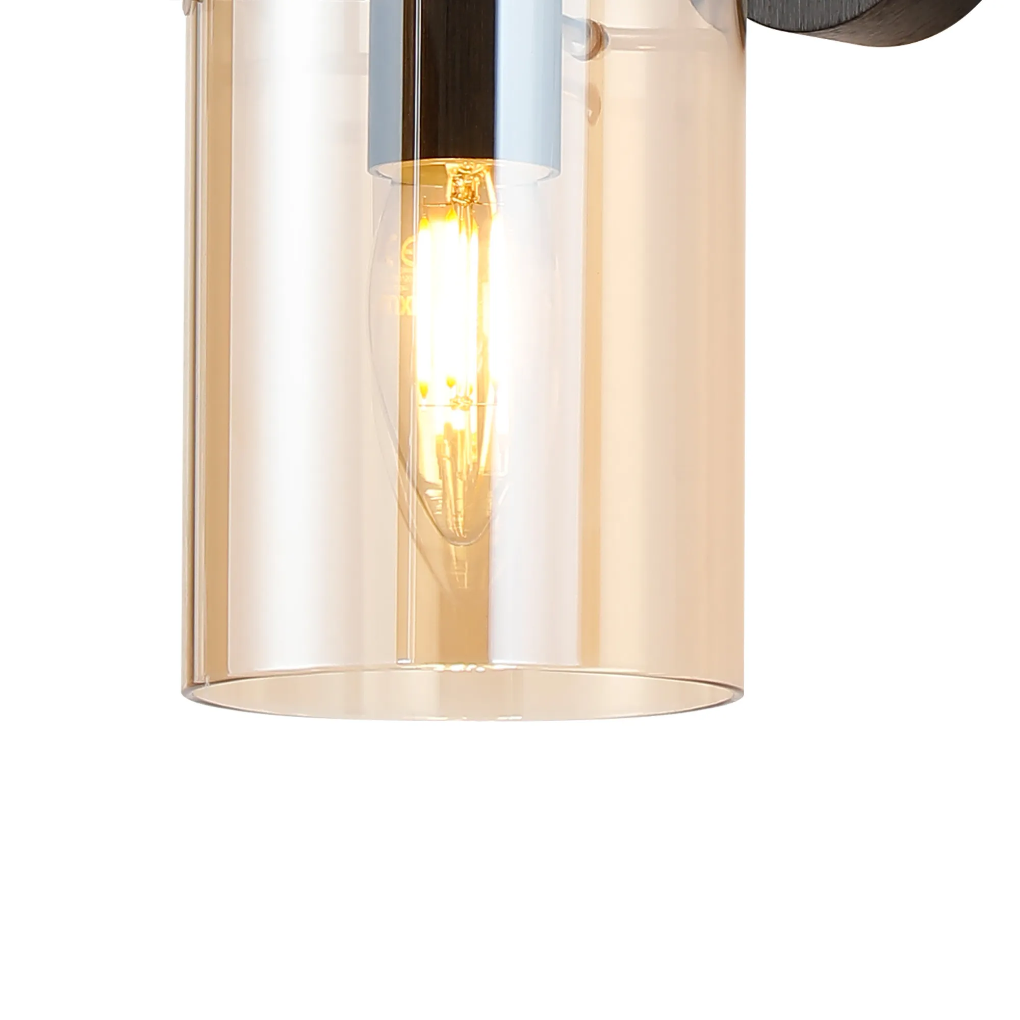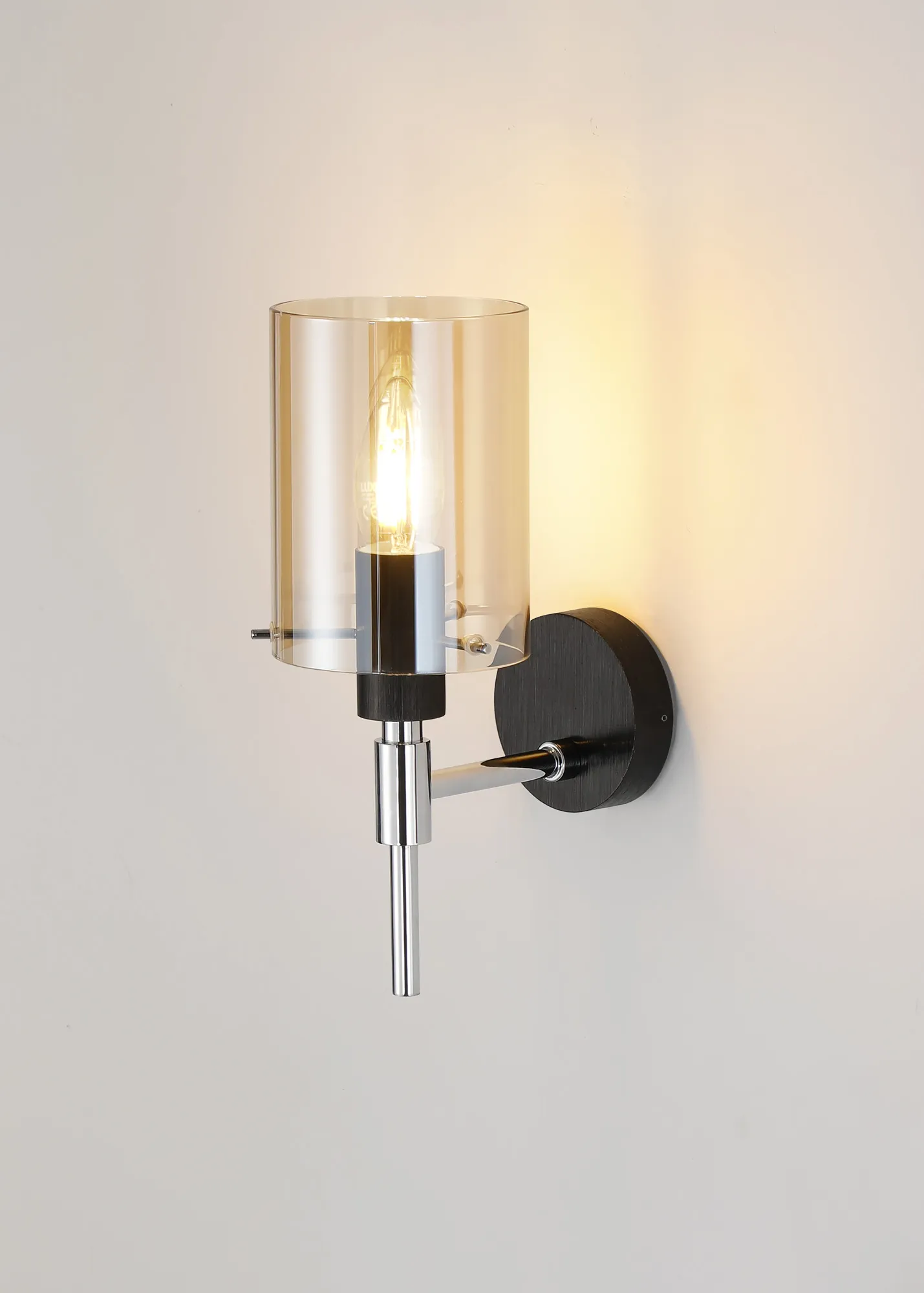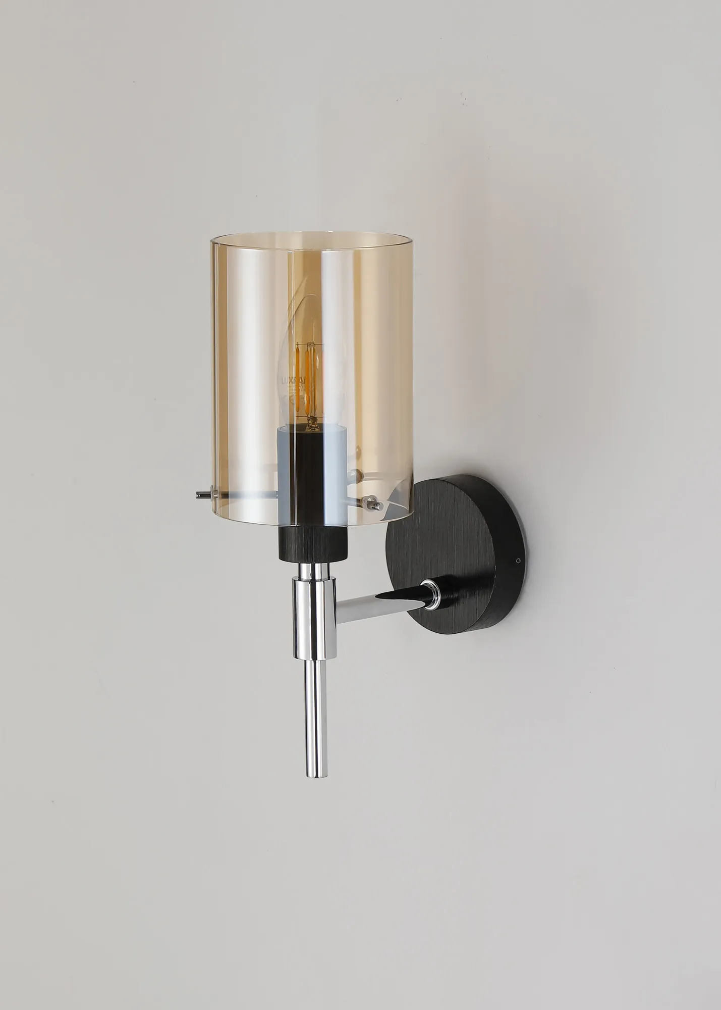 OTHER Cornwall Wall Lamp 1 Light IP44 Cylinder Glass Black/Polished Chrome/Amber