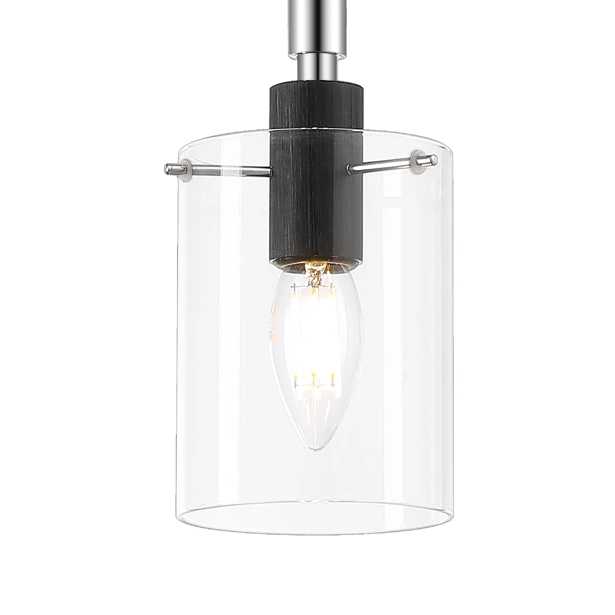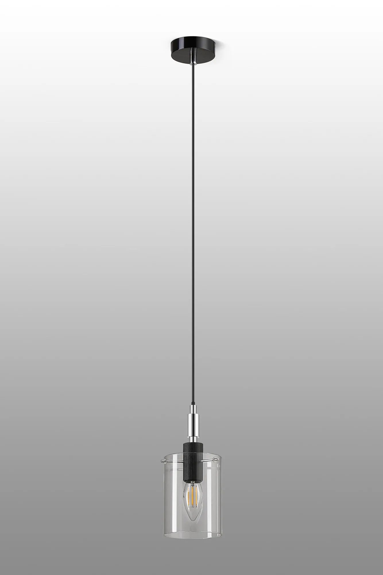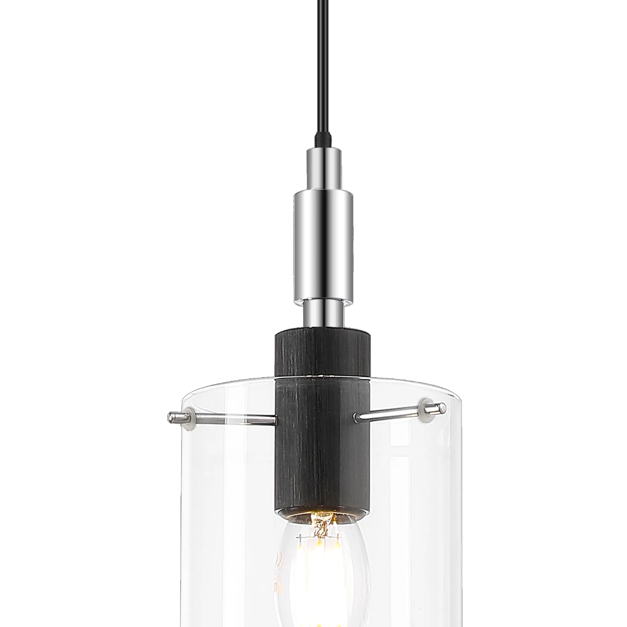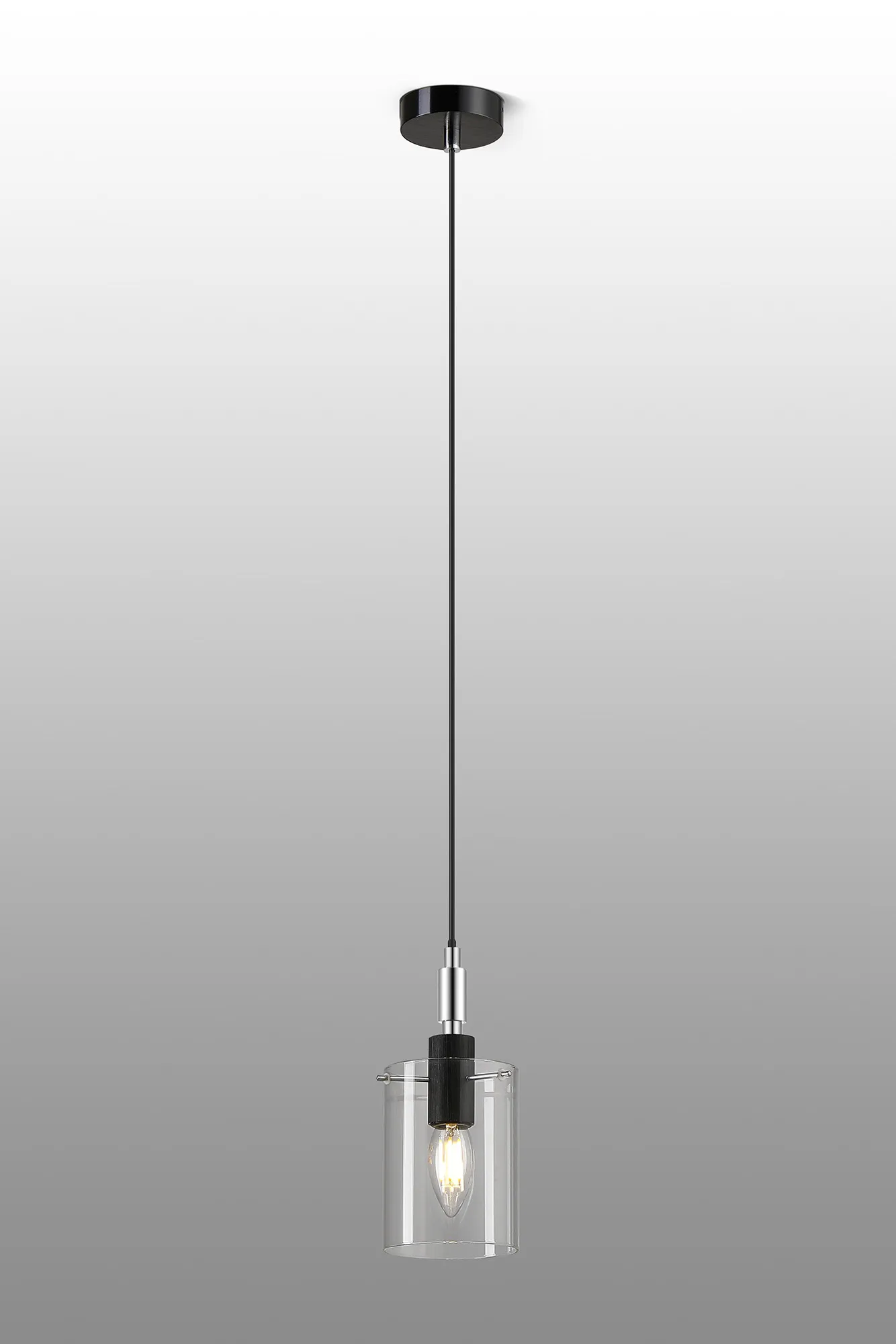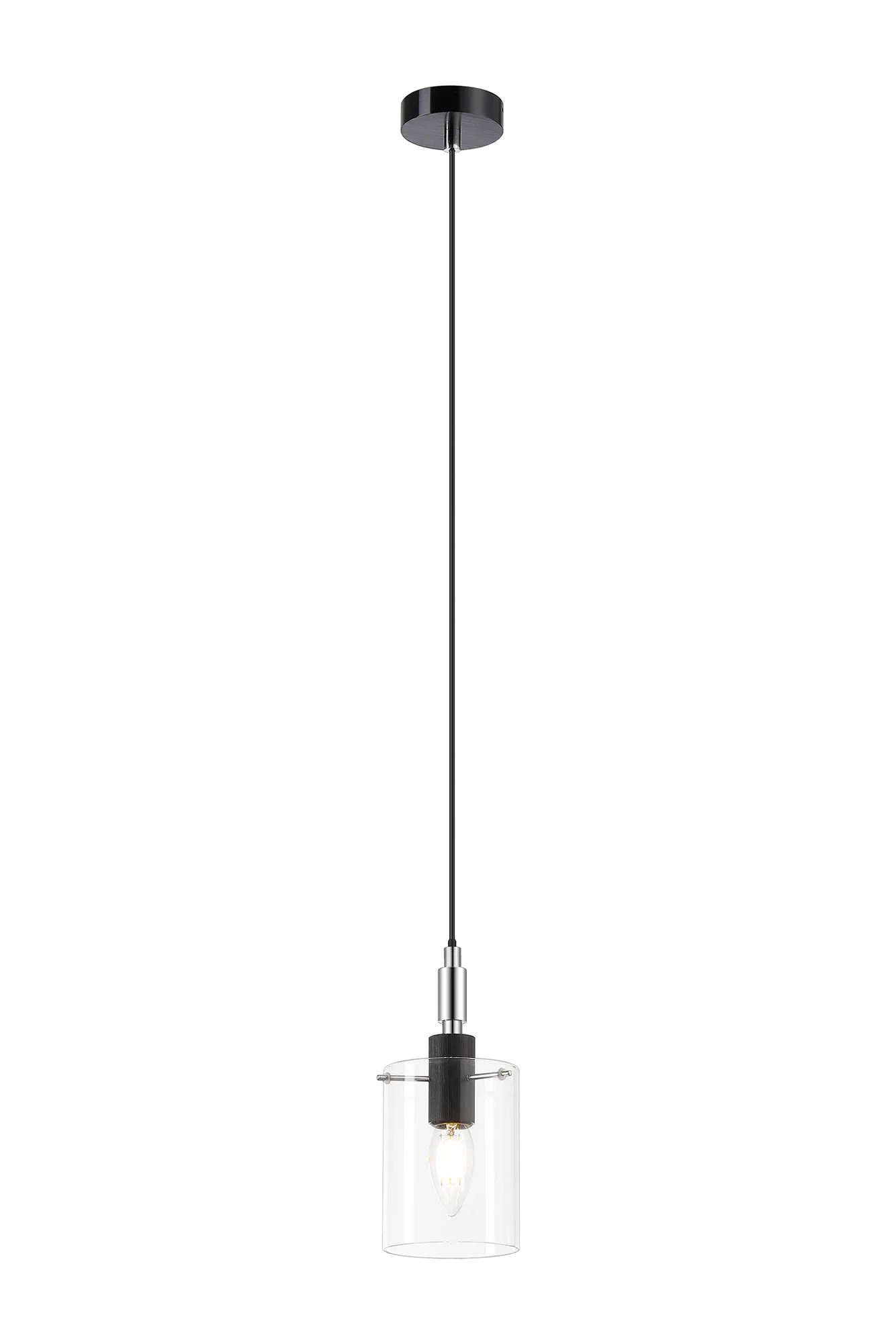 Cornwall 1.5m Single Pendant 1 Light IP44 Cylinder Glass Black/Polished Chrome/Smoke