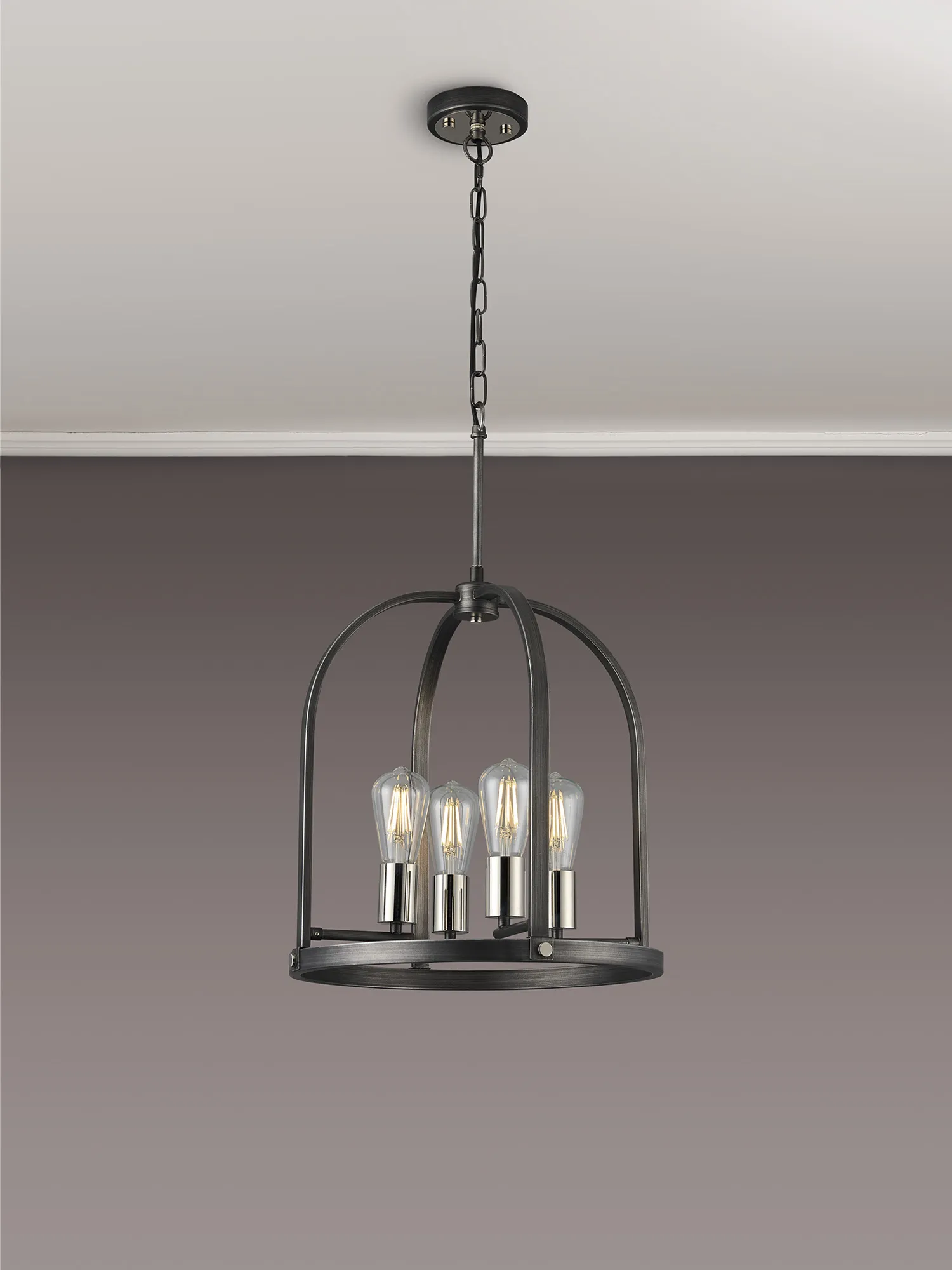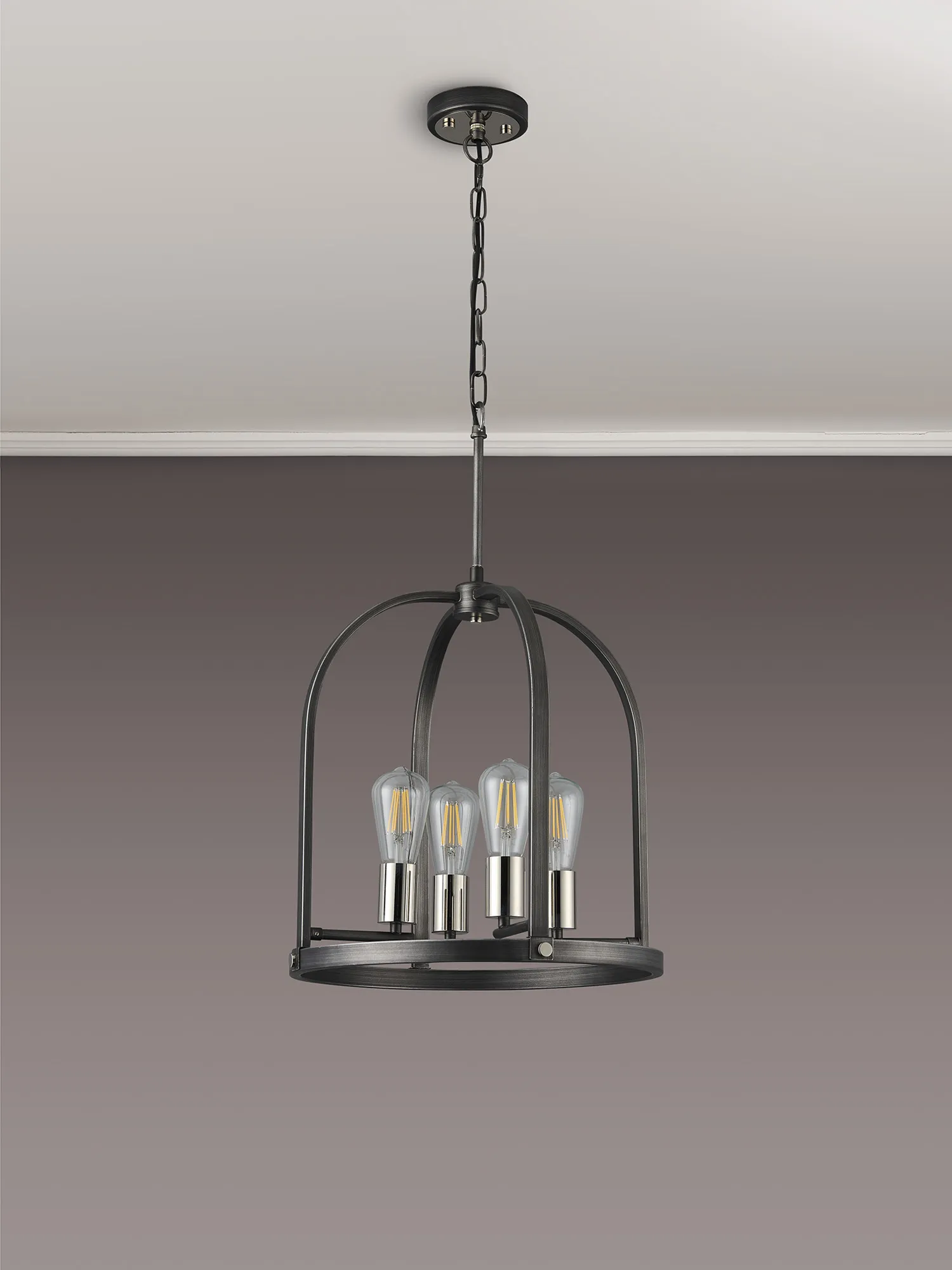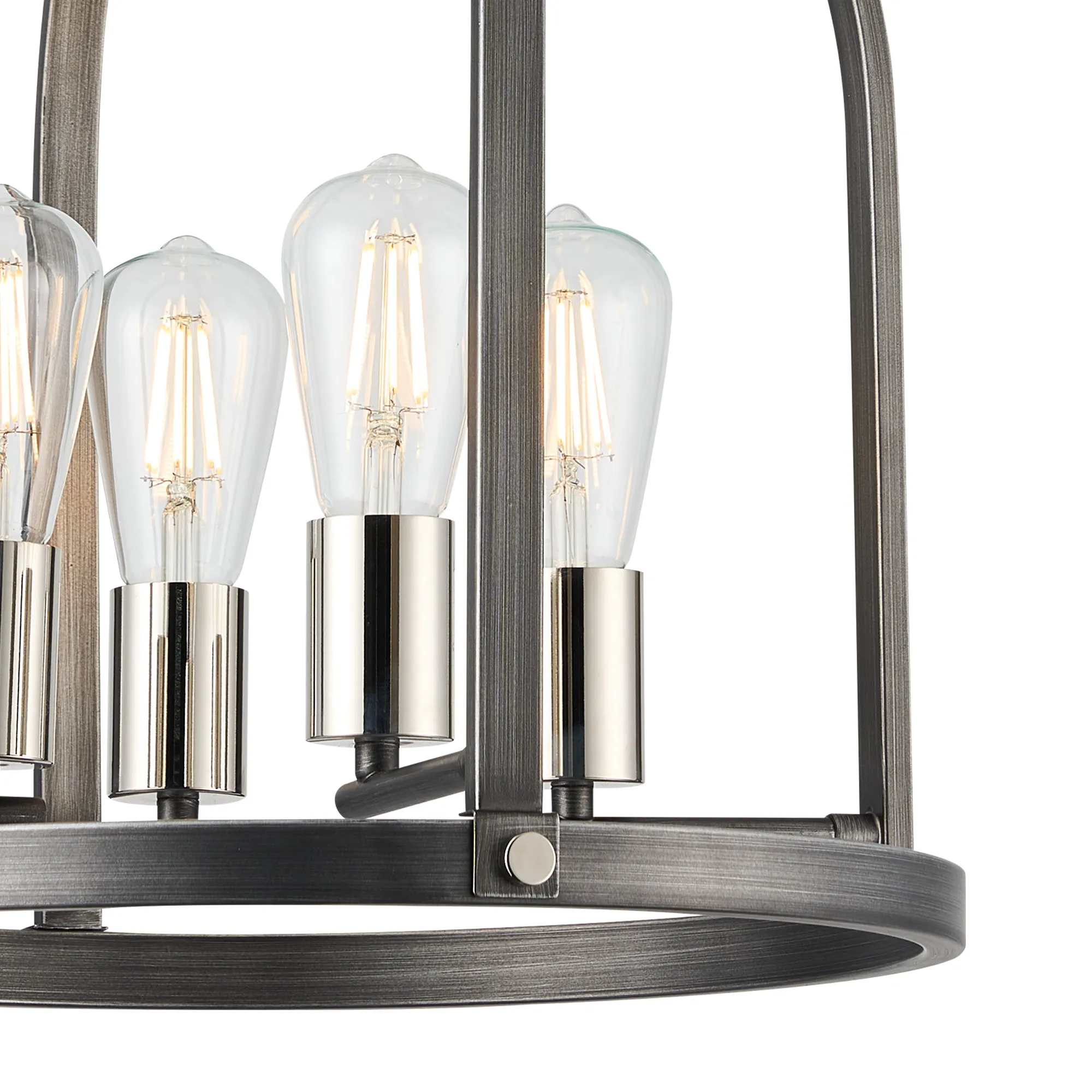 Kenora Pendant/Semi Flush Round 6 x E27, Pewter/Polished Nickel