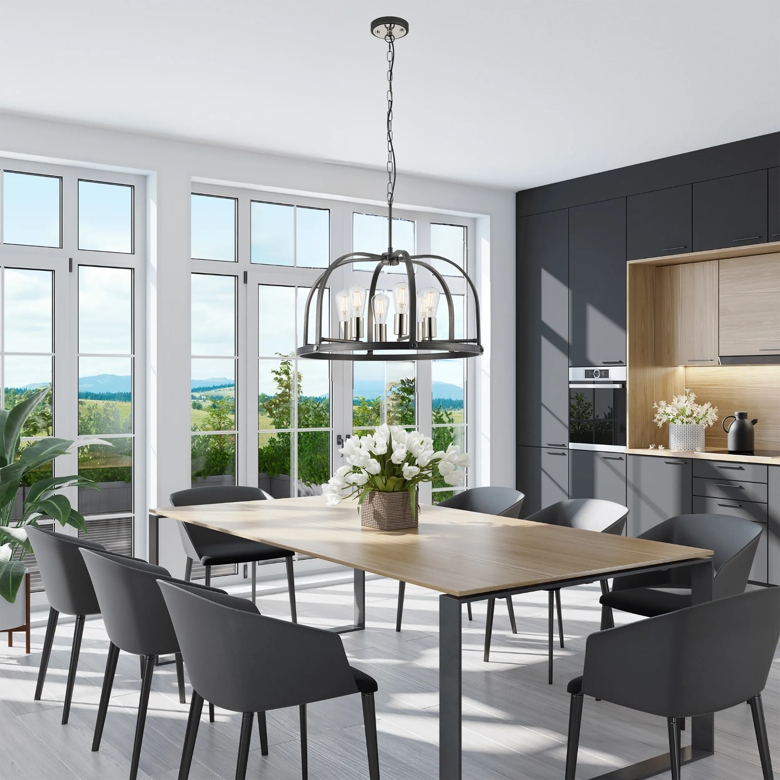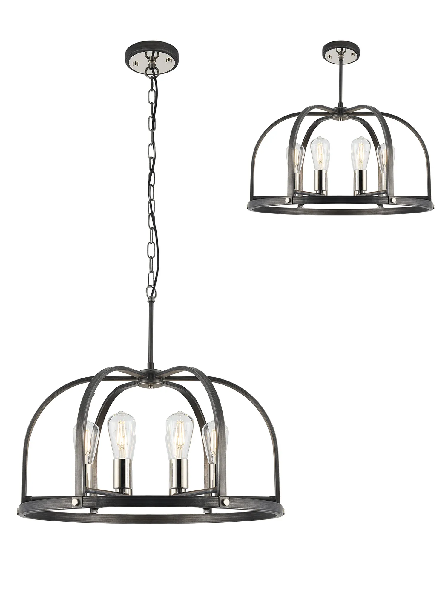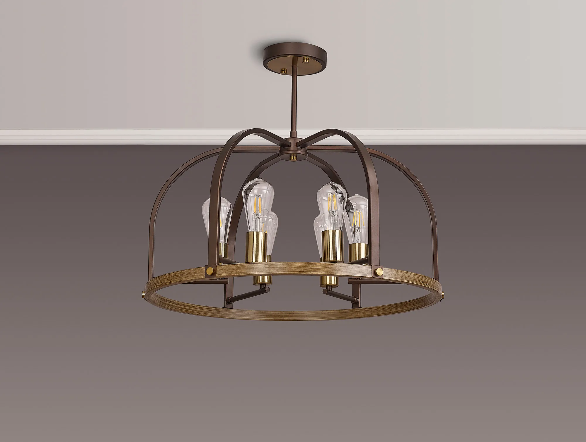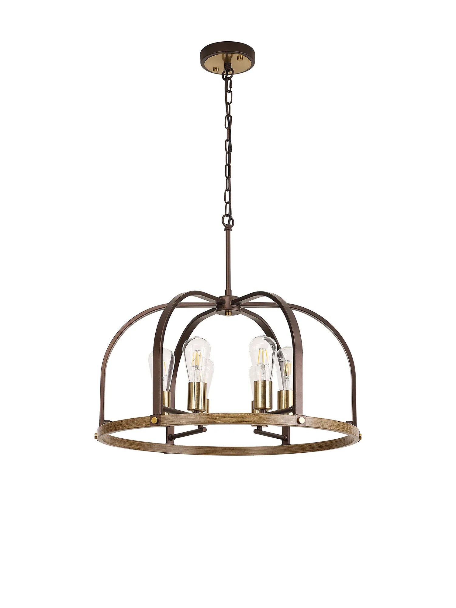 Kenora is an artistically attractive range created by combining multiple colours and material effects. A fully comprehensive collection, the dome outline of each light is formed from brown oxide and naturally grained wood, emulating a traditional source of light. The addition of the antique brass components add a touch of high-end elegance to the more natural tones of the framework which supports the E27 lamp holders. Kenora is now also available in a pewter finish with polished nickel.