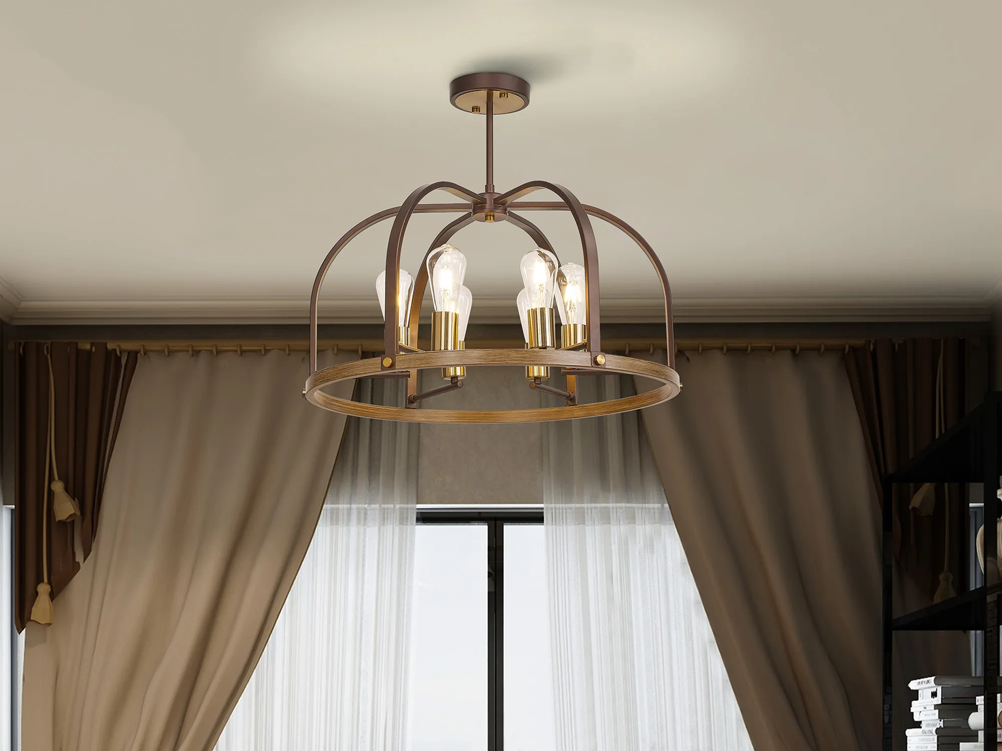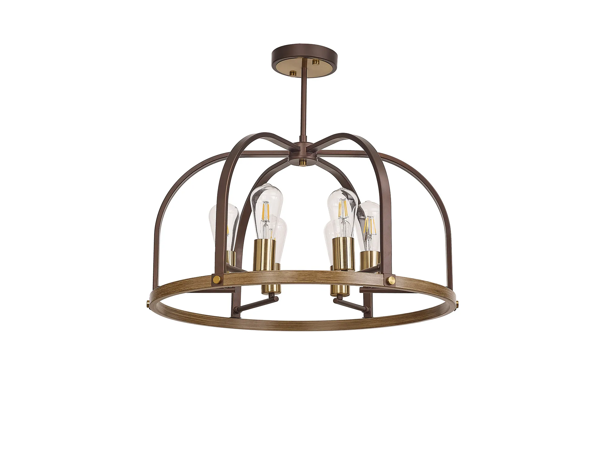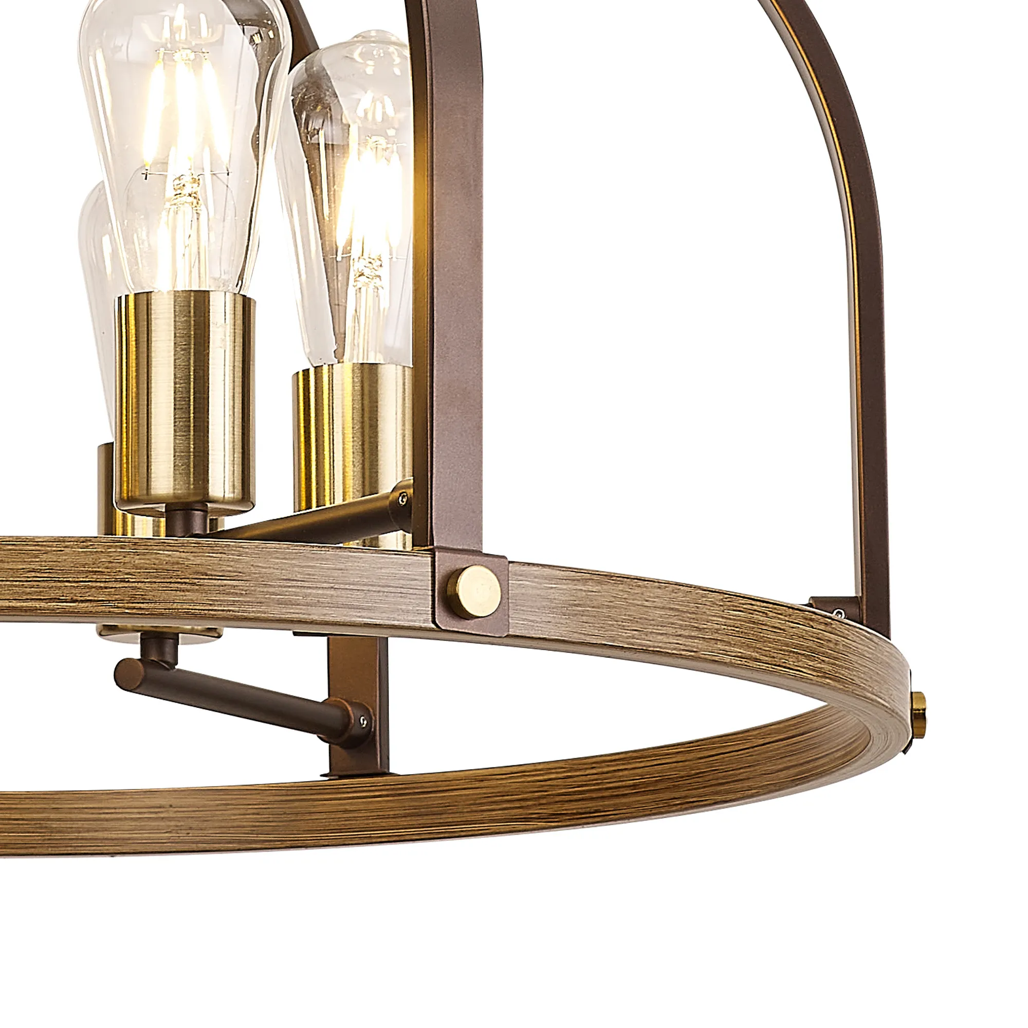 Kenora Flush Round 3 x E27, Antique Bronze/Brown Oxide/Wood