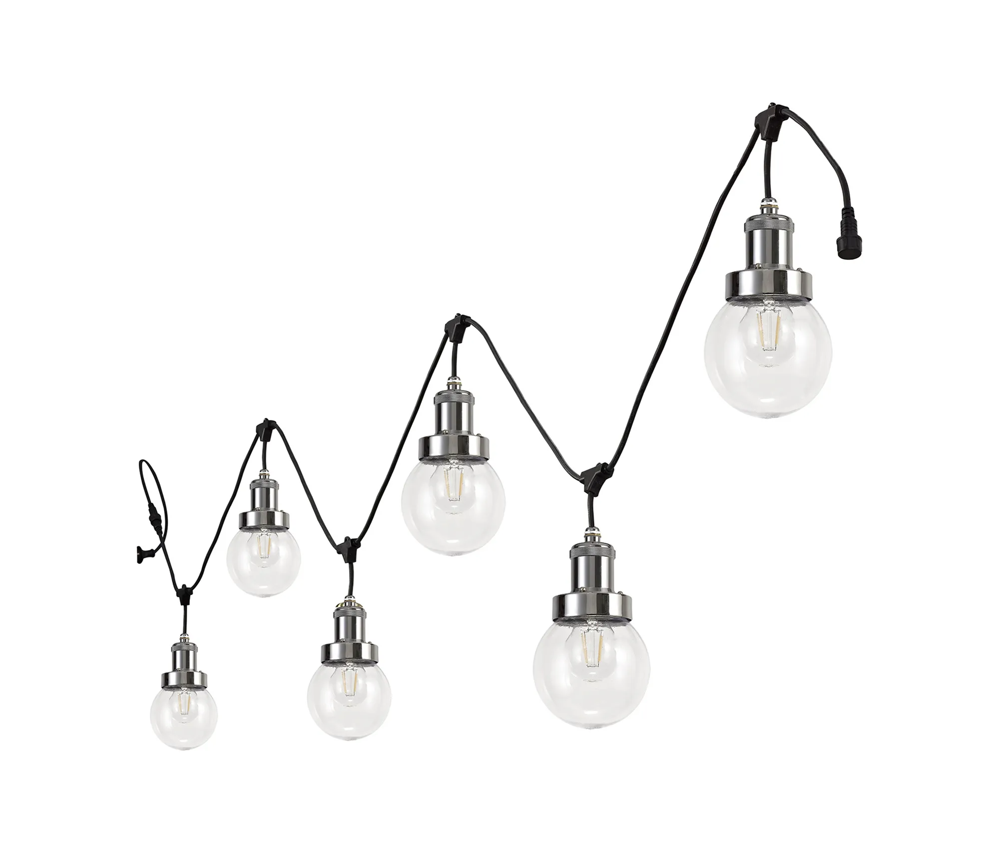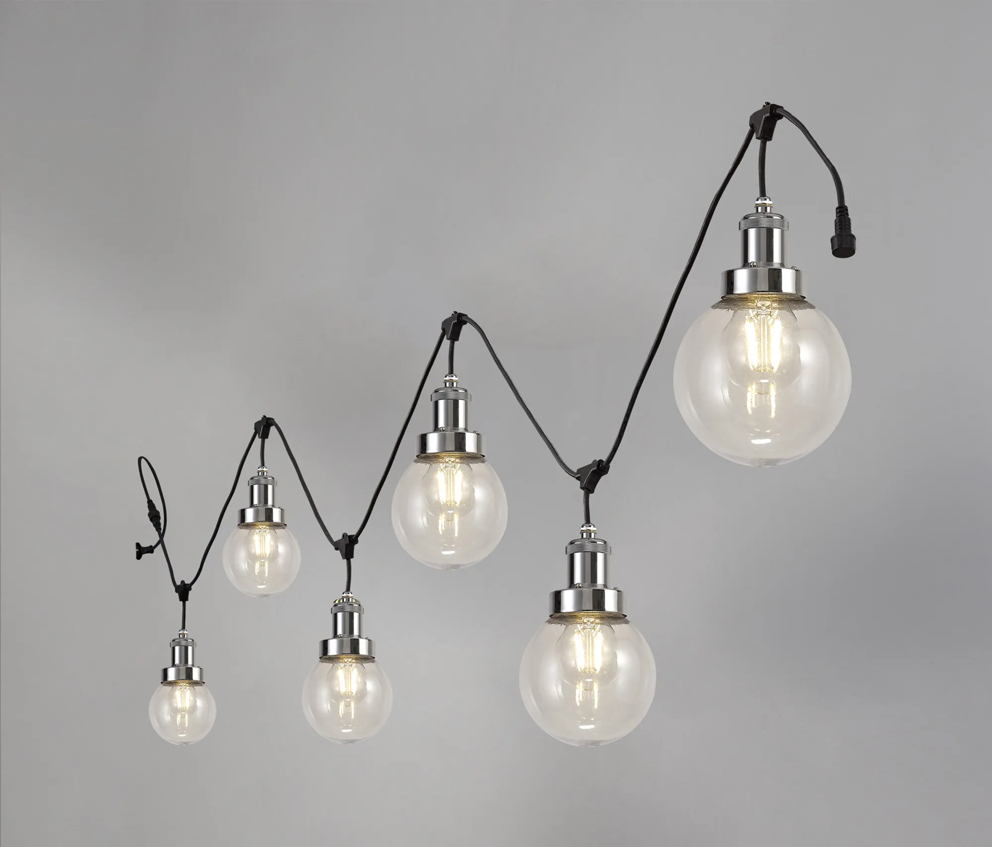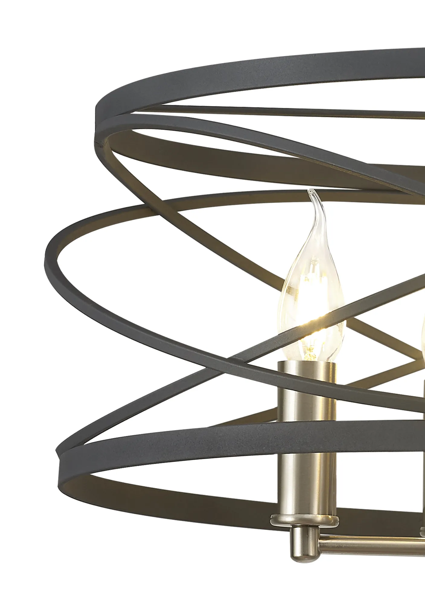 Pearson's intricately structured frame encircles the E14 lamp holders with over lapping angled rings. The chaotic positioning of this central feature is brought into order by the slightly wider, vertical rings positioned at the top and bottom of the frame producing an overall drum like shape. This range of pendant, table and floor lamps, emit a classical distinguished air suitable to complement or create a stylish room décor. The black and satin gold or graphite with satin nickel colour finishes are the final sophisticated touch to complete an elegant aesthetic.