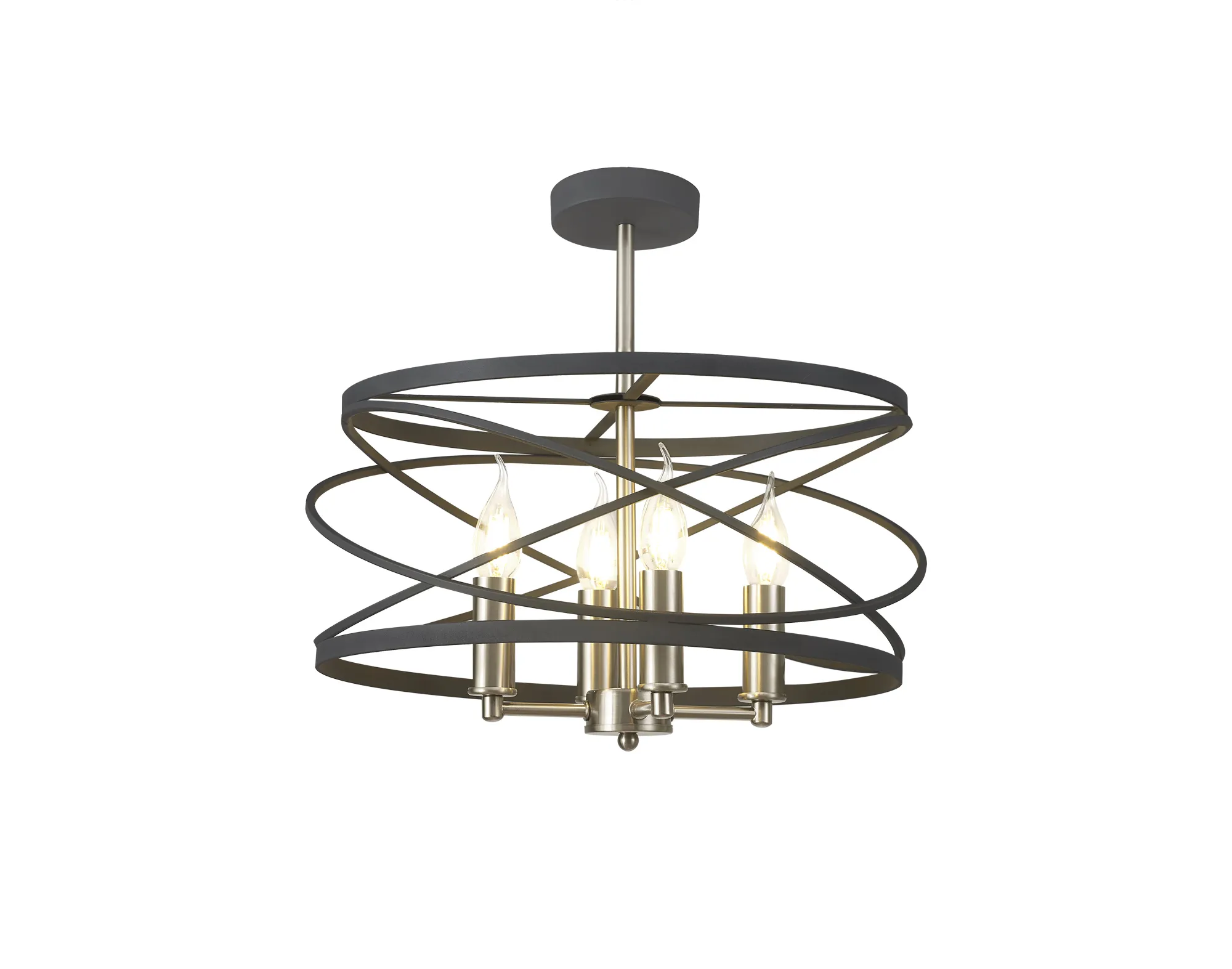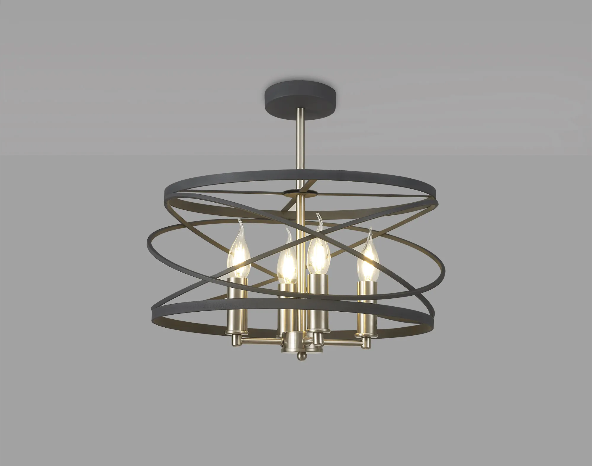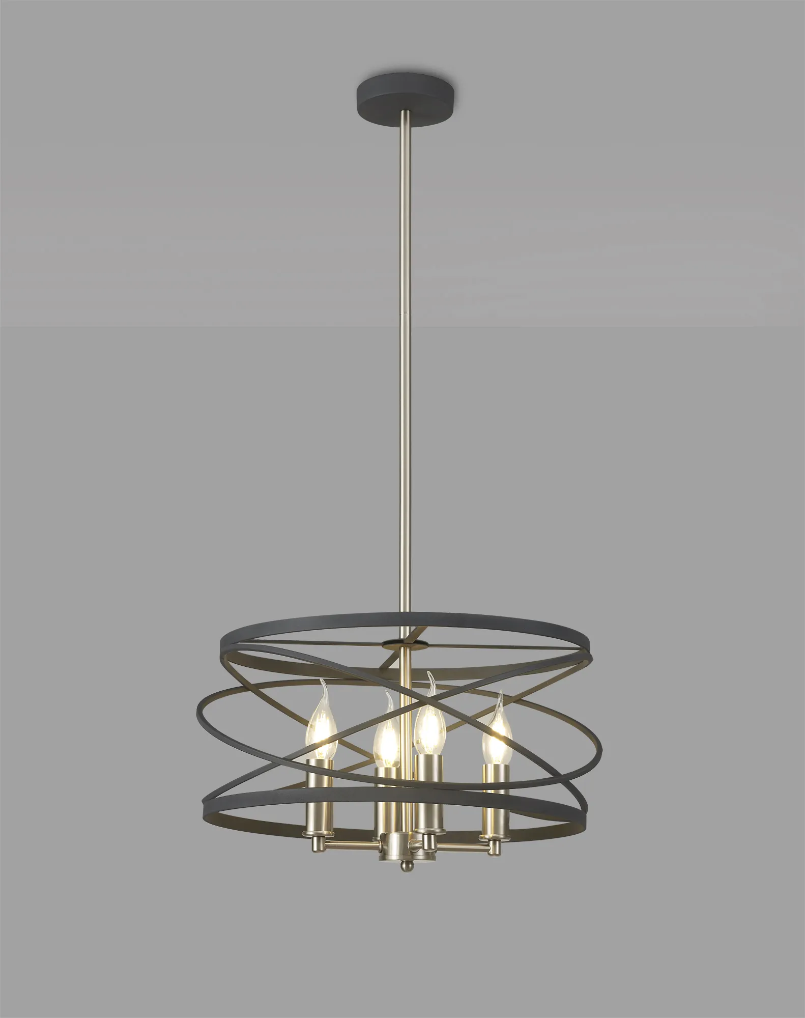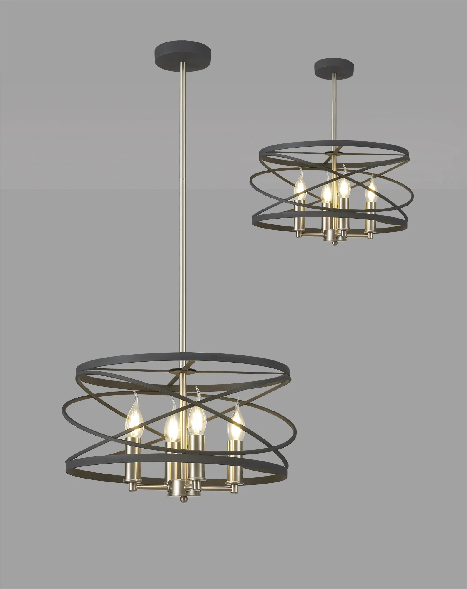 Pearson Pendant/Semi Flush, 4 x E14, Black/Satin Gold