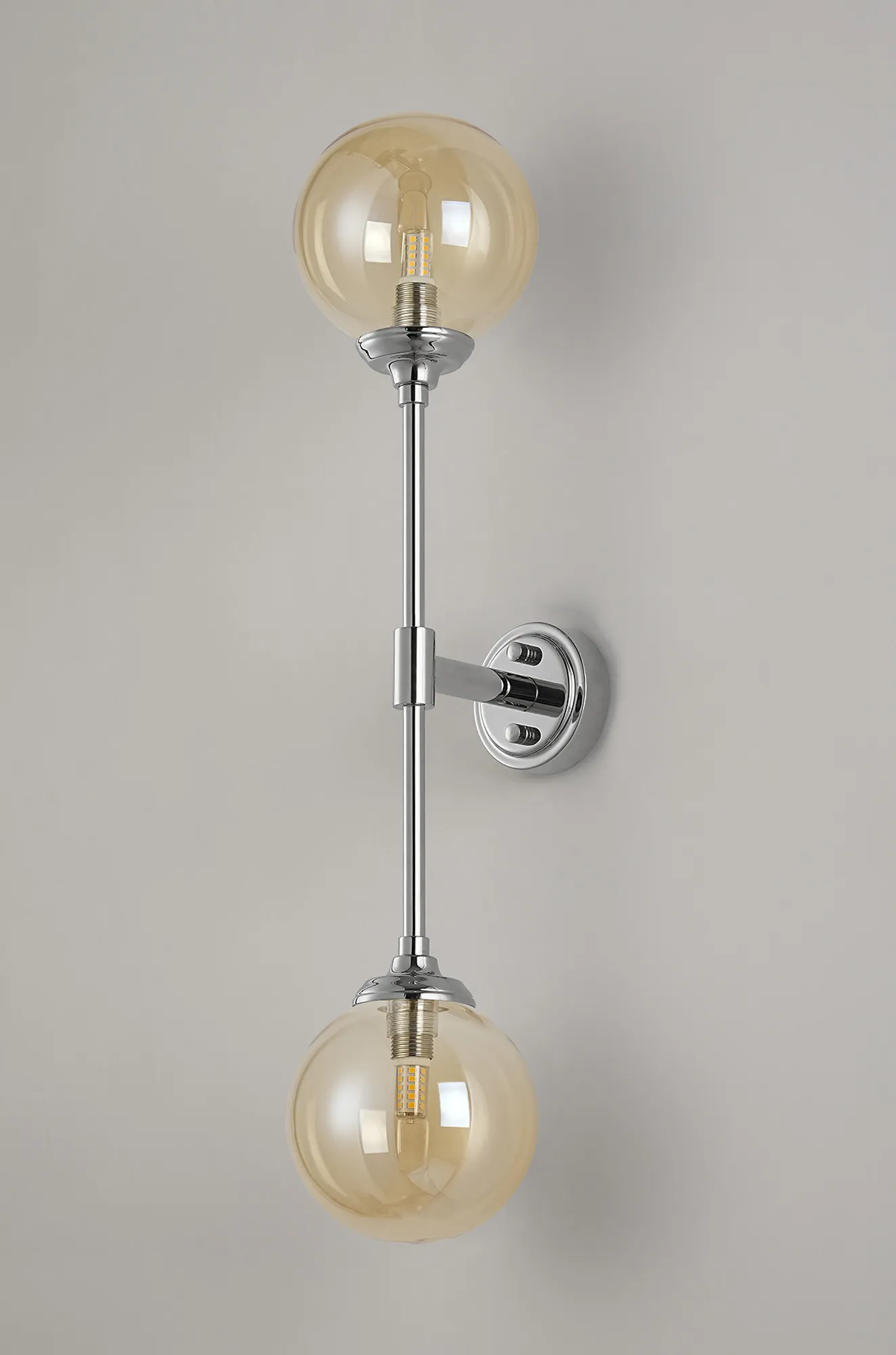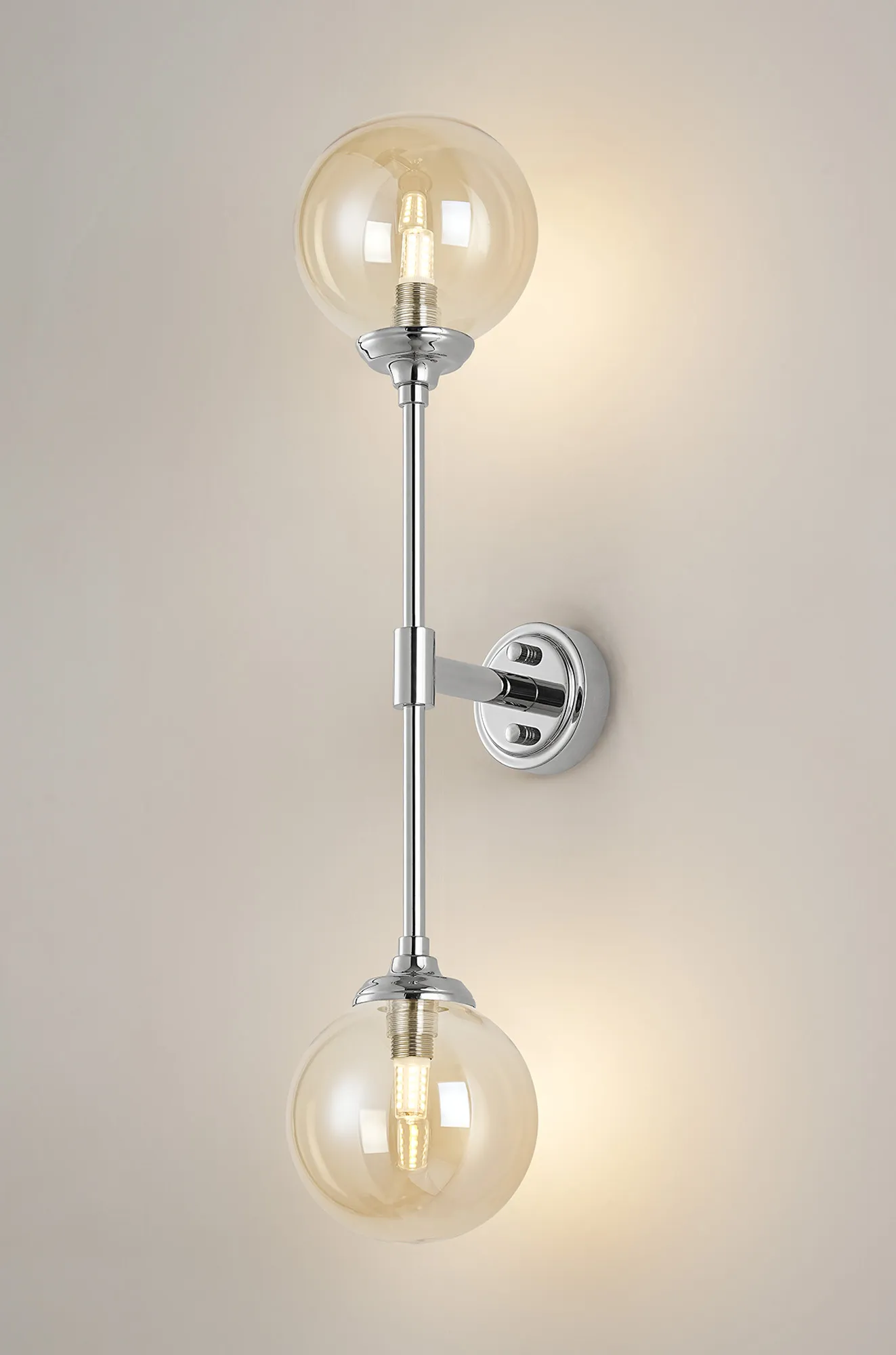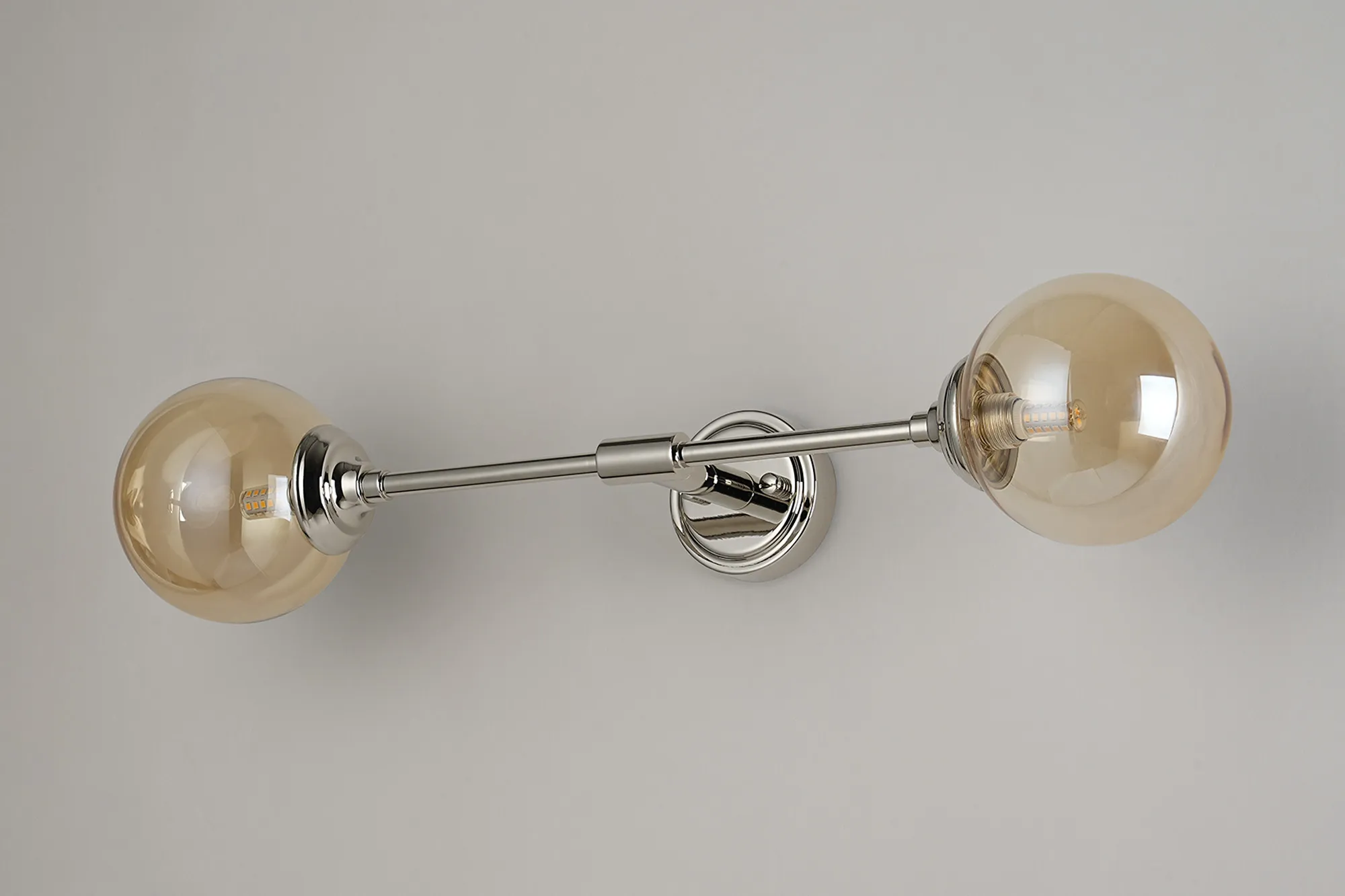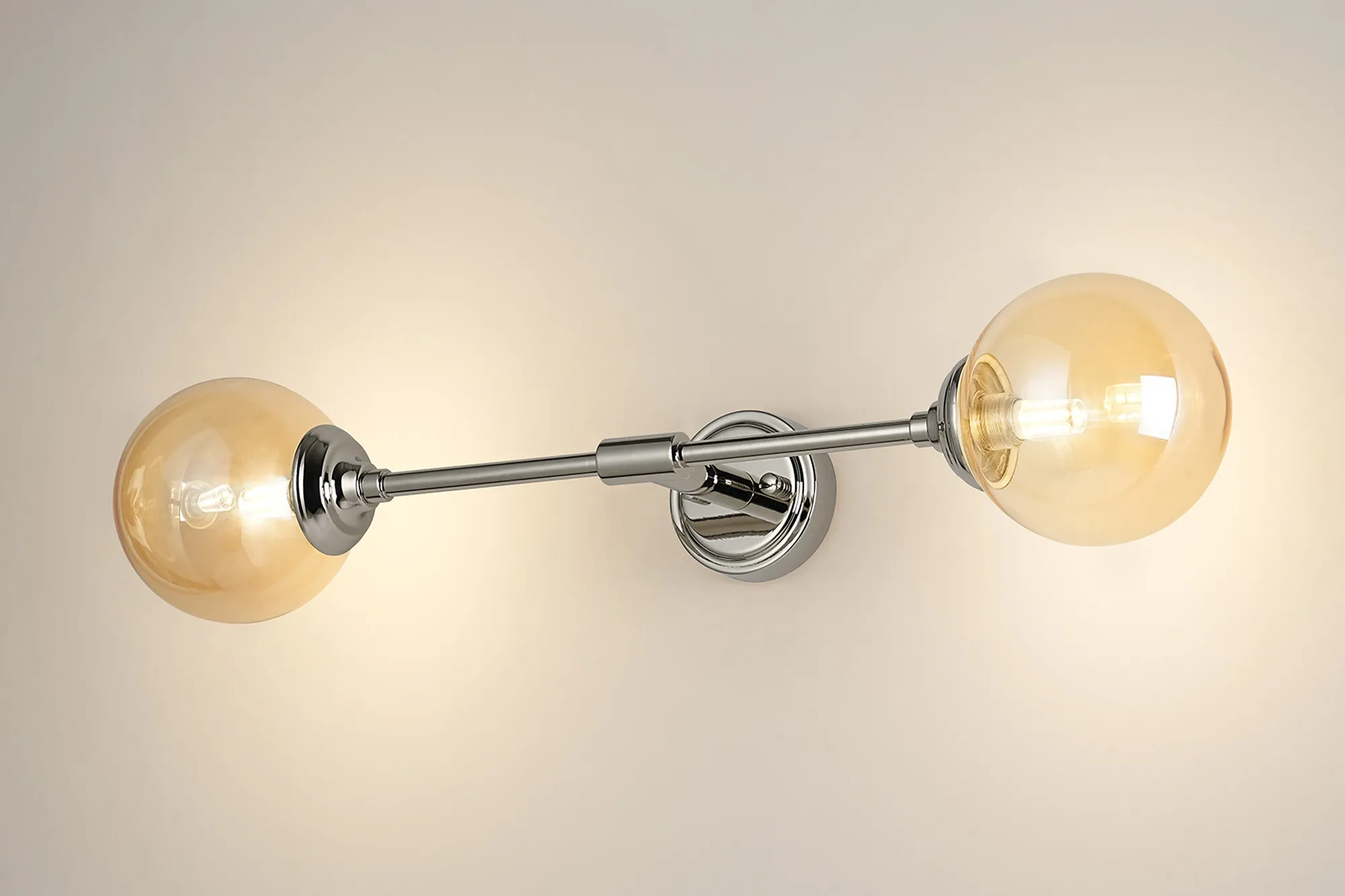 OTHER Orillia Ceiling/Wall Light Linear 2 Light IP44 Polished Nickel/Amber Smooth Round Glass