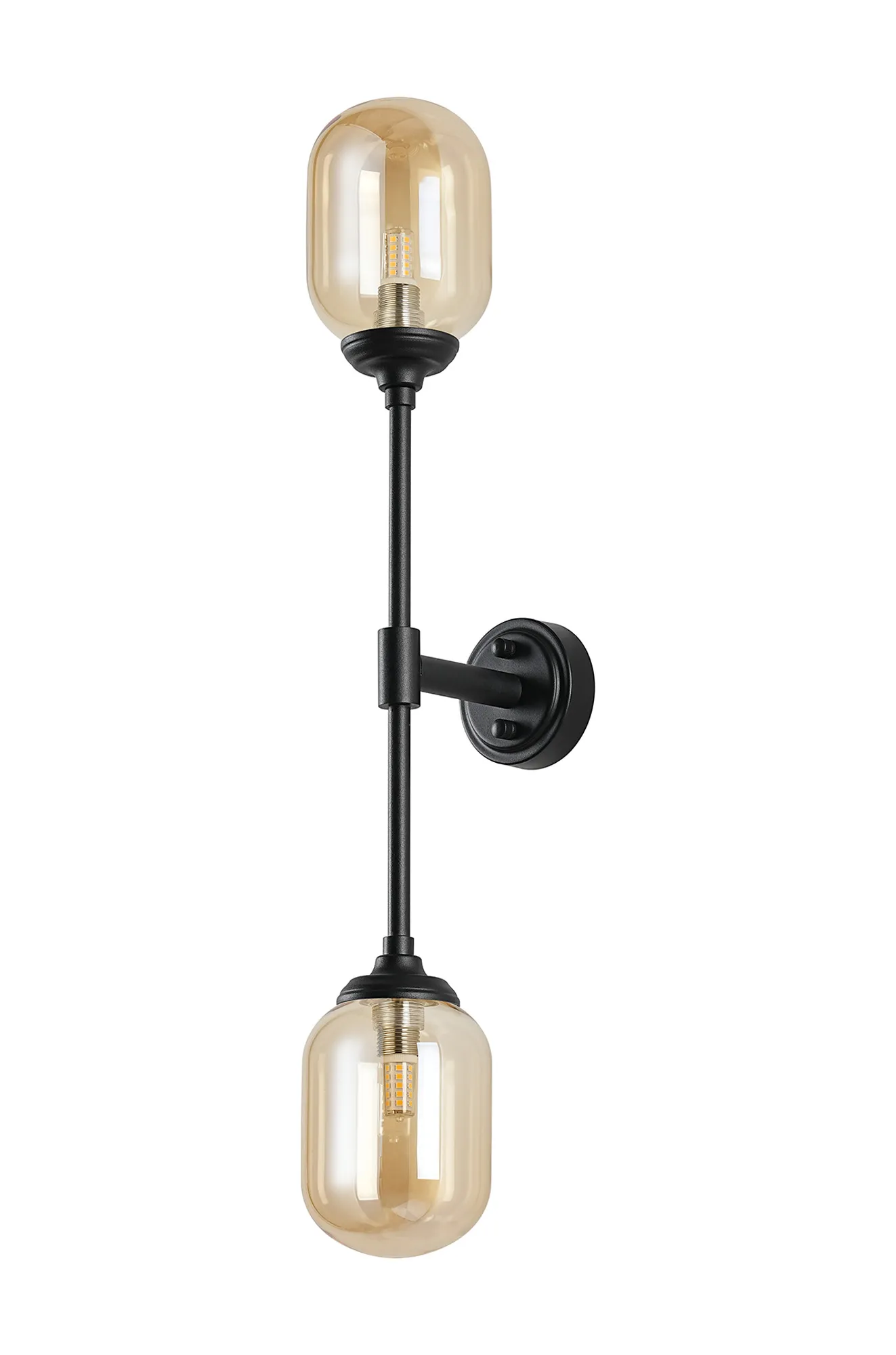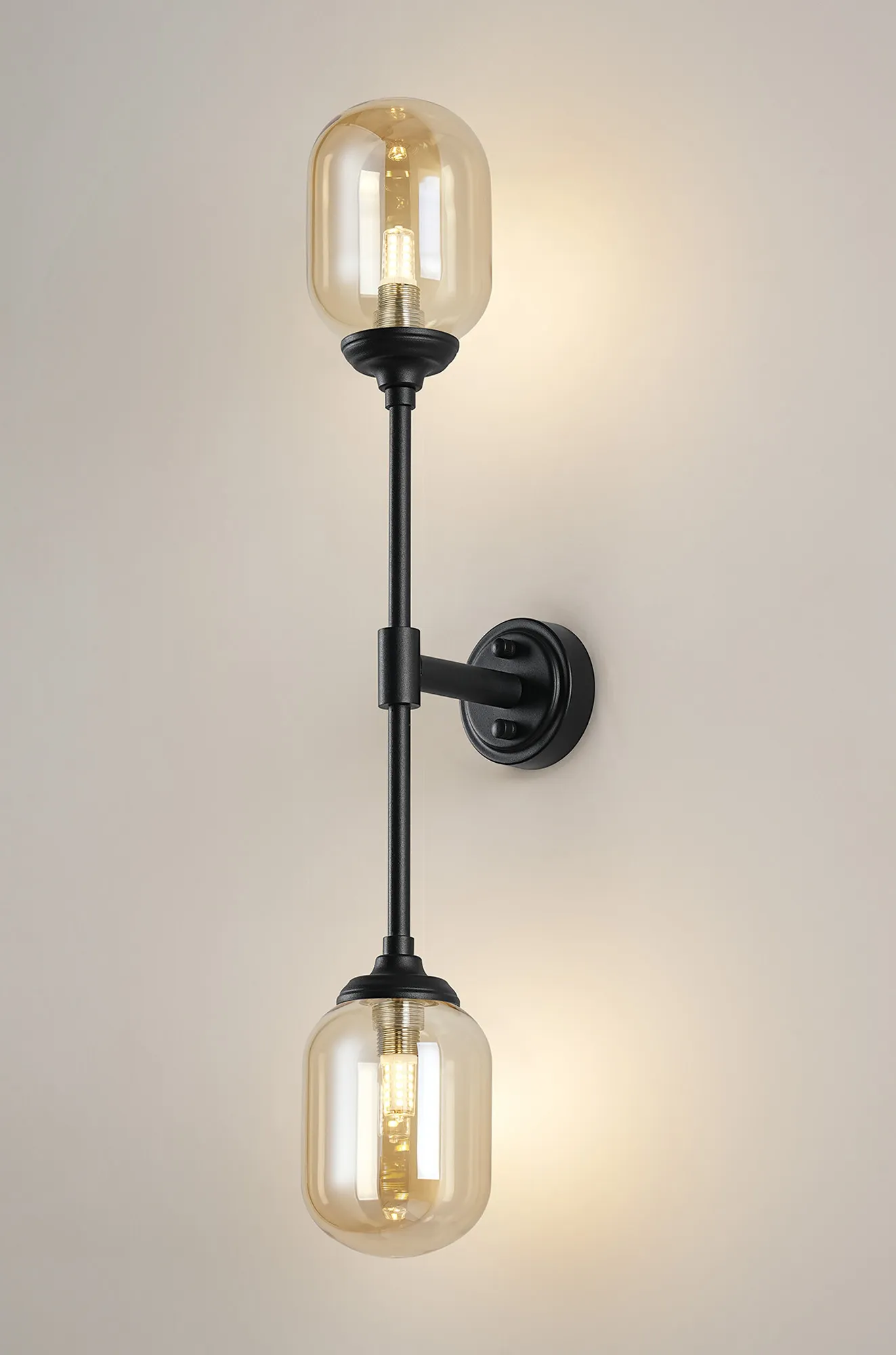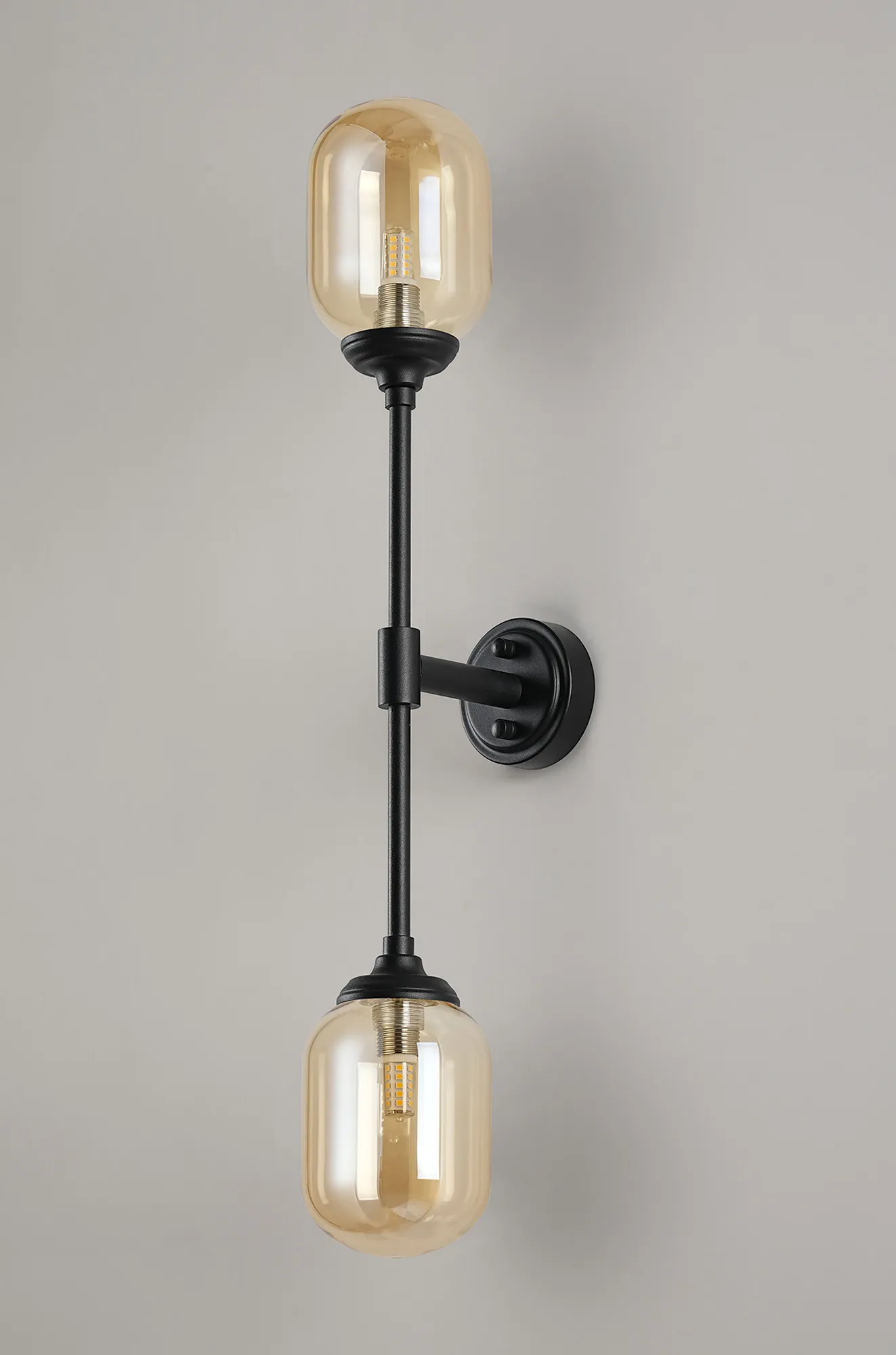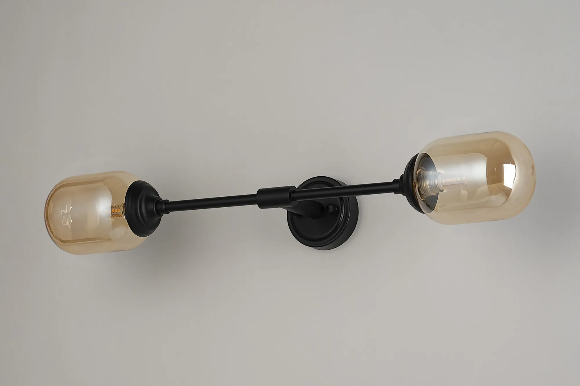OTHER Orillia Ceiling/Wall Light Linear 2 Light IP44 Satin Black/Amber Smooth Tubular Glass