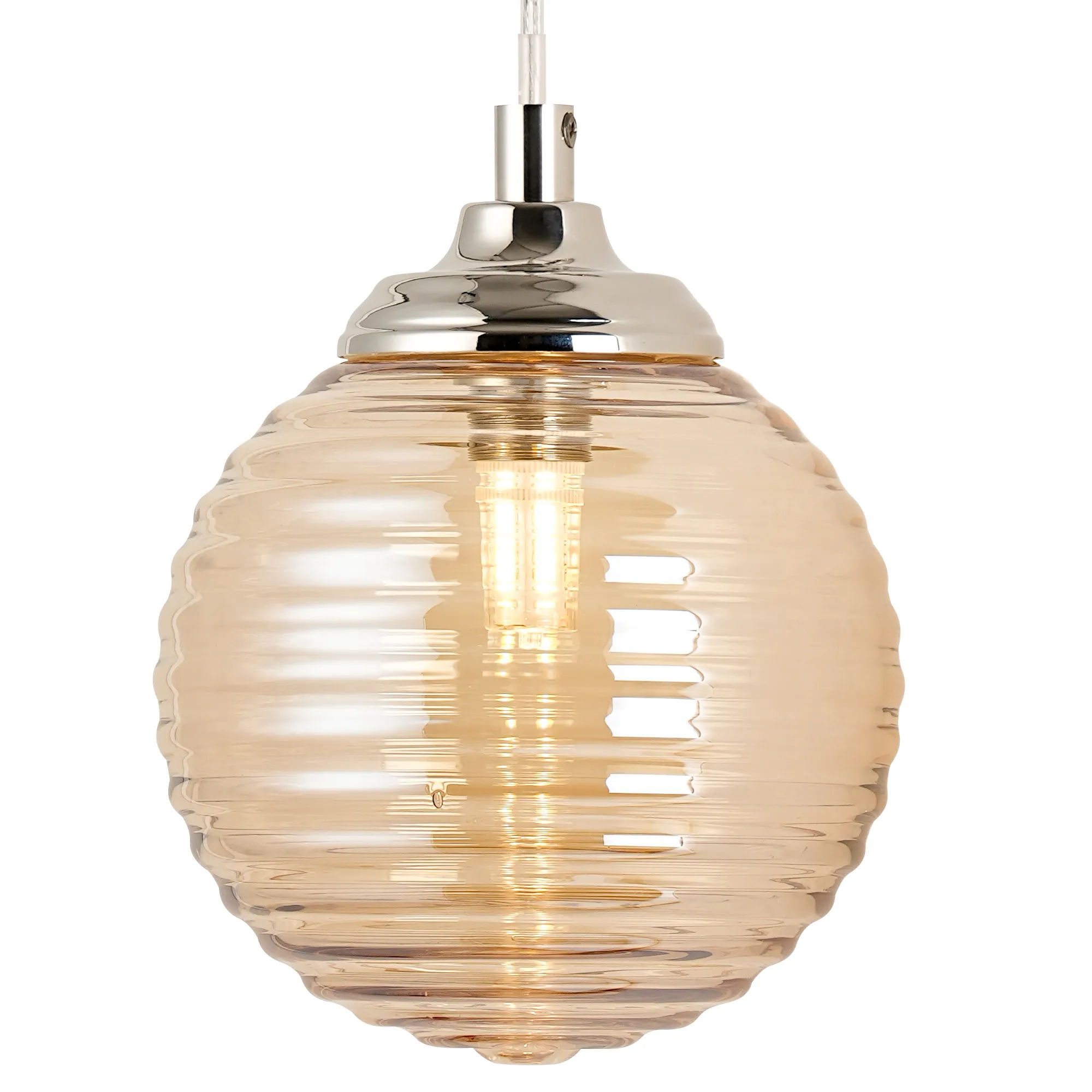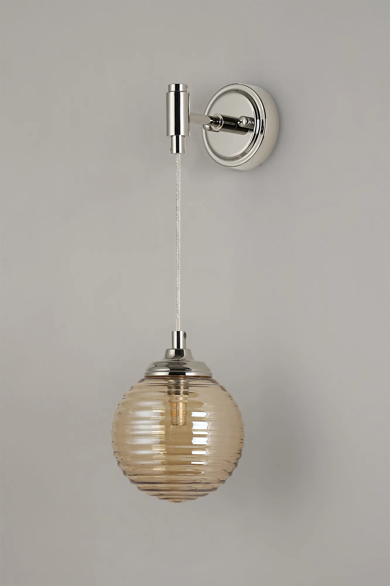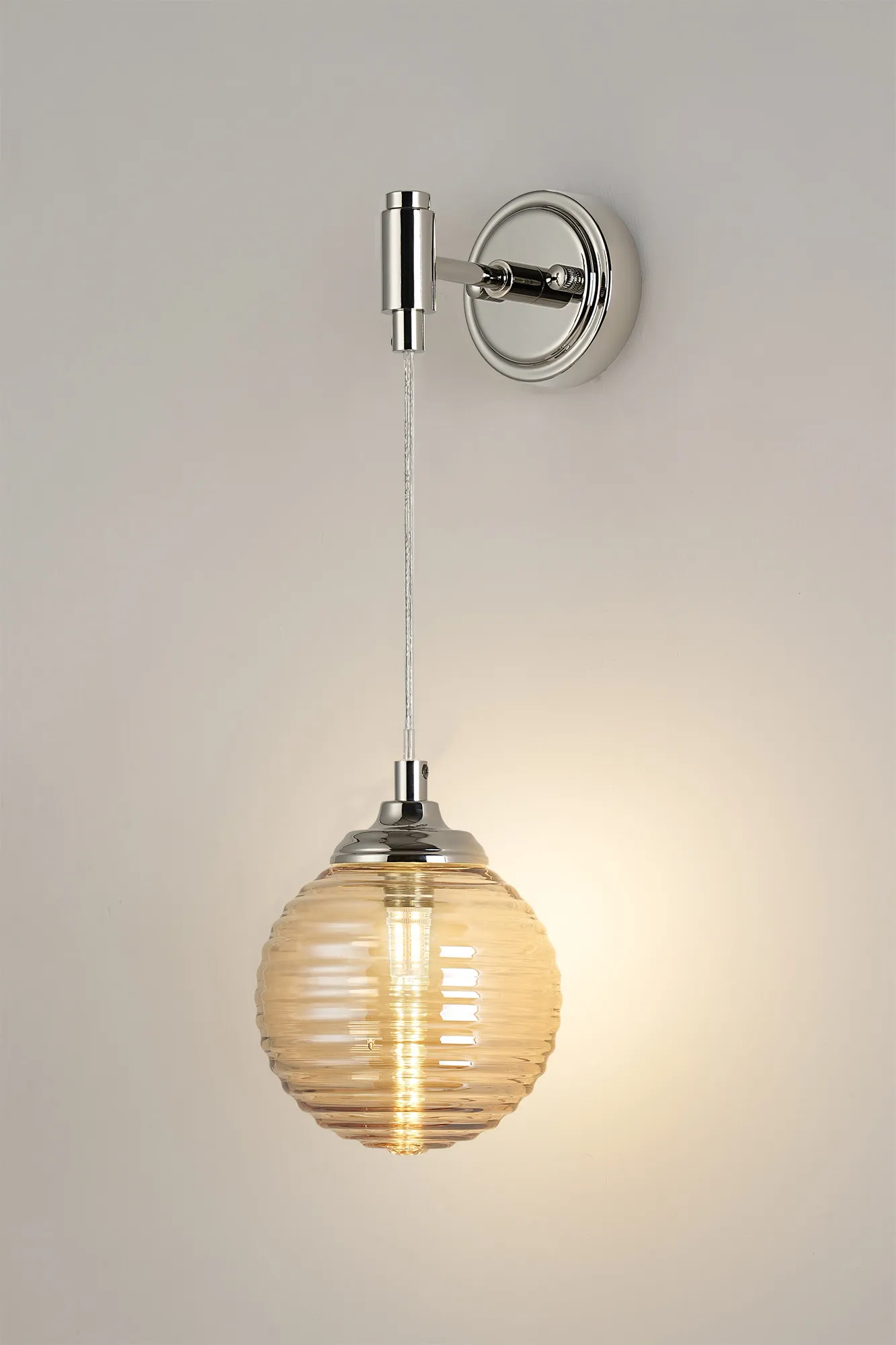 OTHER Orillia Adjustable Wall Light 1 Light IP44 Polished Nickel/Amber Ribbed Round Glass