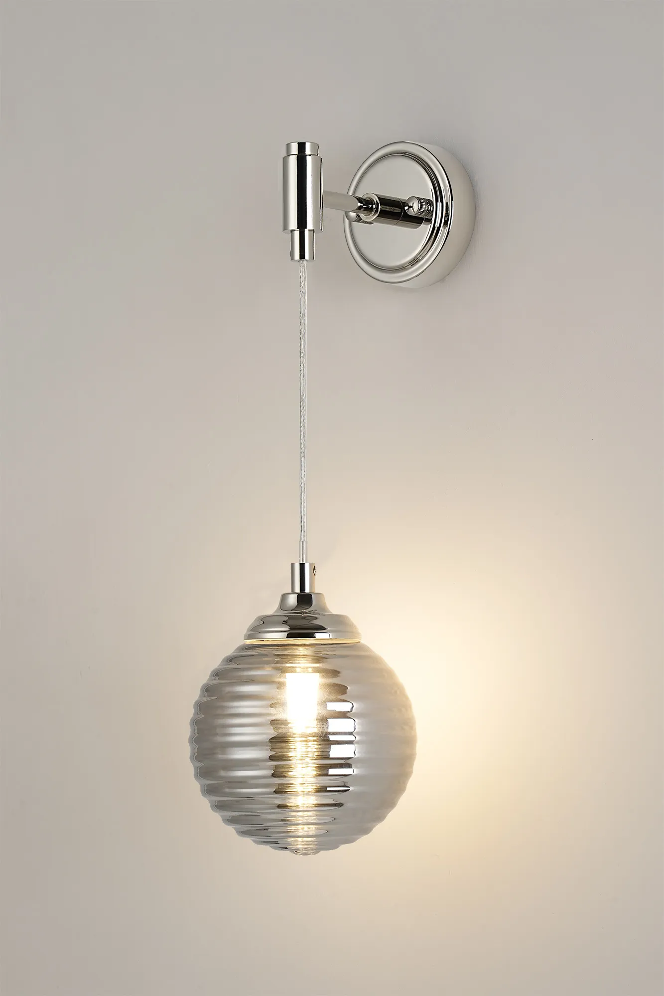 Nova 12cm Ribbed Round Glass Shade (B) Smoke