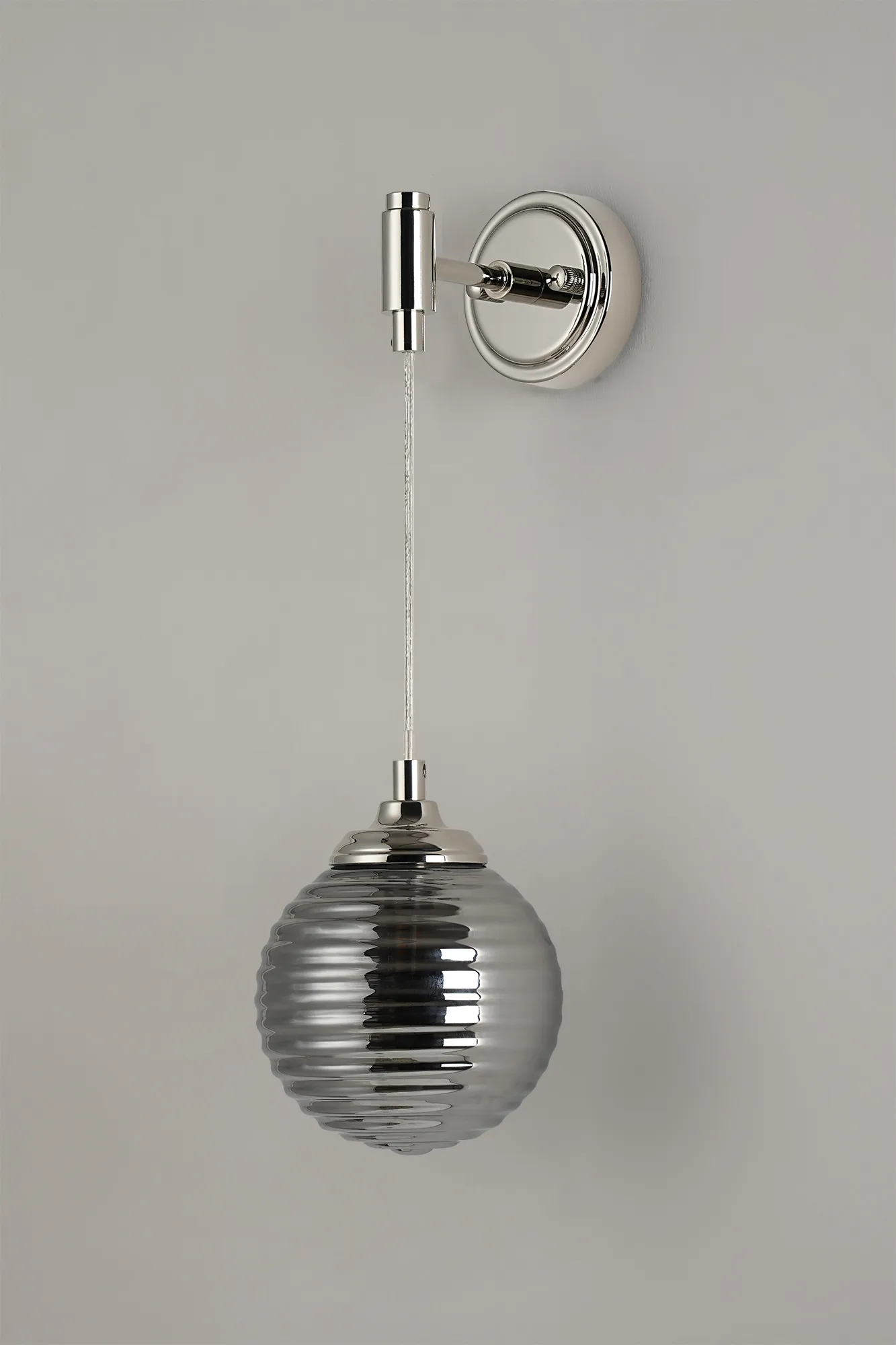 Nova 12cm Ribbed Round Glass Shade (B), Smoke